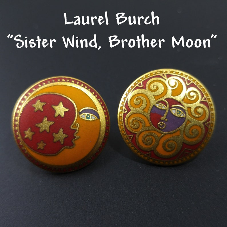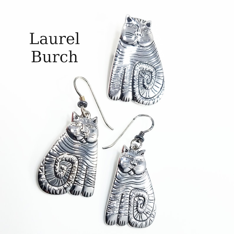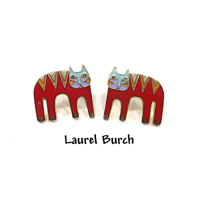 In her 20s, as a single mom, Laurel Burch began making metal from junkyards into jewelry. She loved many types of designs including cats, mythical animals, colorful flowers, moons, hearts, and people, just to name a few. Laurel Burch designed paintings and had the designs made into earrings.