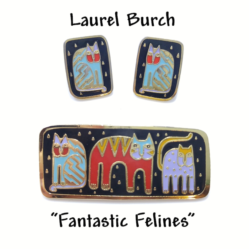 We love Laurel Burch vintage jewelry and have collected it for many years. Laurel Burch used beautiful bright colors and loved animals and art. Below, are a few highlights of the life of designer: Laurel Burch.