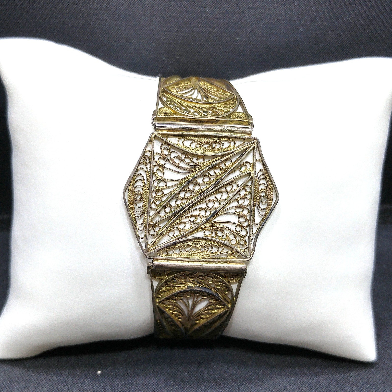 1920s Art Deco Cannetille Filigree Bracelet Gold Vermeil Silver 7 Inch