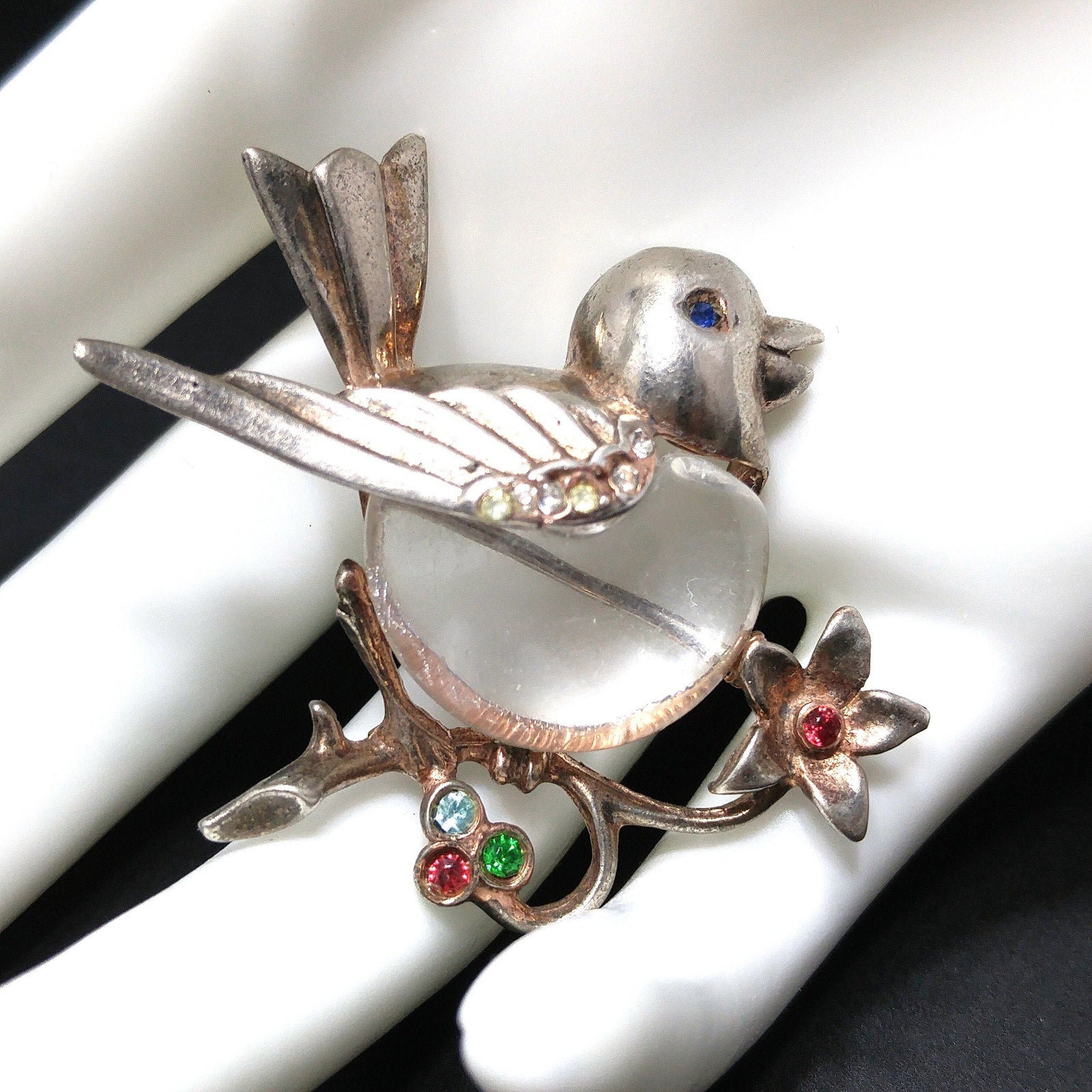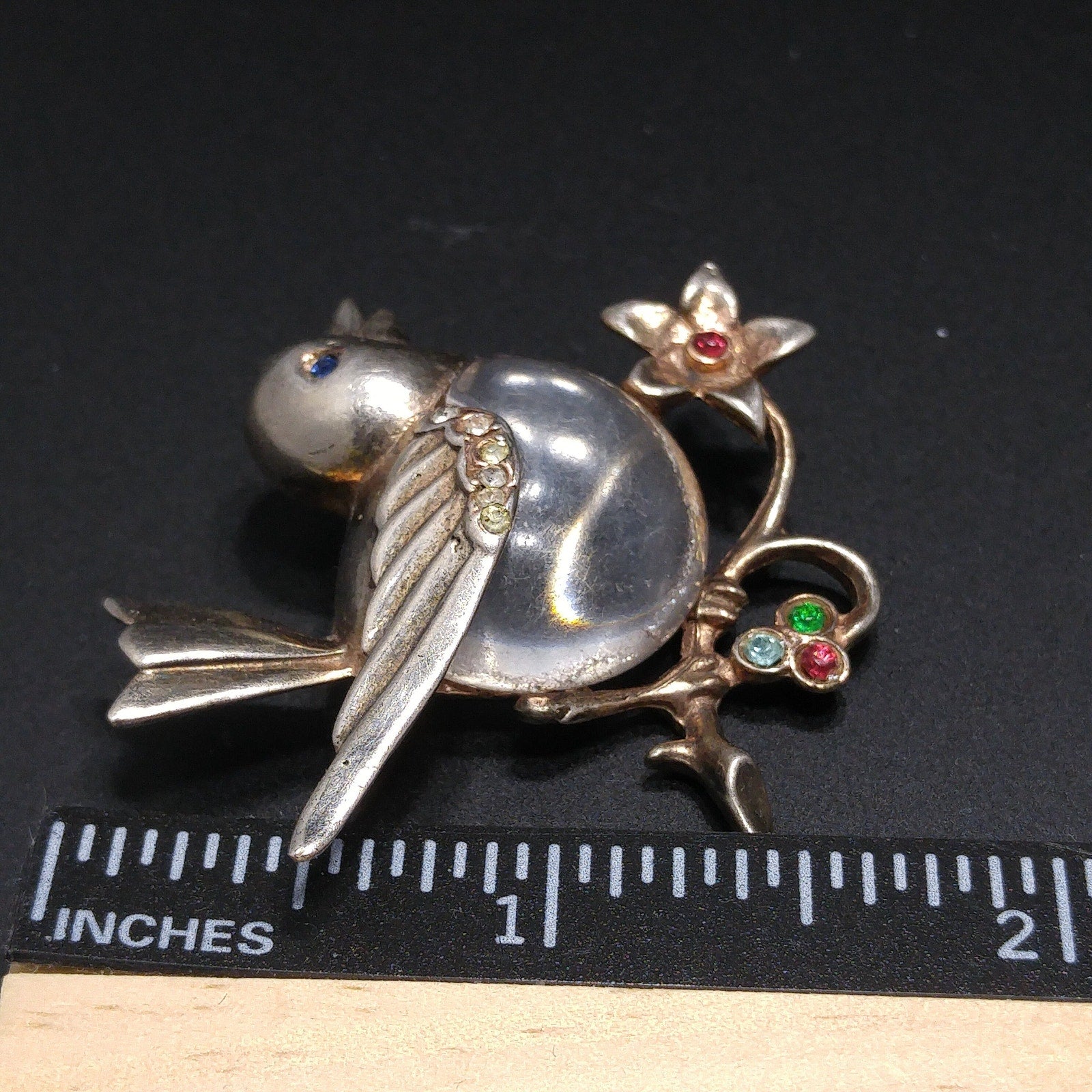 1940s Sterling Silver Jelly Belly Bird Brooch Lucite Belly WWII Era