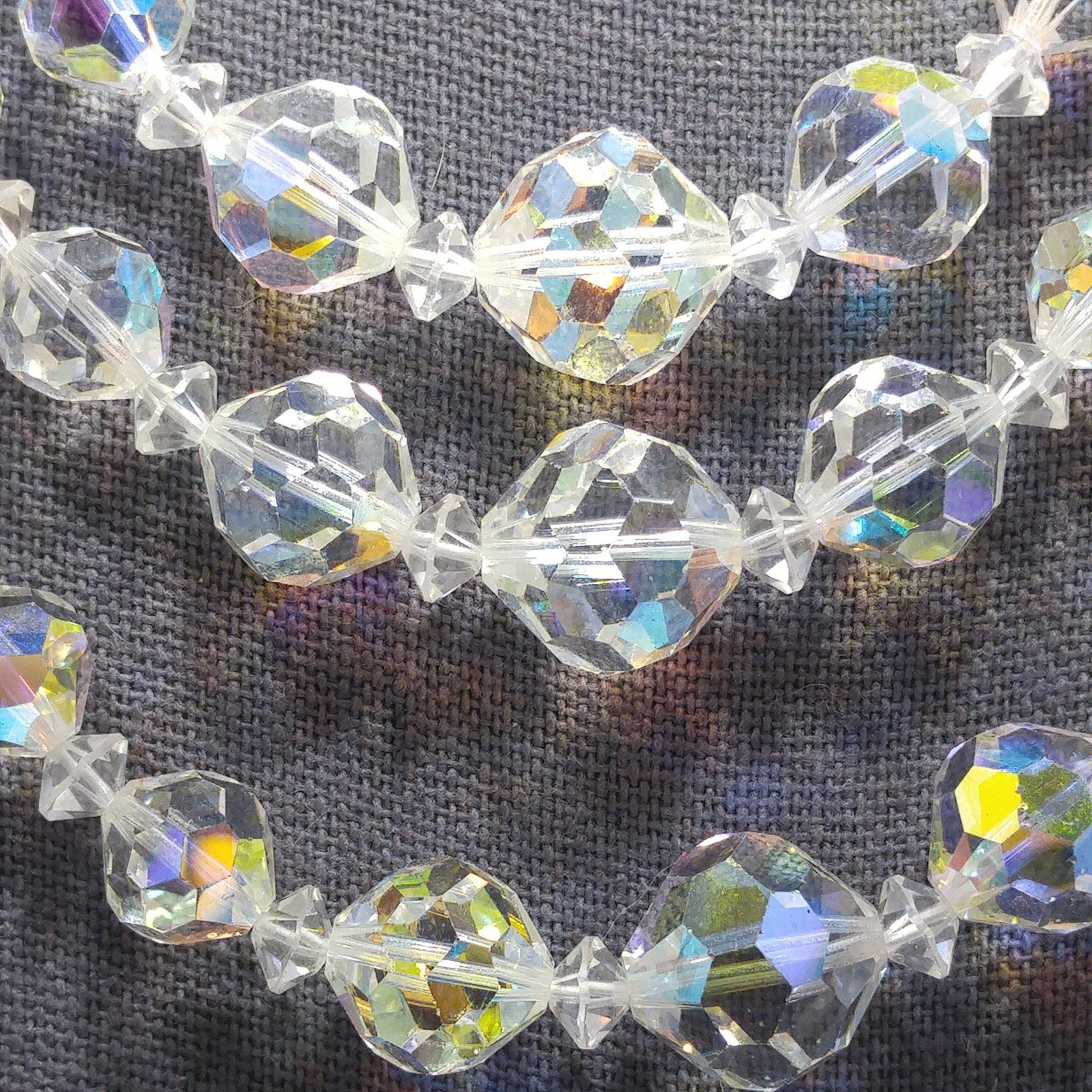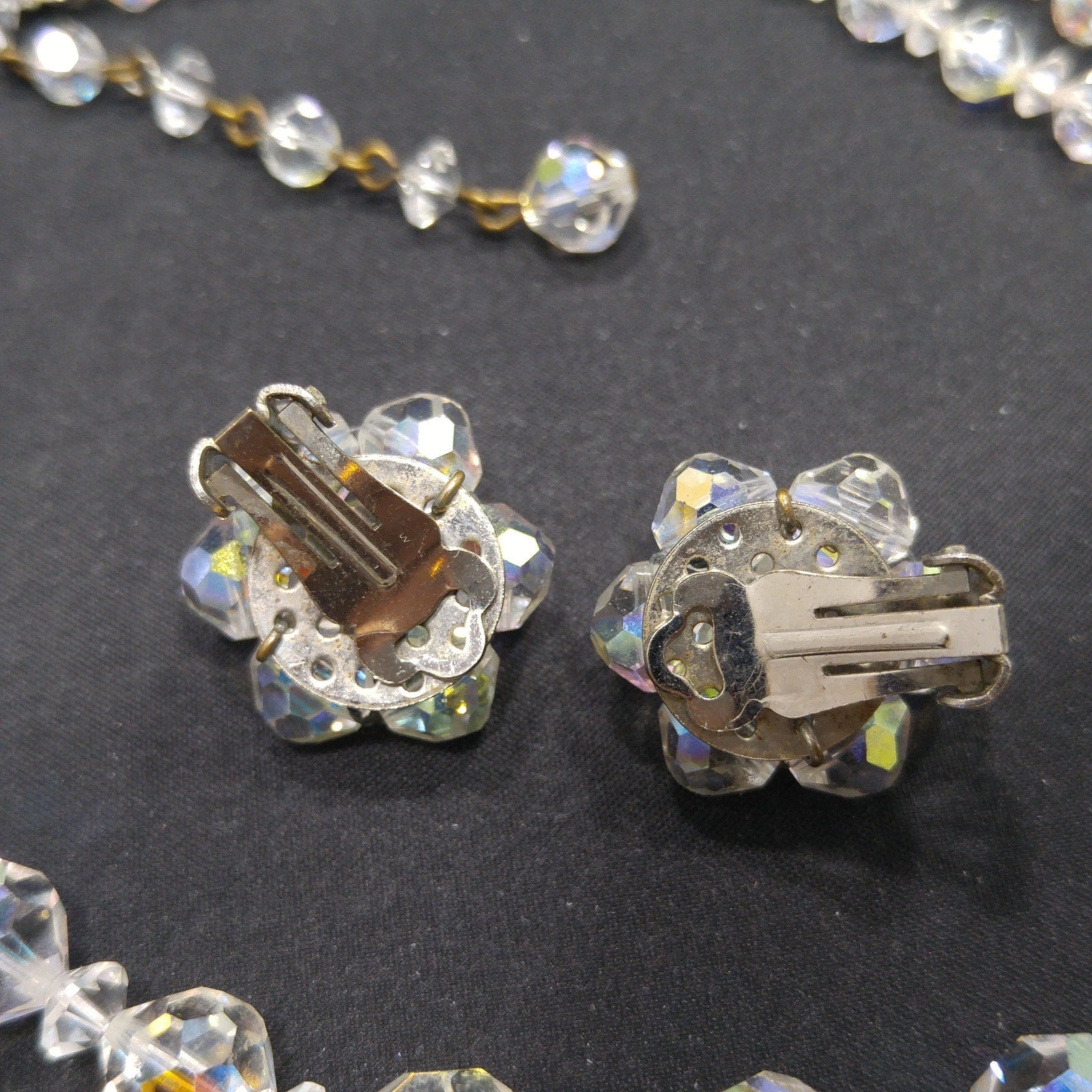 AB Crystal Beaded Necklace Earrings Set, Clear Aurora Borealis Beads, 1950s Vintage Jewelry