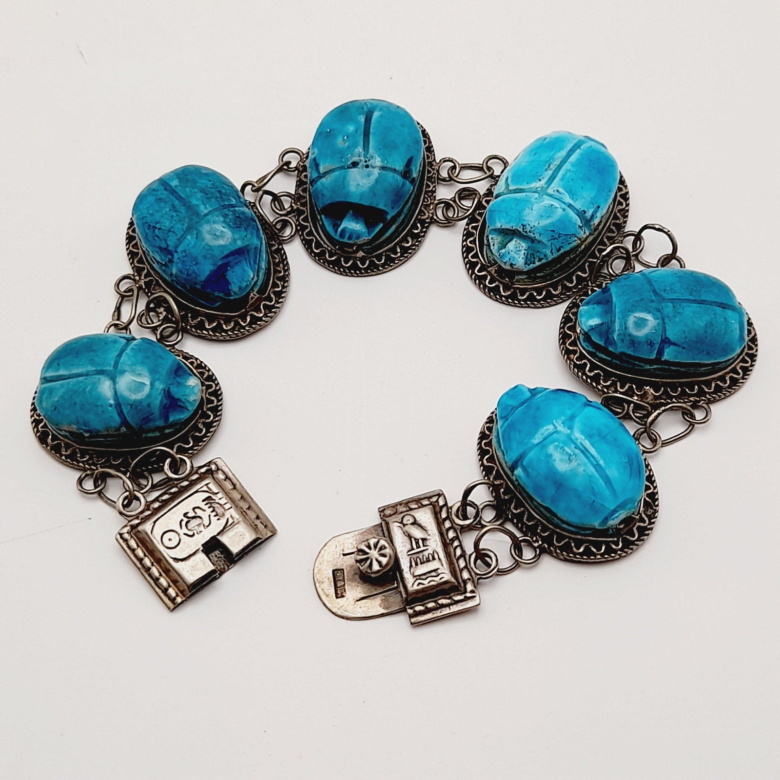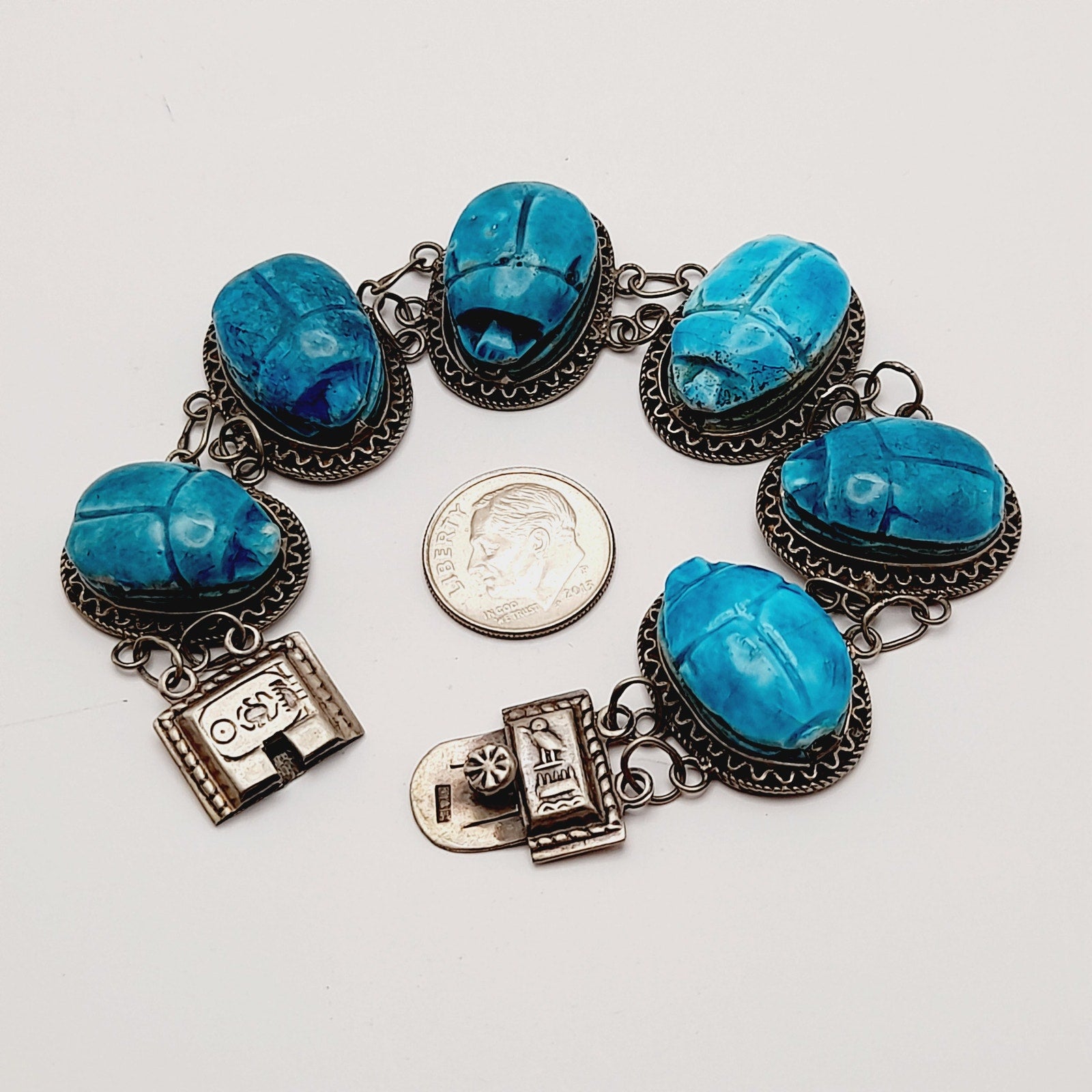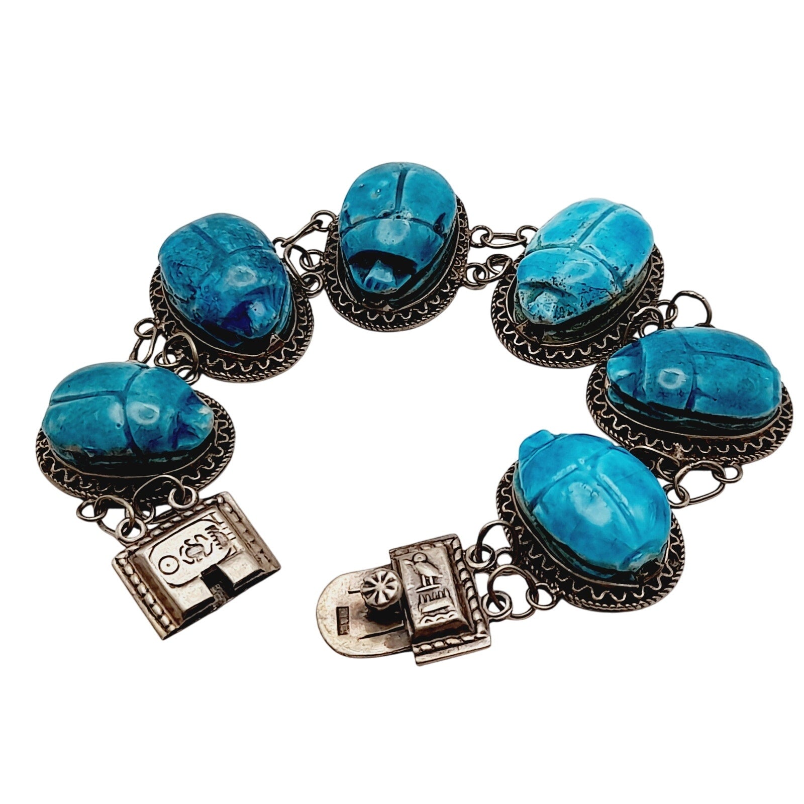 Antique Art Deco Silver Egyptian Revival Scarab Bracelet