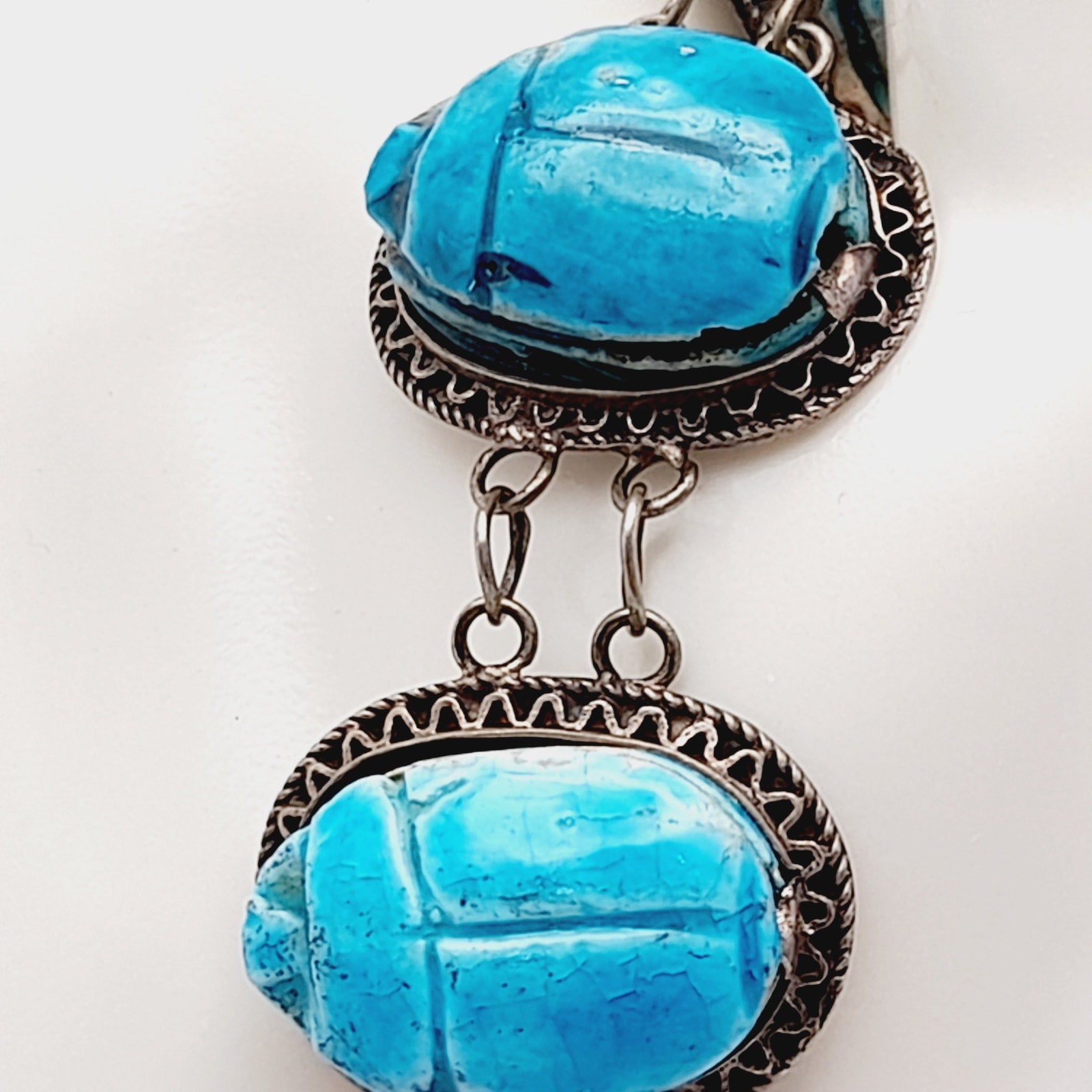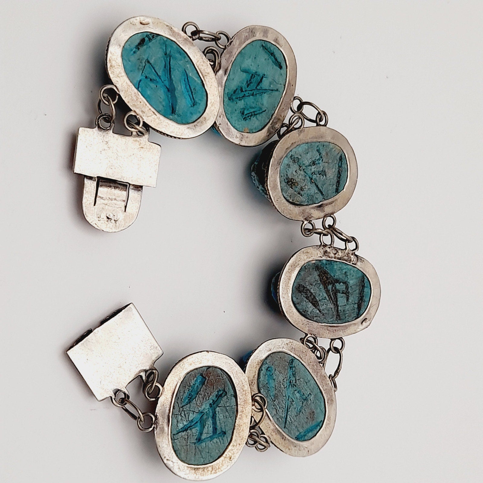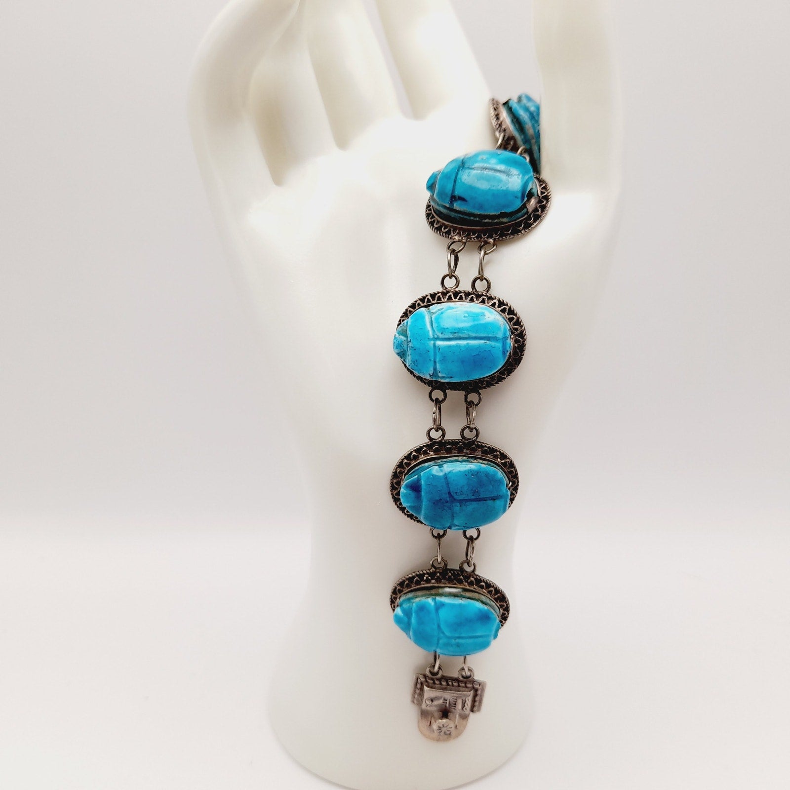 Antique Art Deco Silver Egyptian Revival Scarab Bracelet