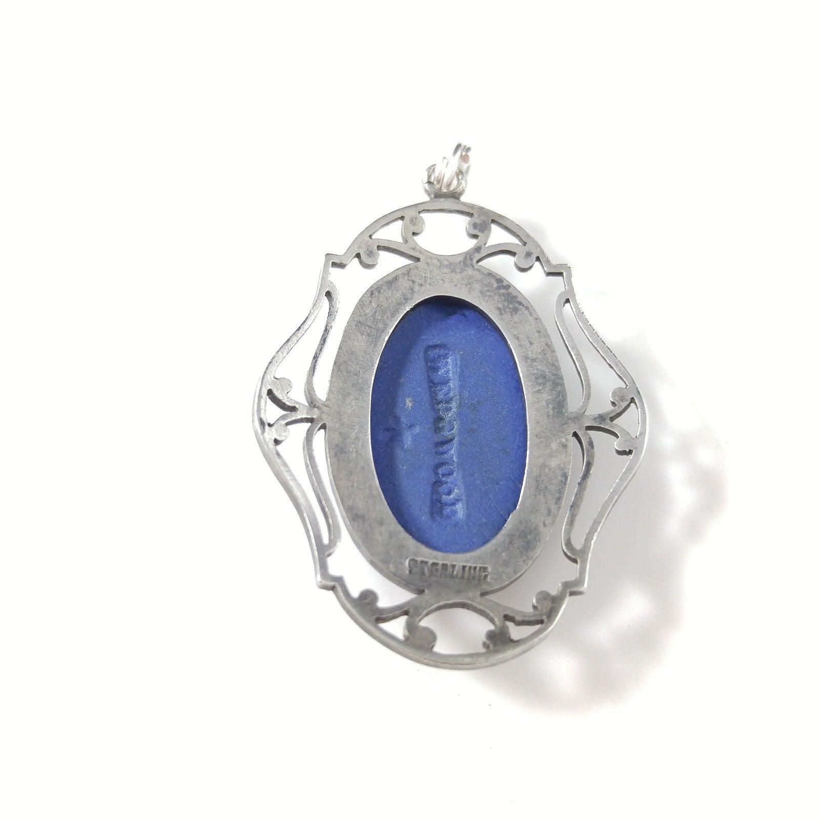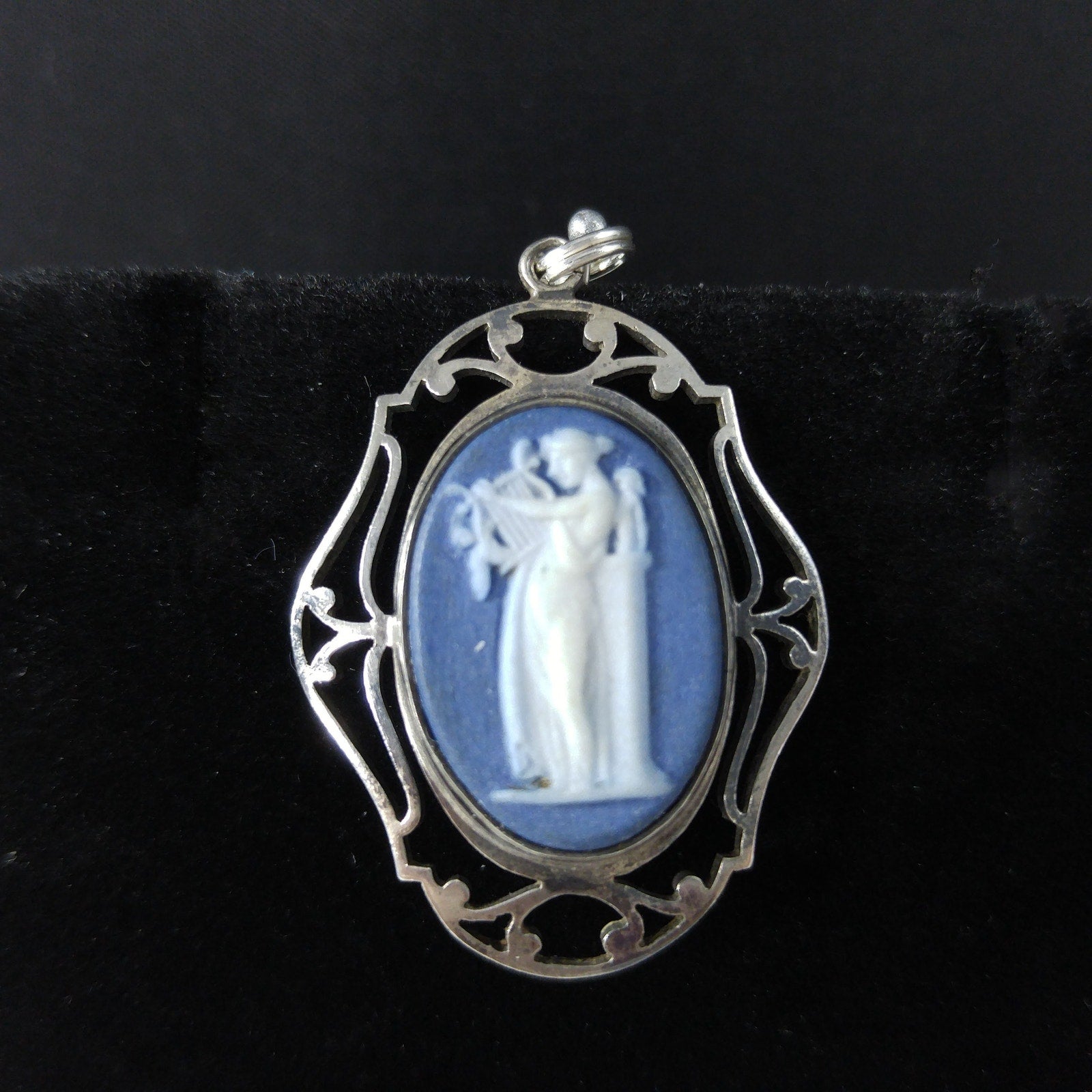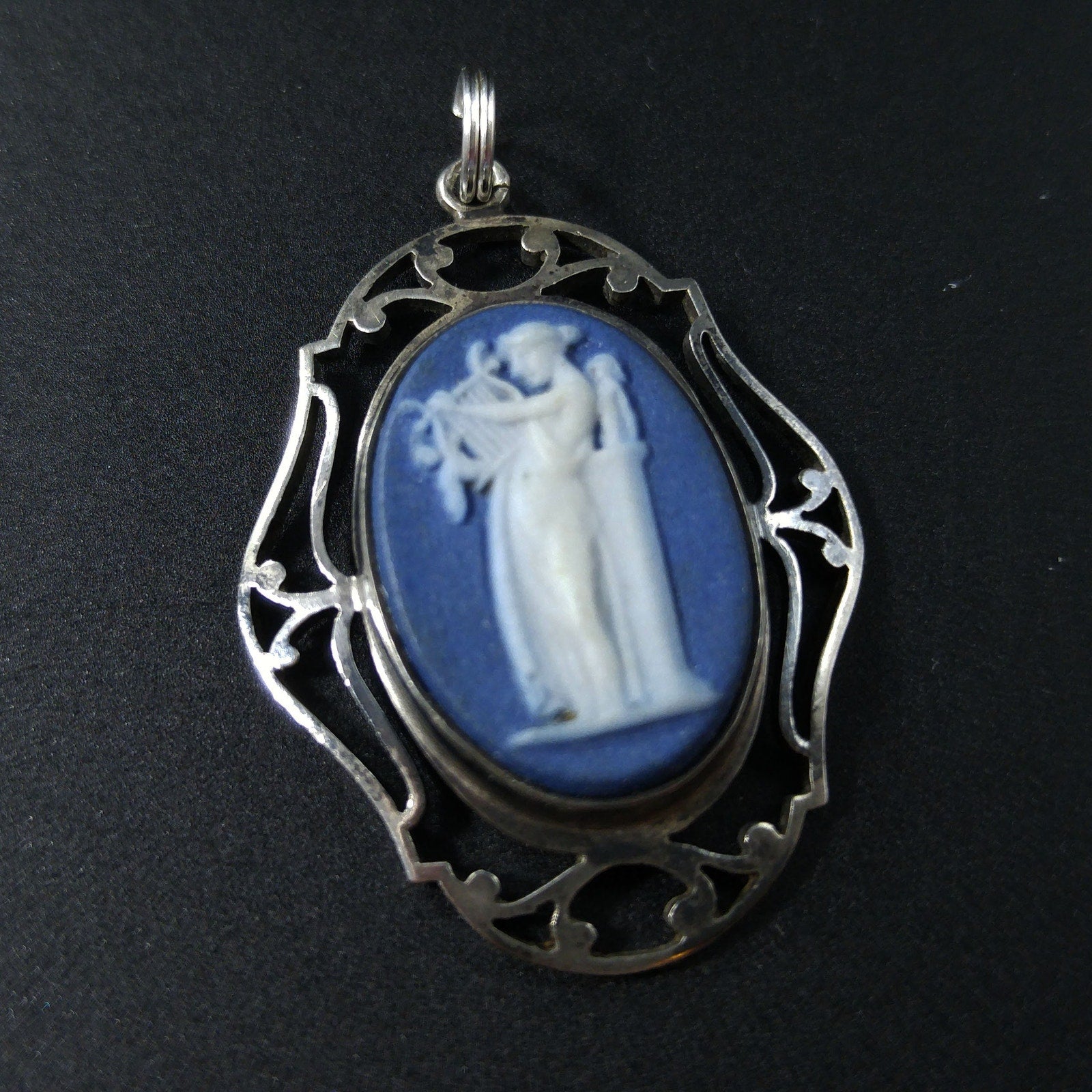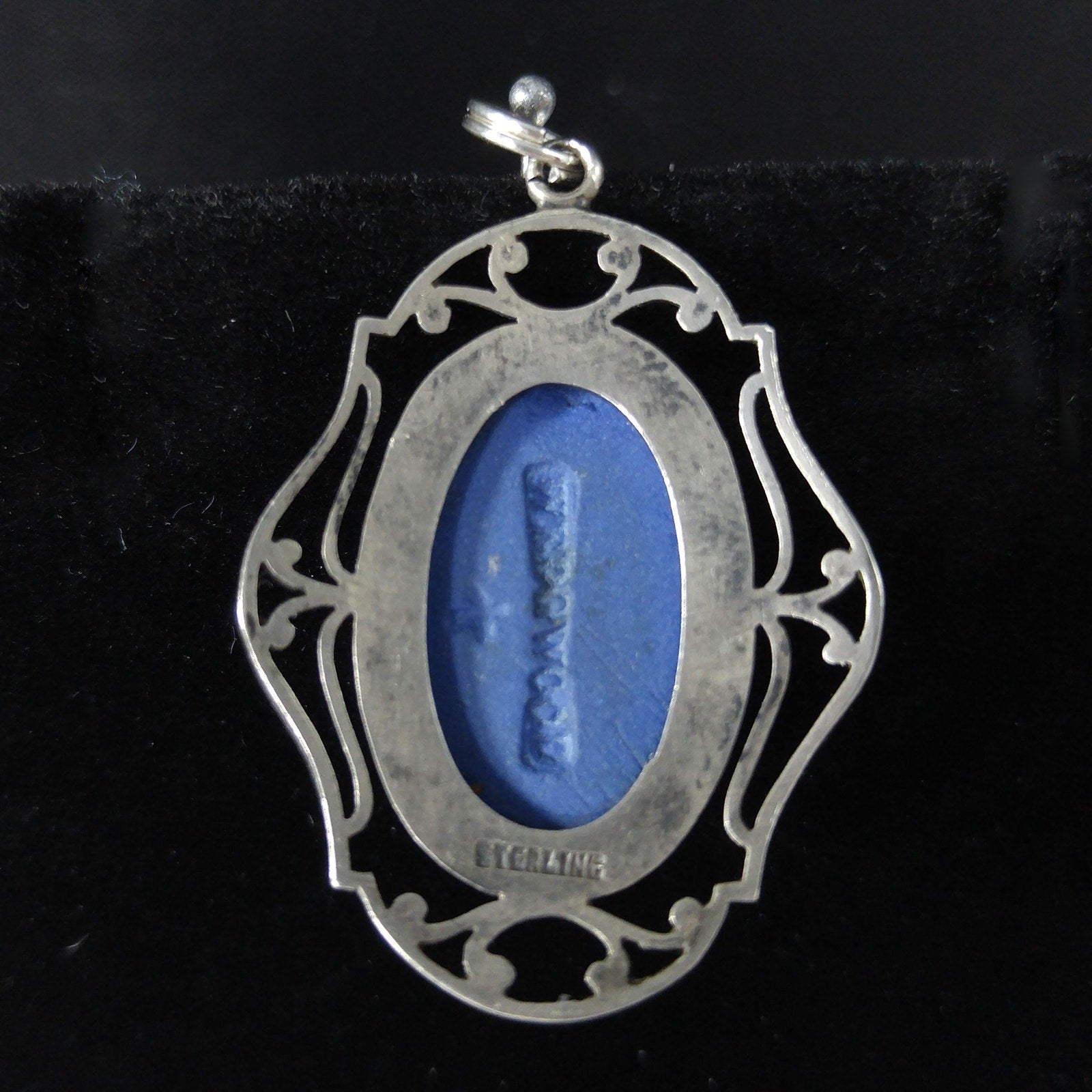 Antique Wedgwood Sterling Blue Jasperware Pendant Victorian Goddess England