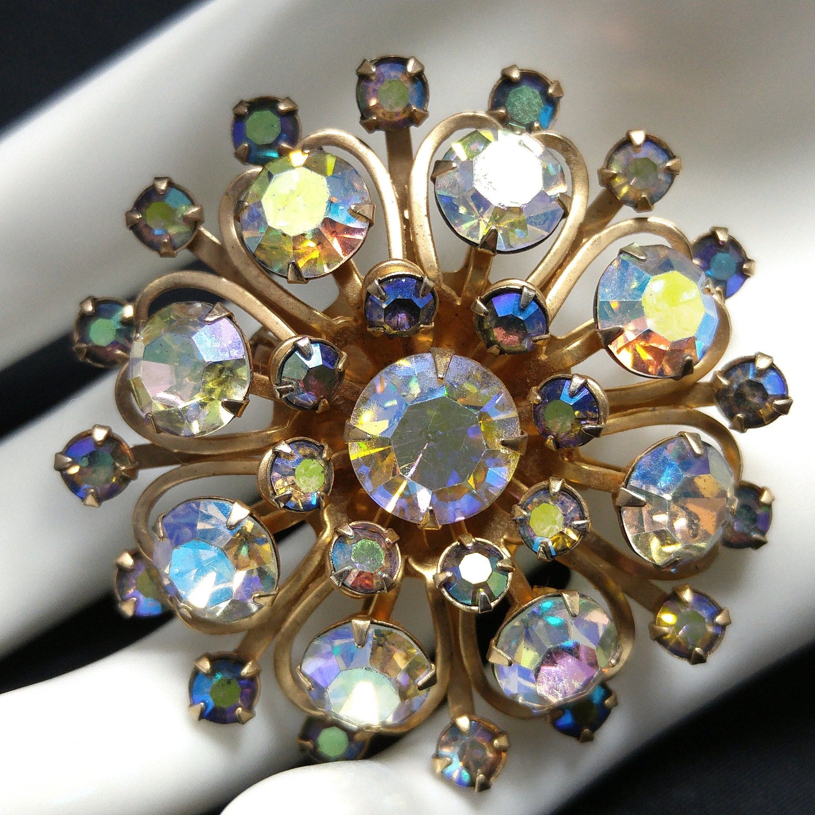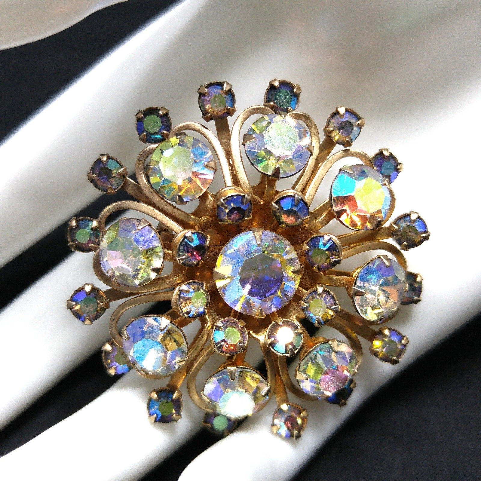 Aurora Borealis Rhinestones Brooches, Mid Century, 1950s Vintage Jewelry