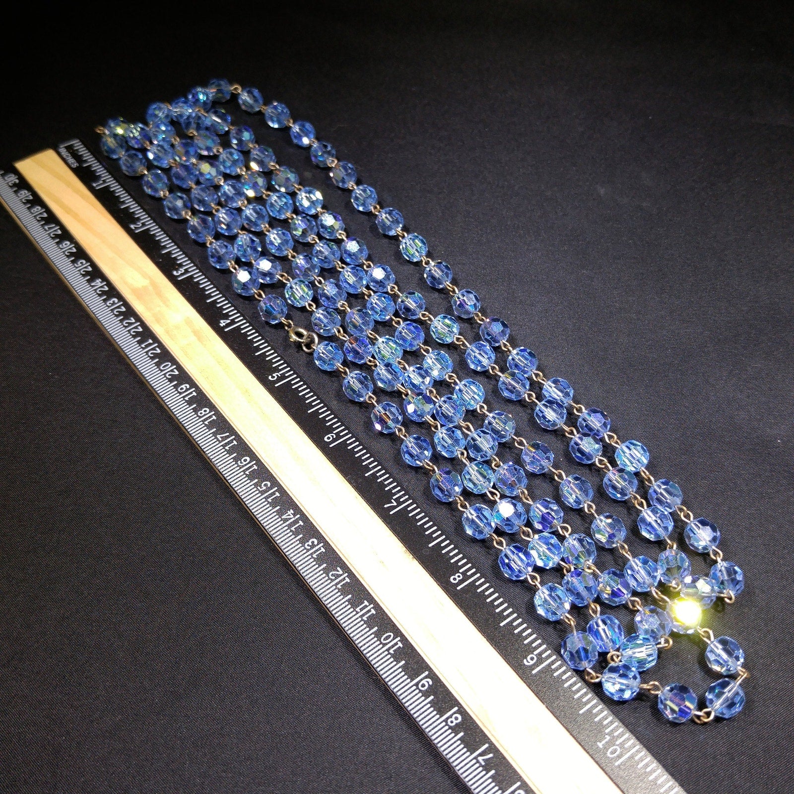 Blue Austrian Crystal Beaded Necklace, Long Rosary Style, 1960s Vintage Jewelry