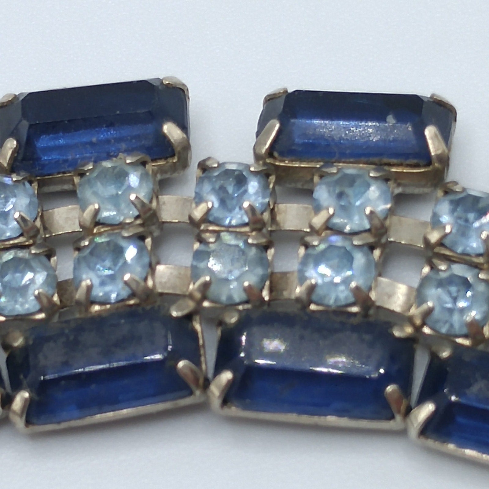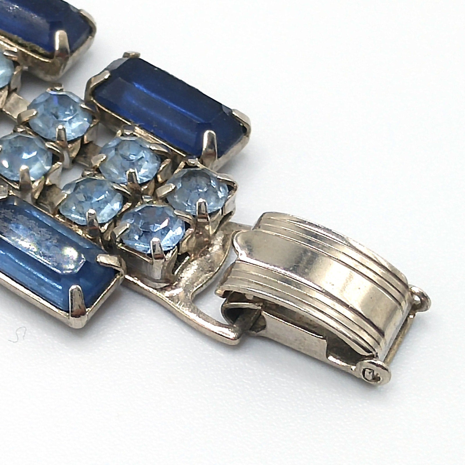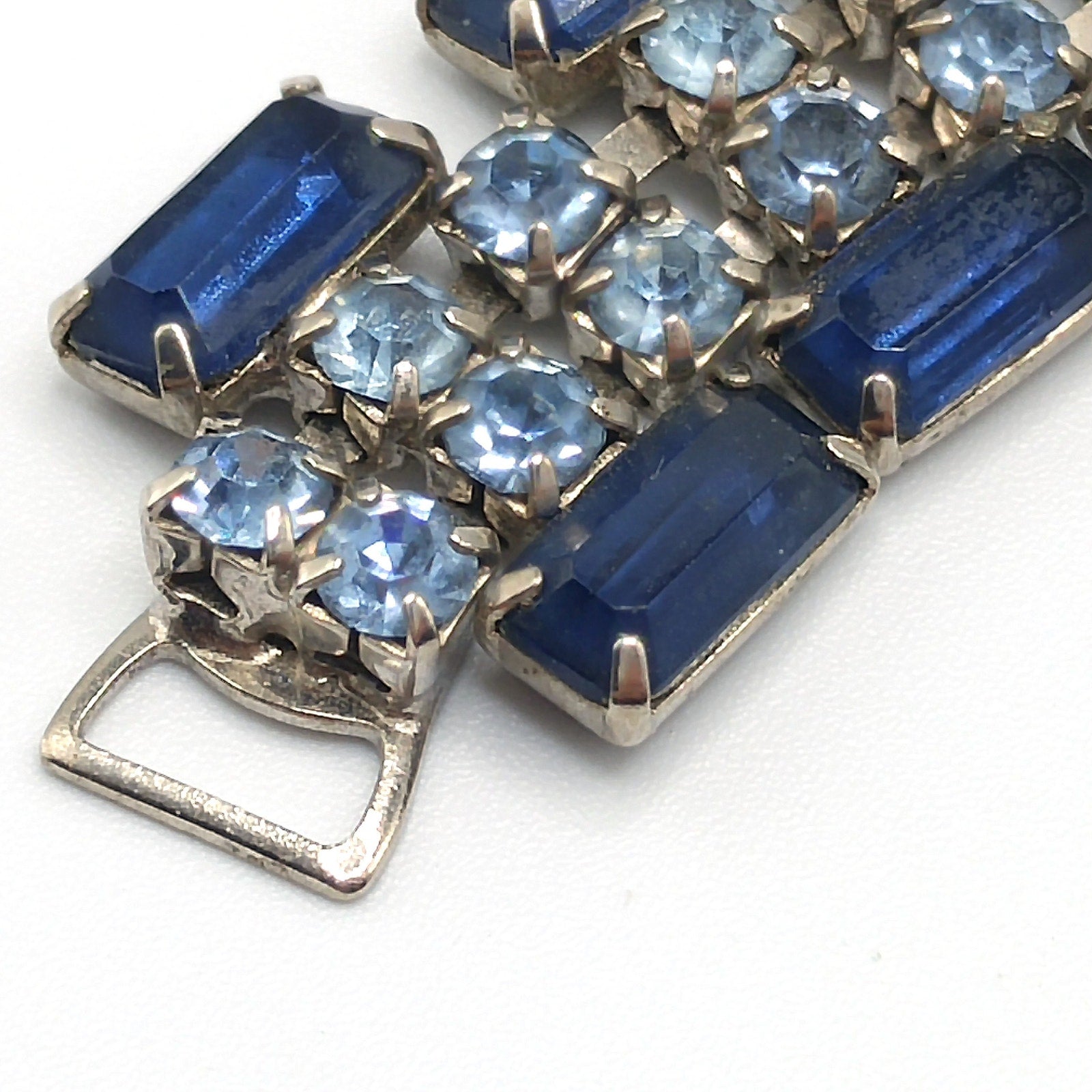Blue Rhinestone Wide Bracelet, Darker Lighter Blue, Mid-Century, 1950s Vintage Jewelry