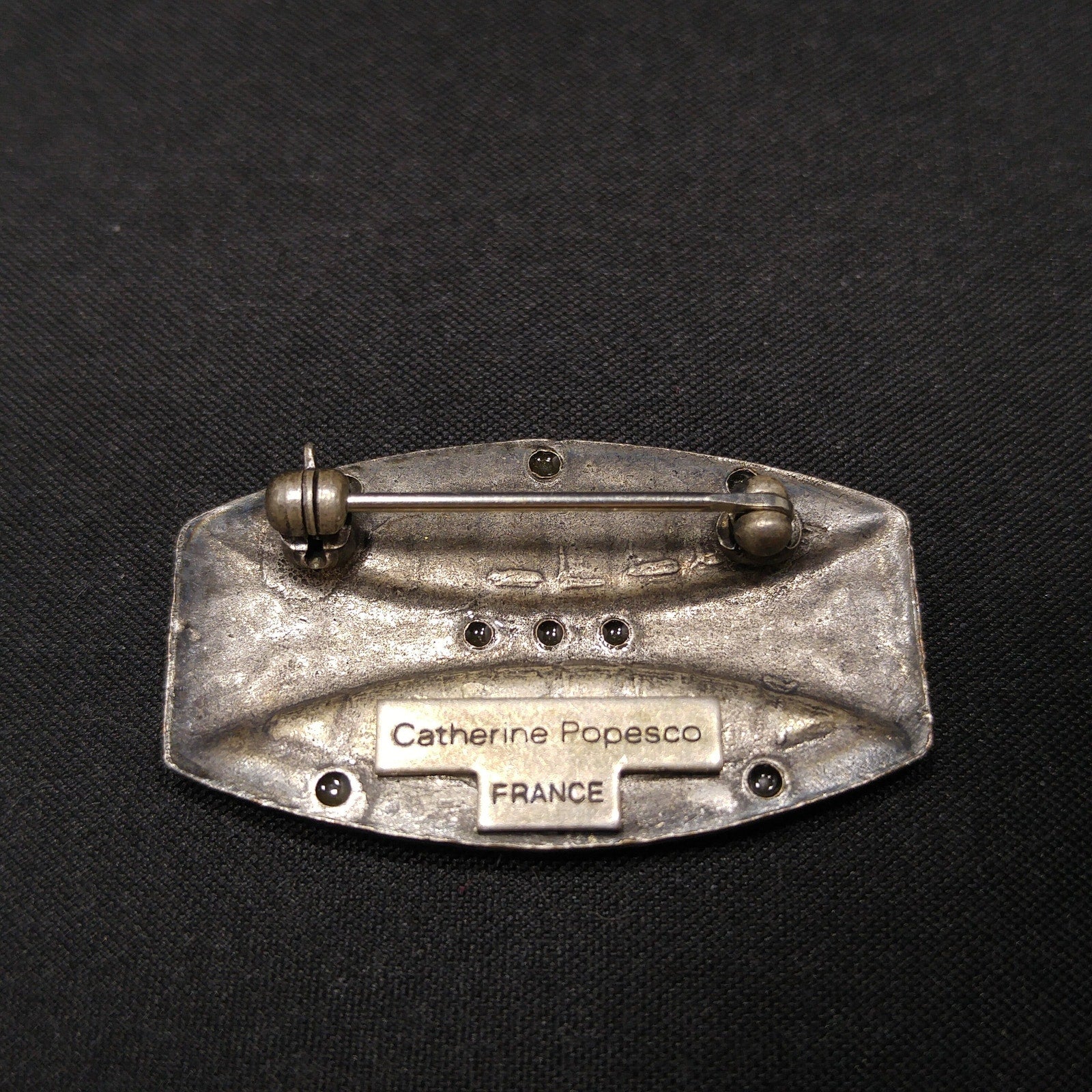 Catherine Popesco Red Enamel Art Deco Brooch, Rhinestones Under Enamel, France, 1980s Vintage Jewelry