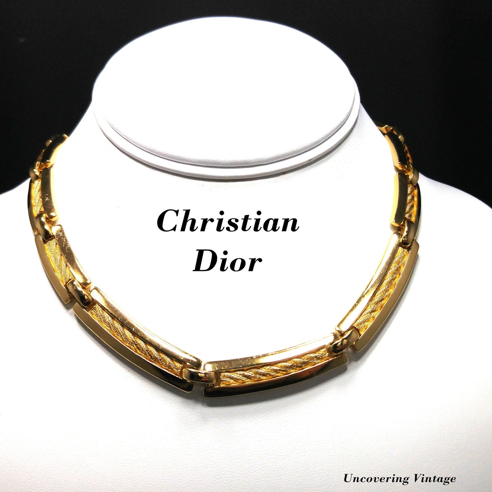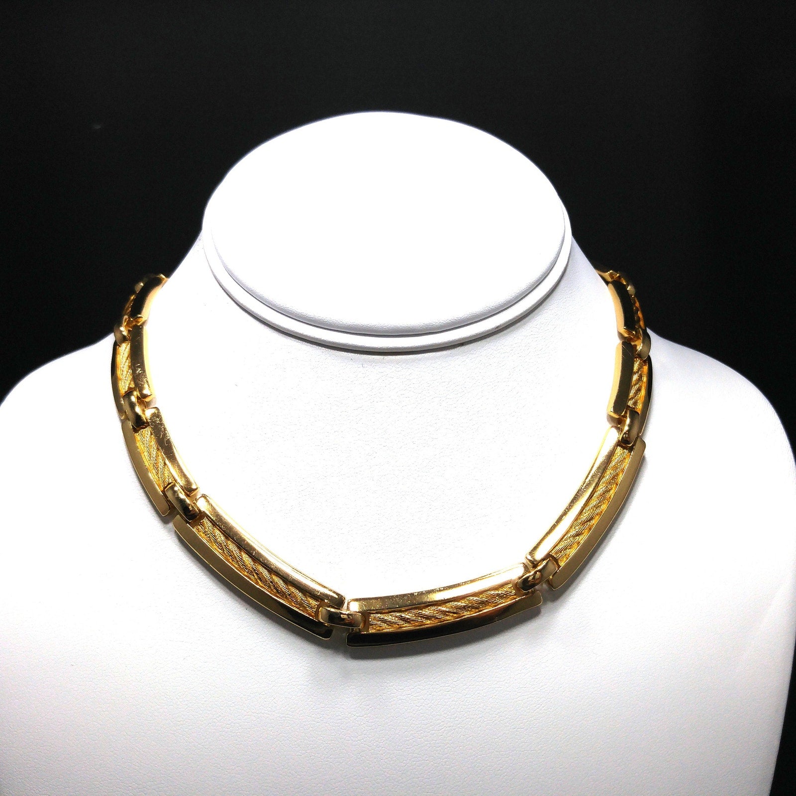 Christian Dior 1980s Gold Plated Rope Inlay Link Choker Necklace – Vintage Designer Jewelry