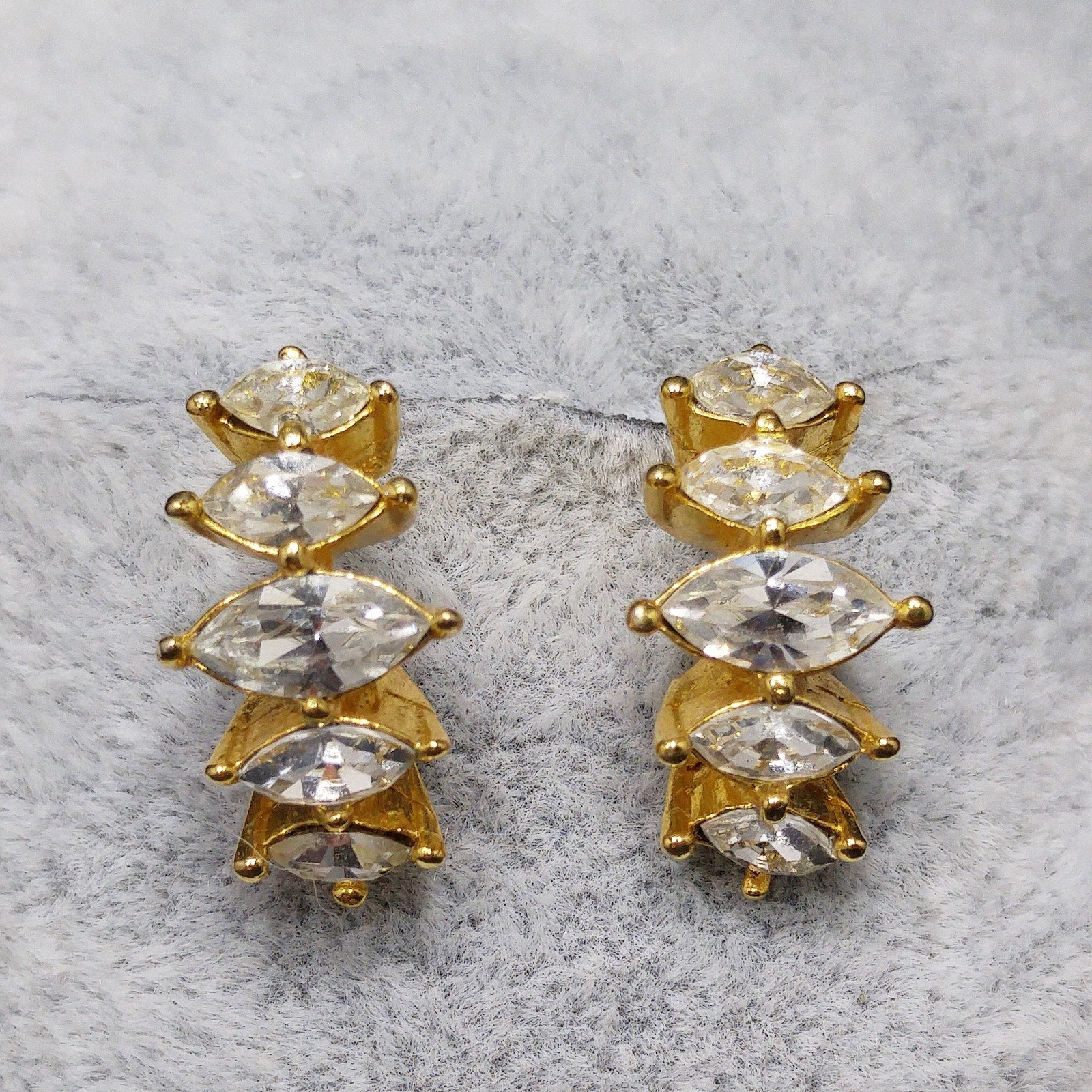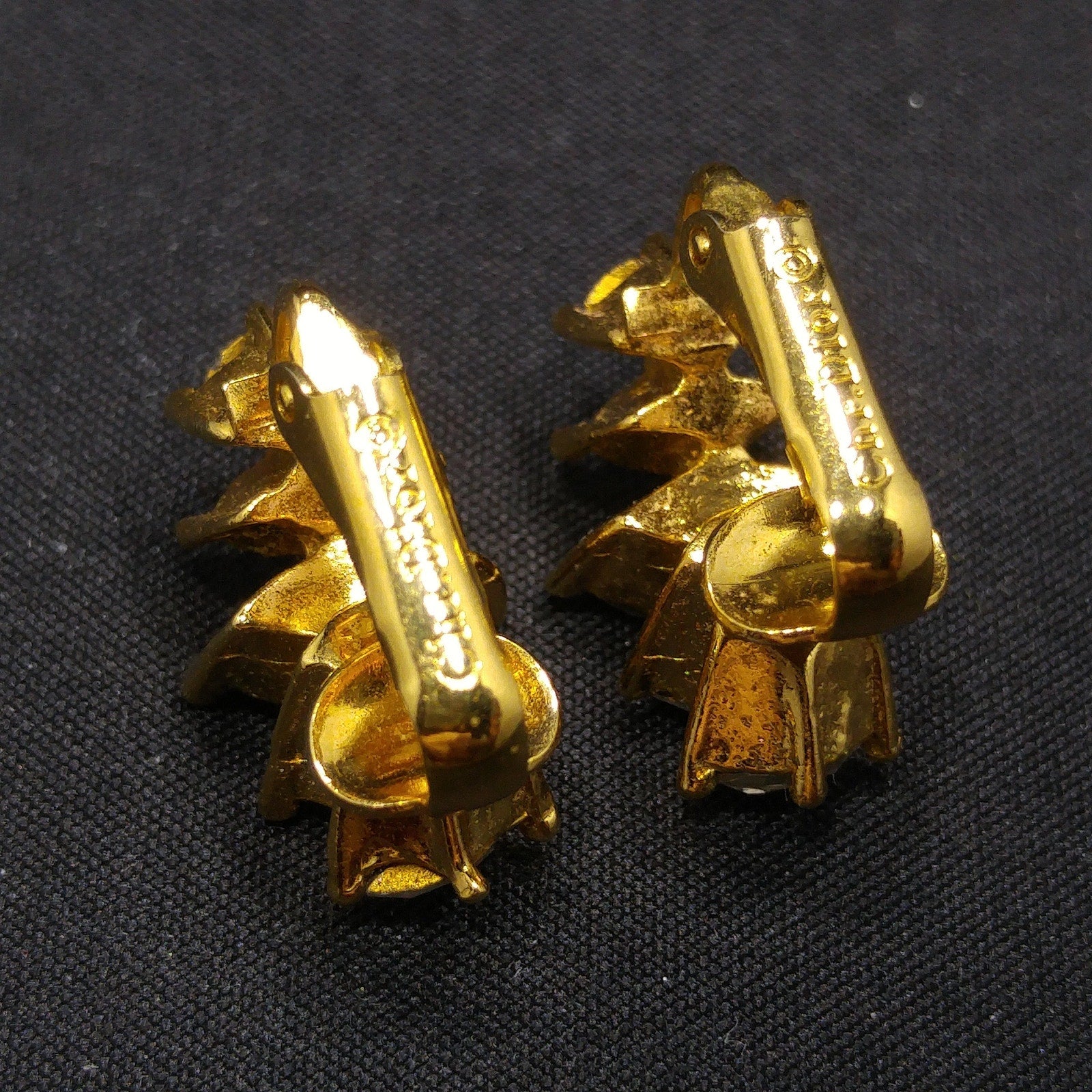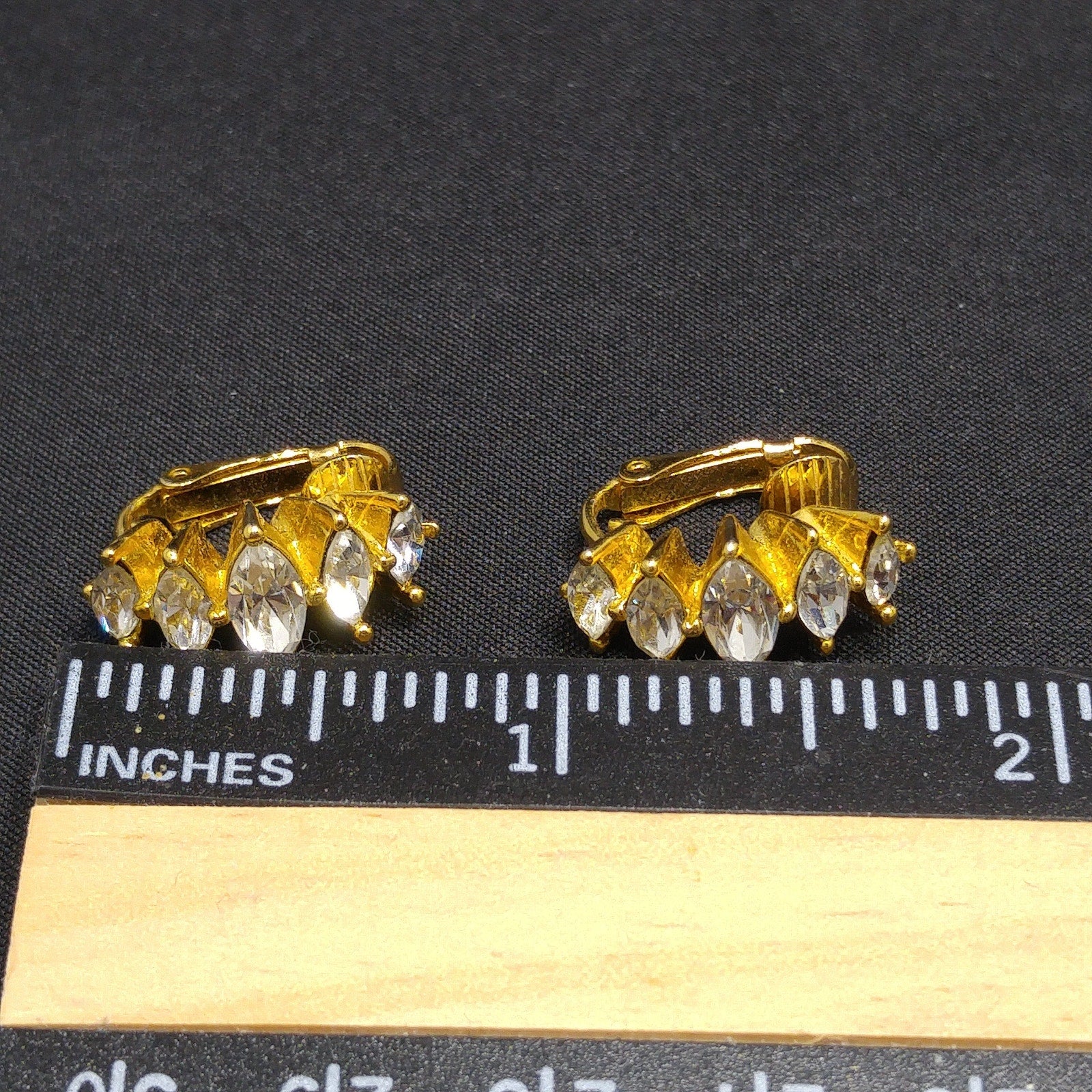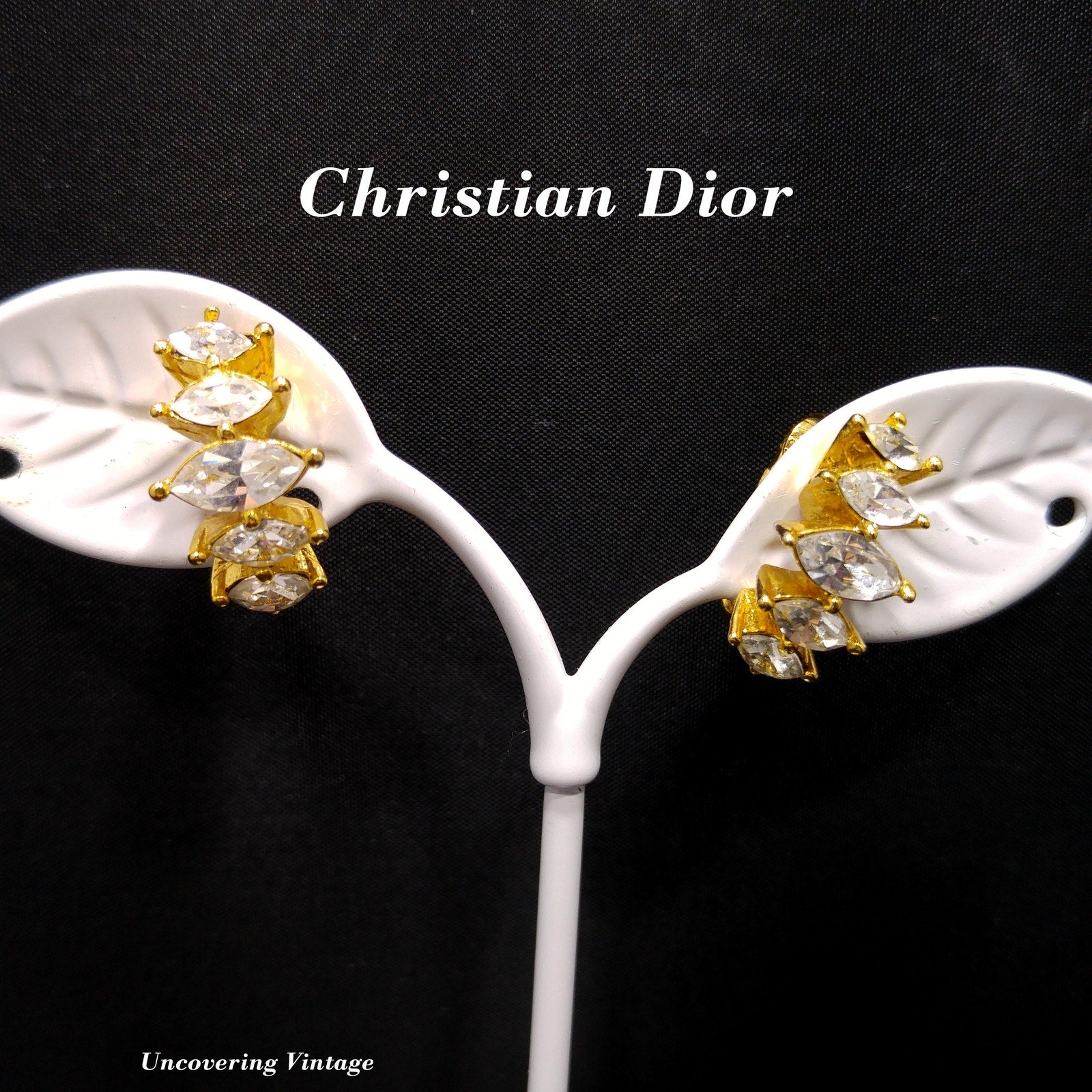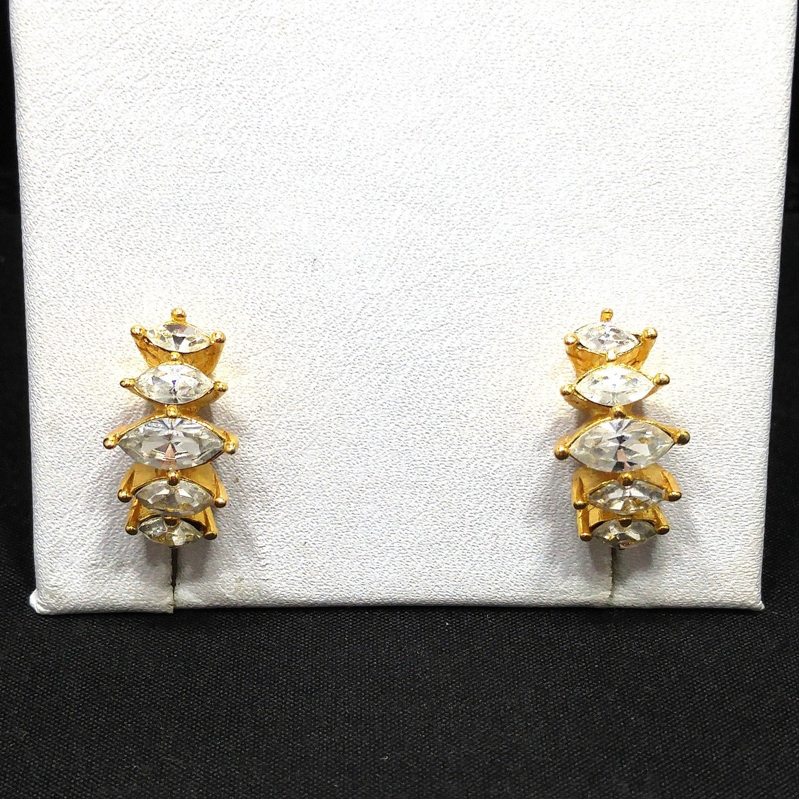 *Description: This is a beautiful pair of Christian Dior vintage half loop earrings with gold plated backing and clear marquise cut rhinestones from the 1970s. This is a classic pair of Dior earrings and will be perfect to wear for years to come.