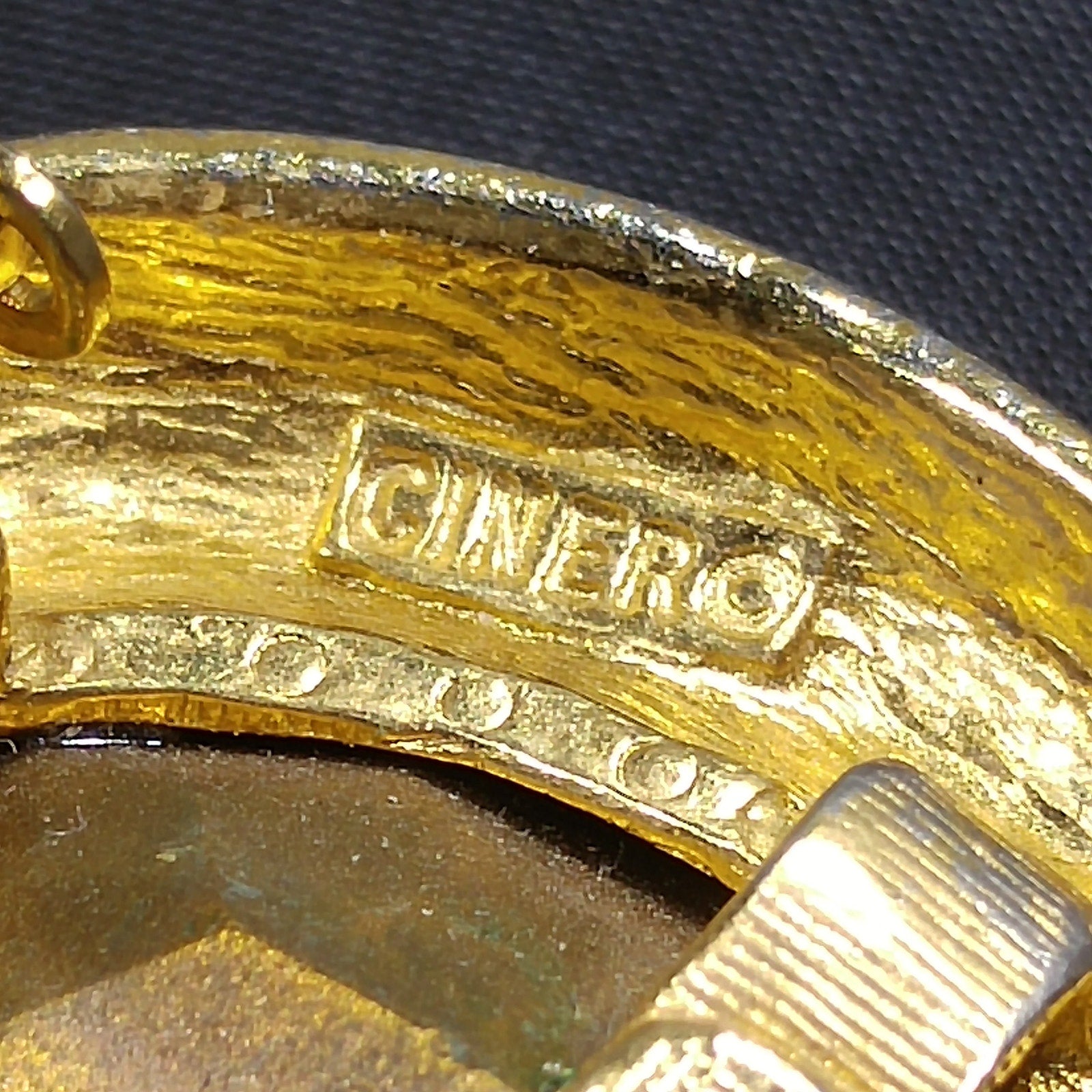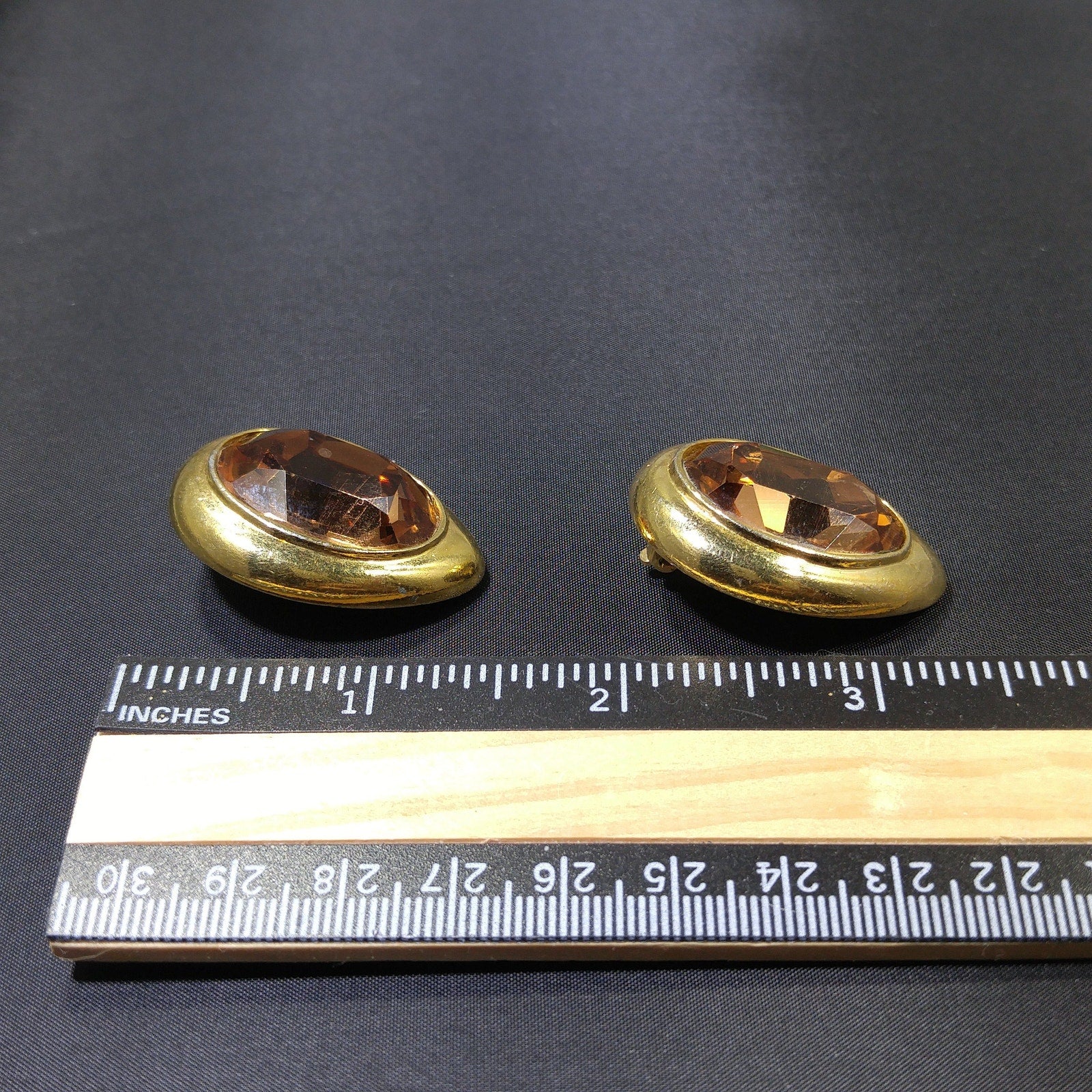 *Description: This is a great pair of large CINER earrings with a topaz crystal oval stone and each outlined with a gold plated frame from the 1980s. The center stones are foil backed and the clips are stamped with the CINER hallmark. This would be a great addition to your vintage jewelry collection or make a great vintage gift!