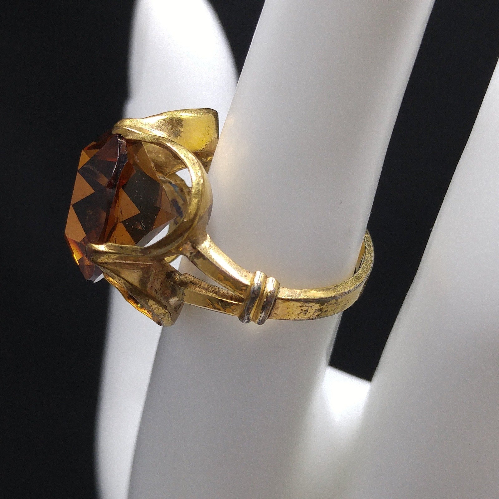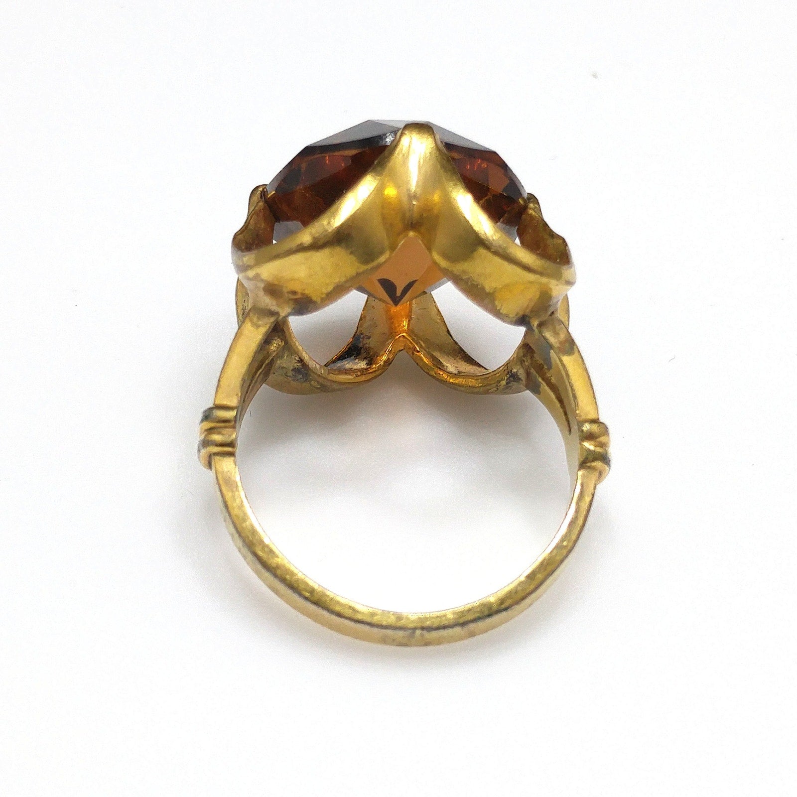 Clark & Coombs Topaz Glass Ring, 10K Gold Filled, 1940s Vintage Jewelry