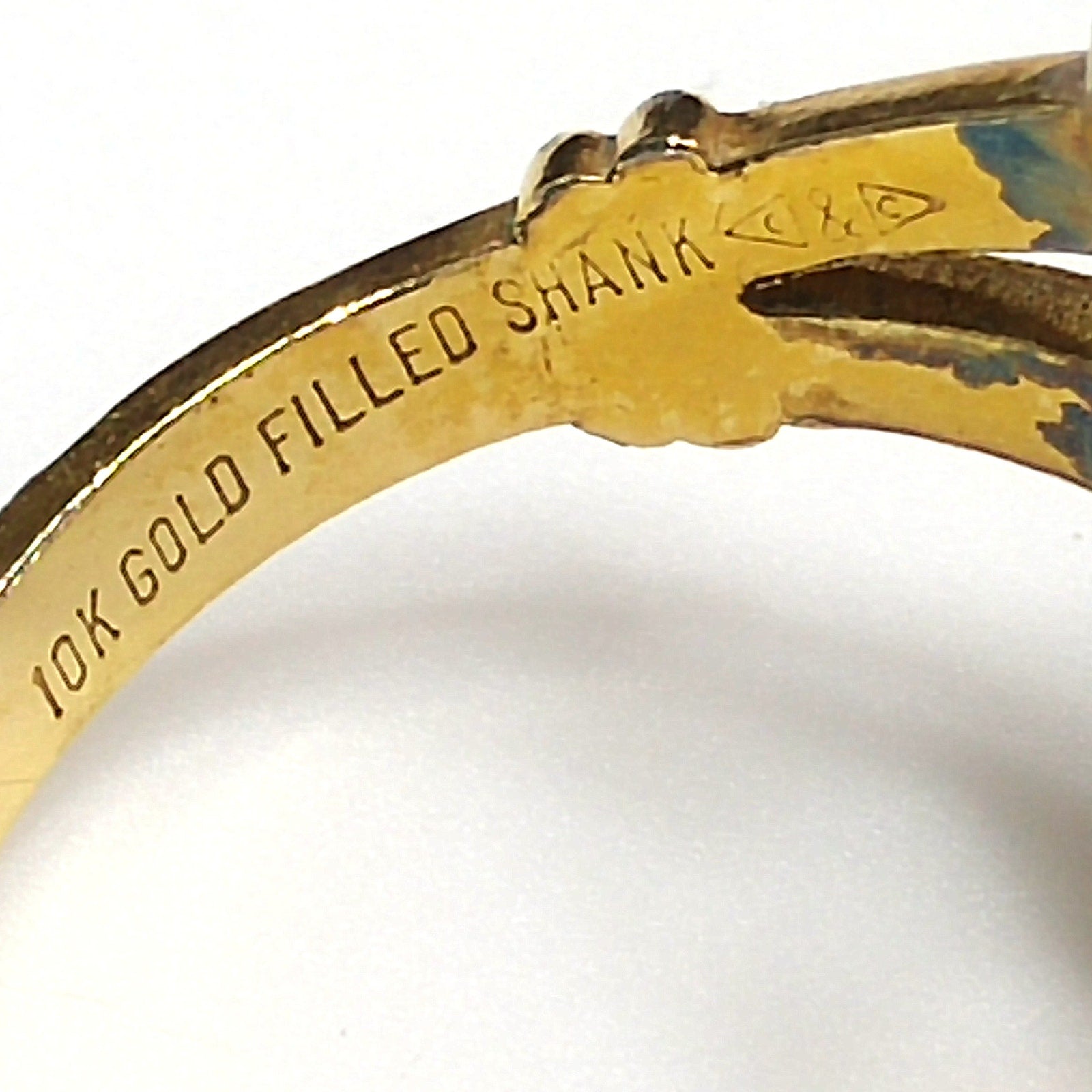 *Condition: Very good vintage condition. There is wear on the inside of the ring shank, on the gold plating, from age and wear. Please see photos for details. Will see signs of wear under magnification. See photos for details.