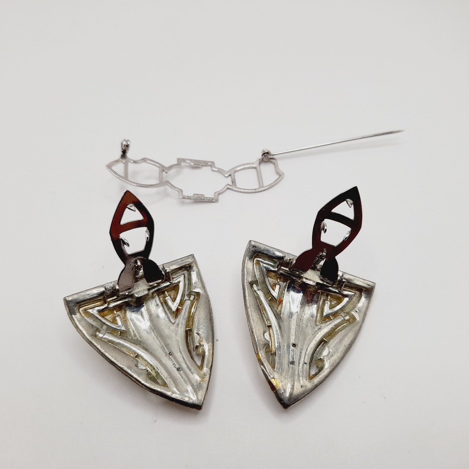 Coro Duette Rhinestone Brooch, Art Deco Dress Clips, Patent 1798867