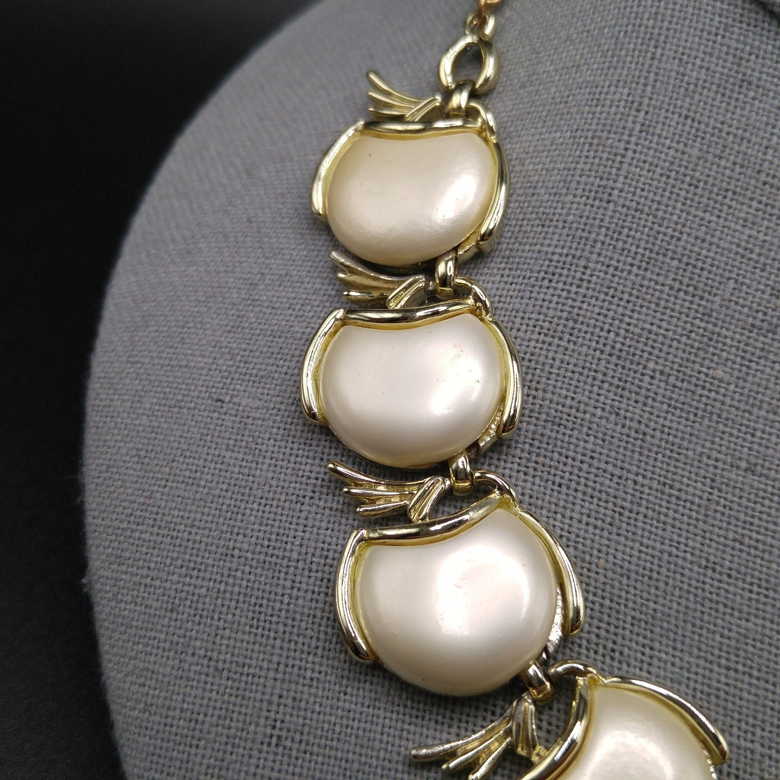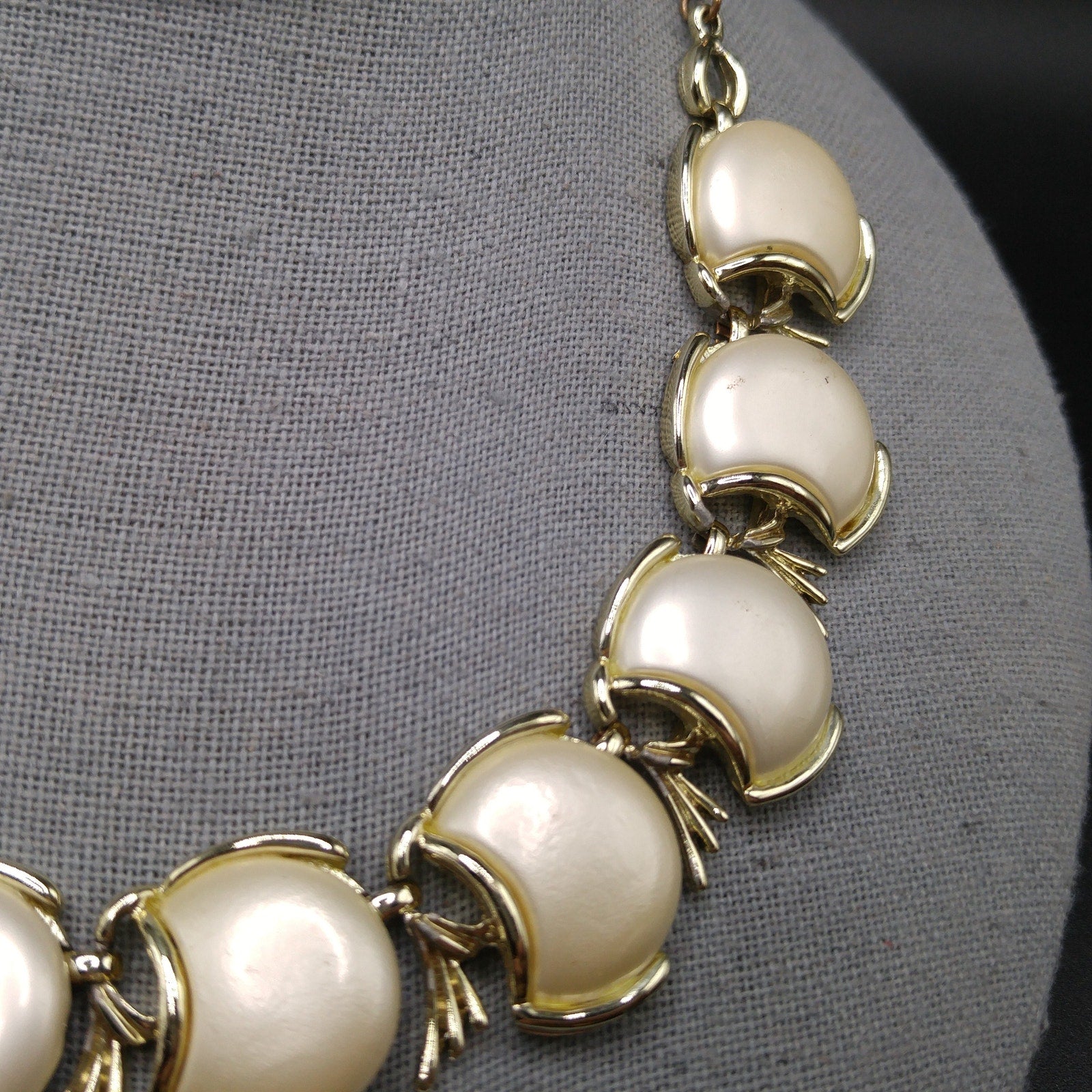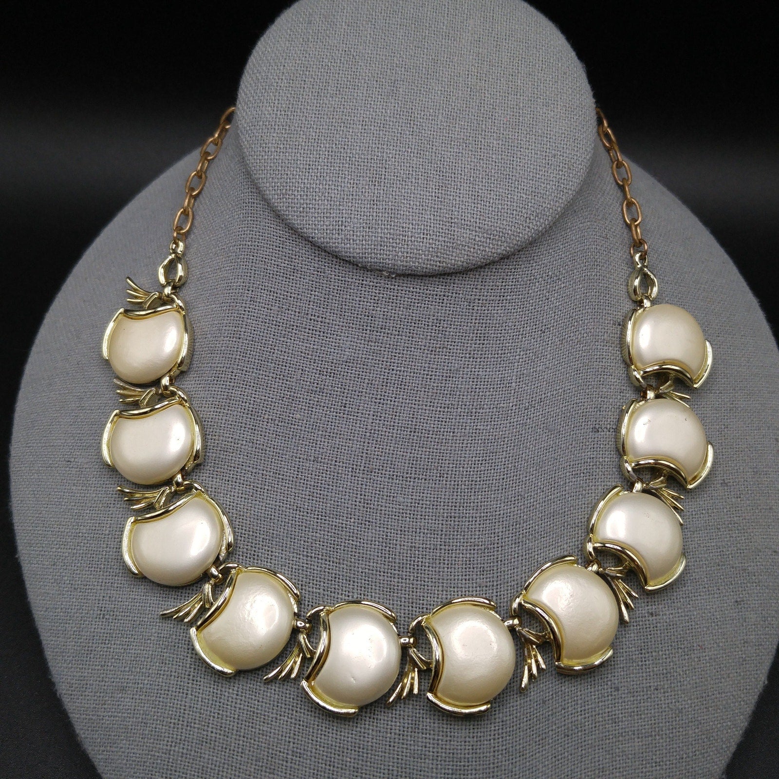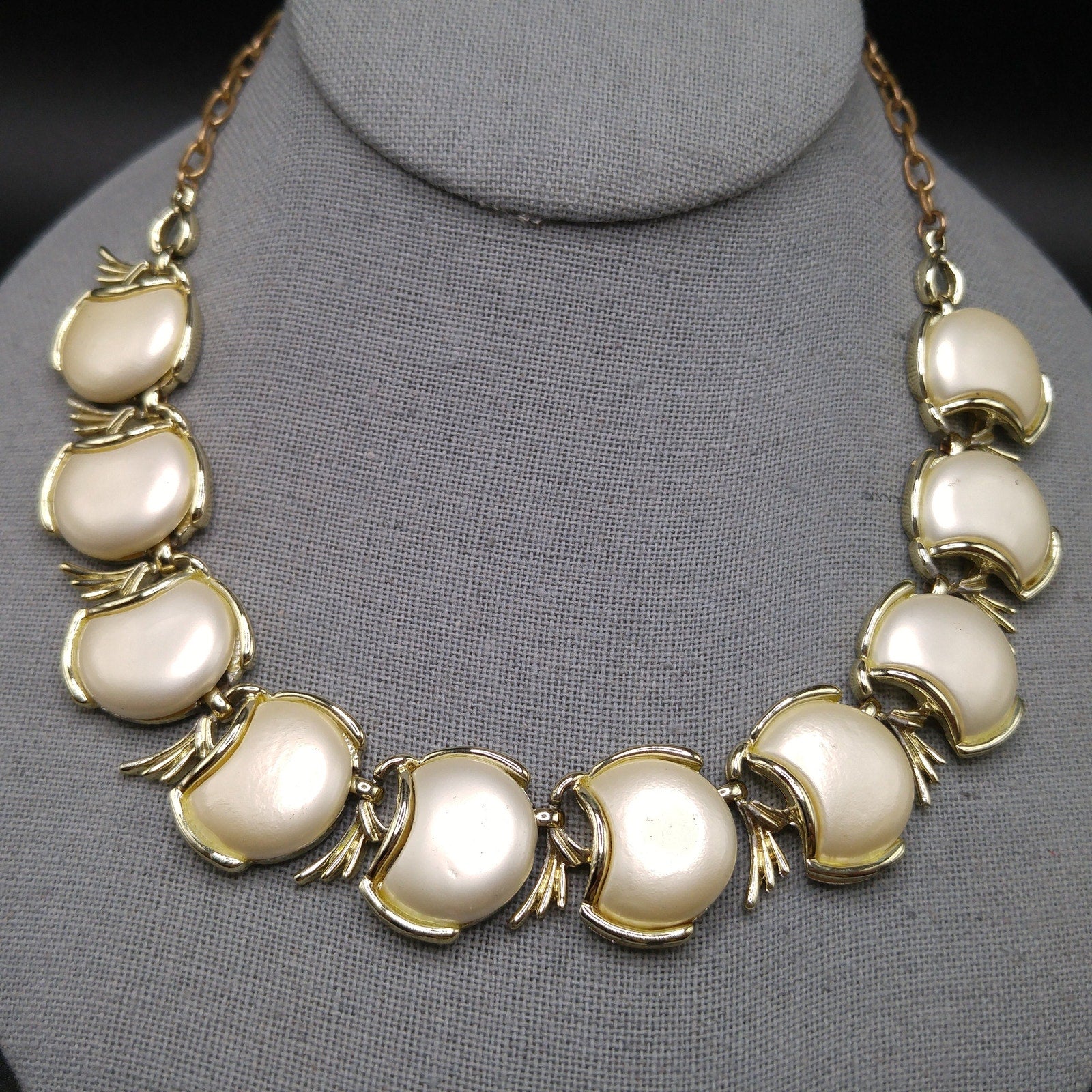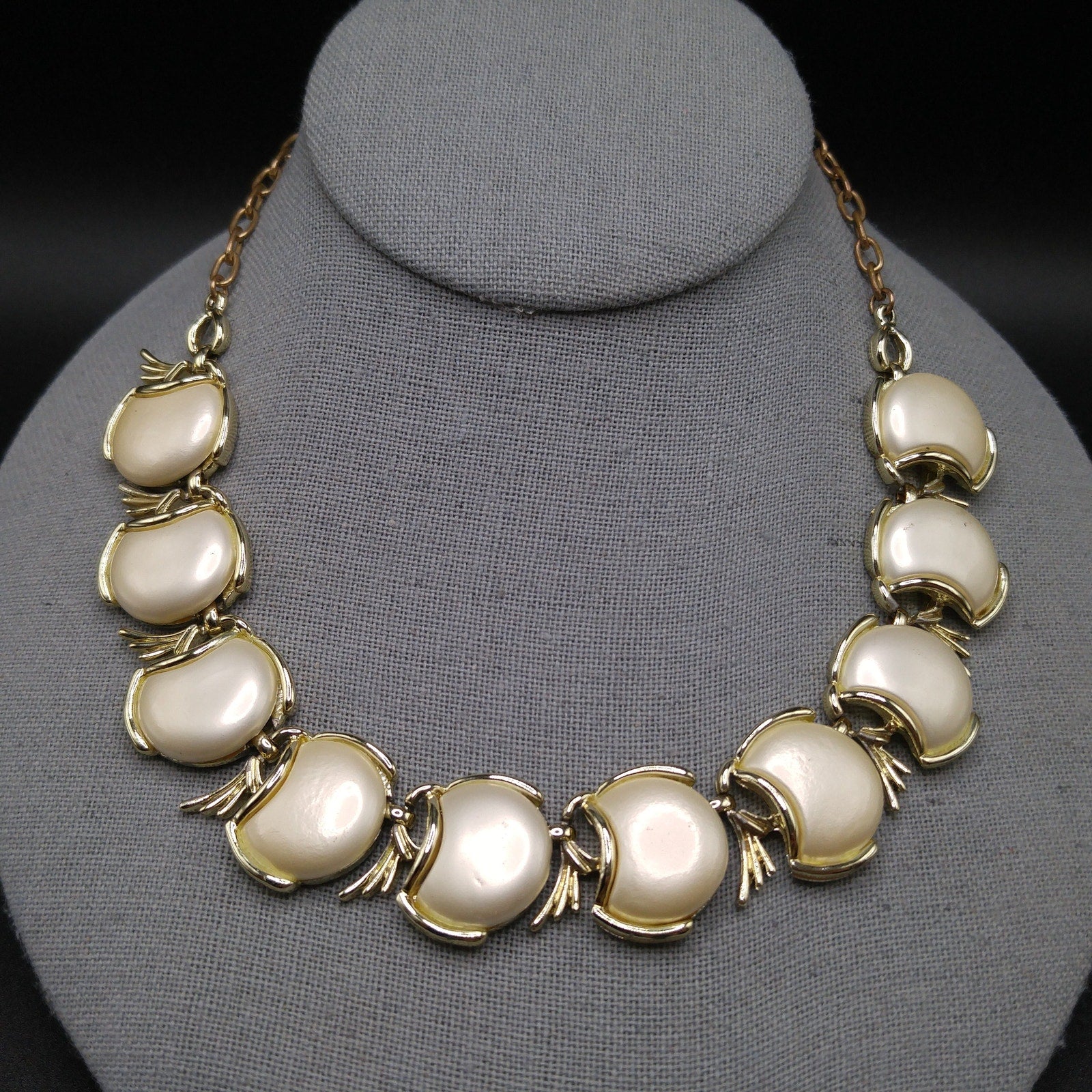 Creamy White Pearled Link Choker Necklace, Mid-Century, Gold Tone, 1950s Vintage Jewelry