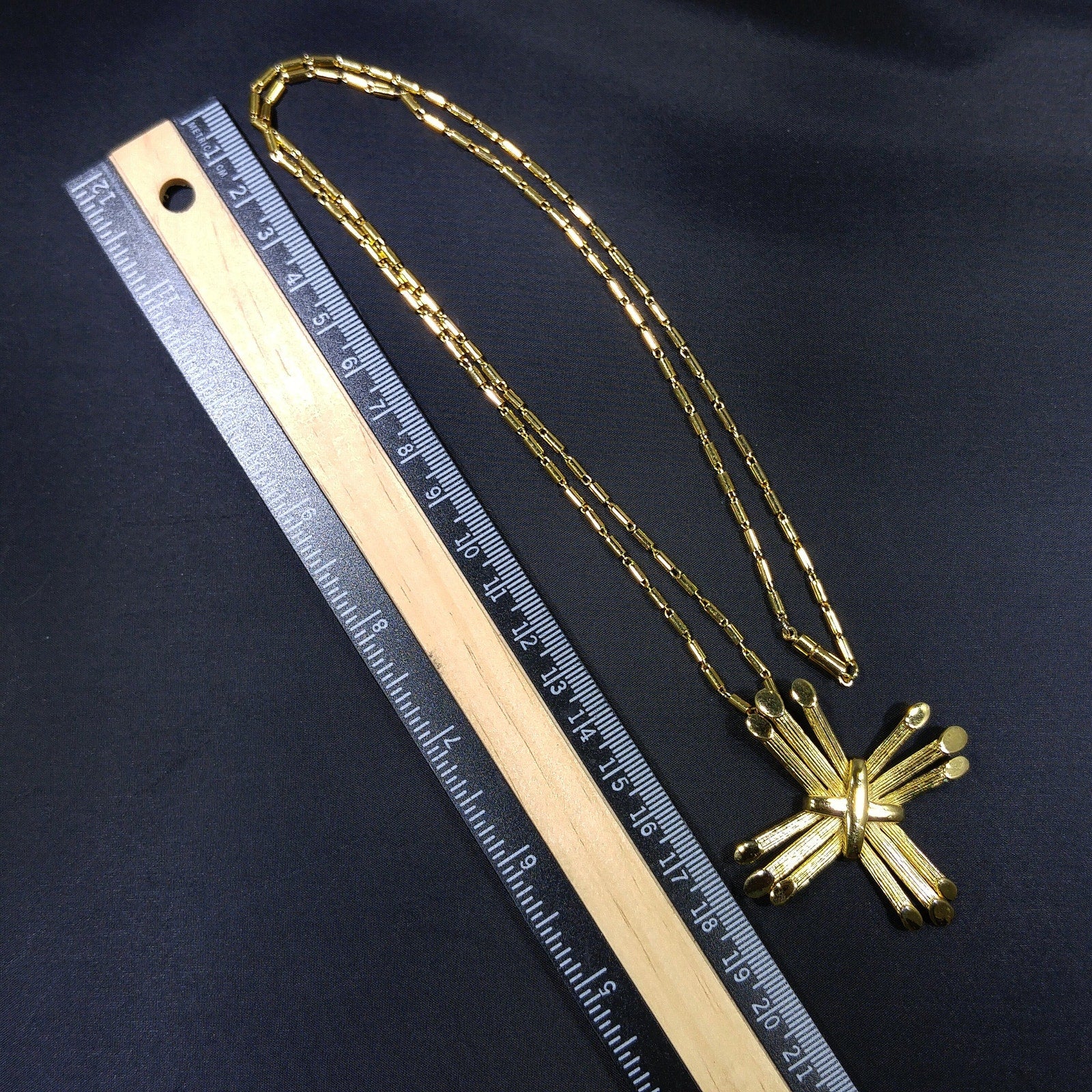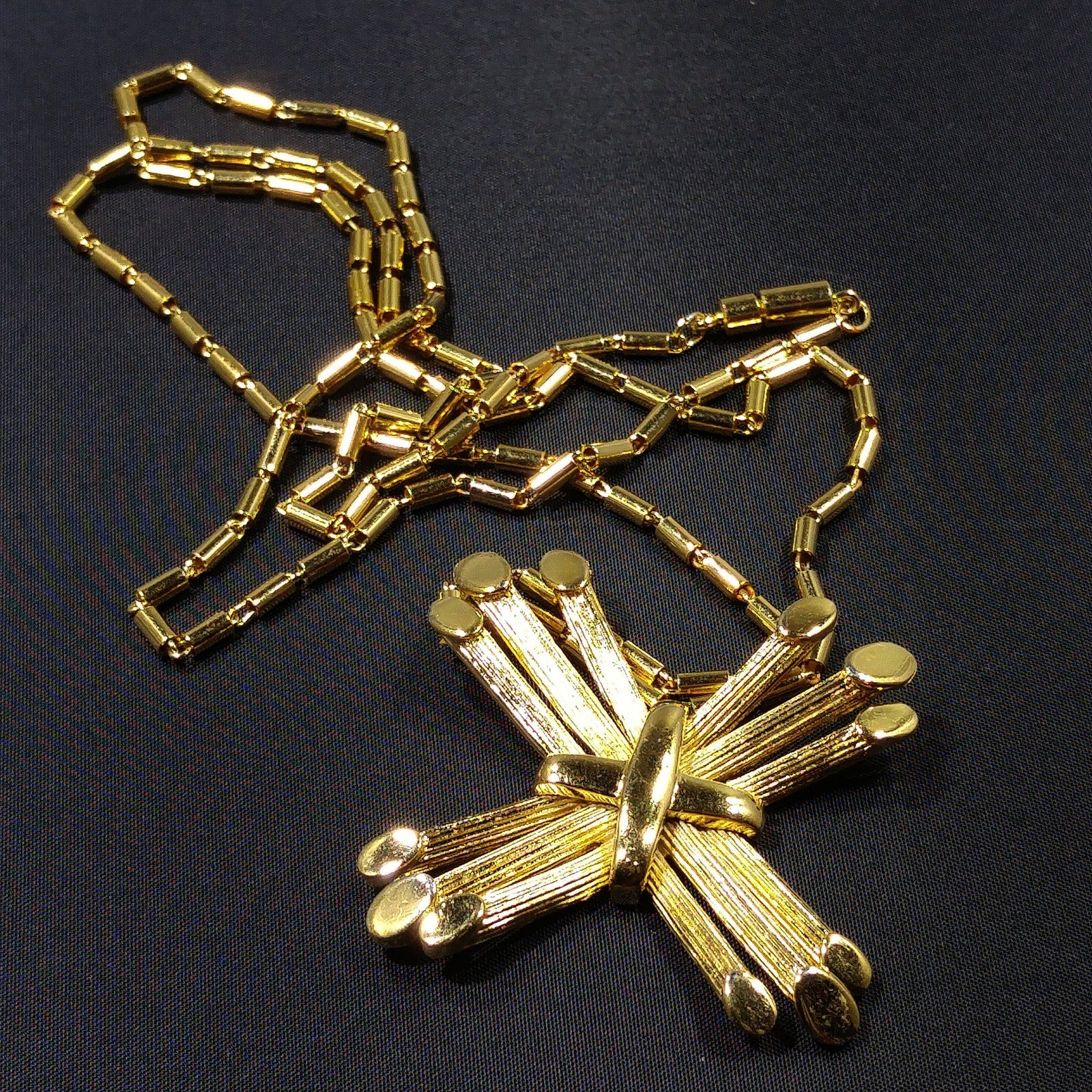 Crown Trifari Cross Pendant Necklace, Gold Plated, 1970s Vintage Jewelry