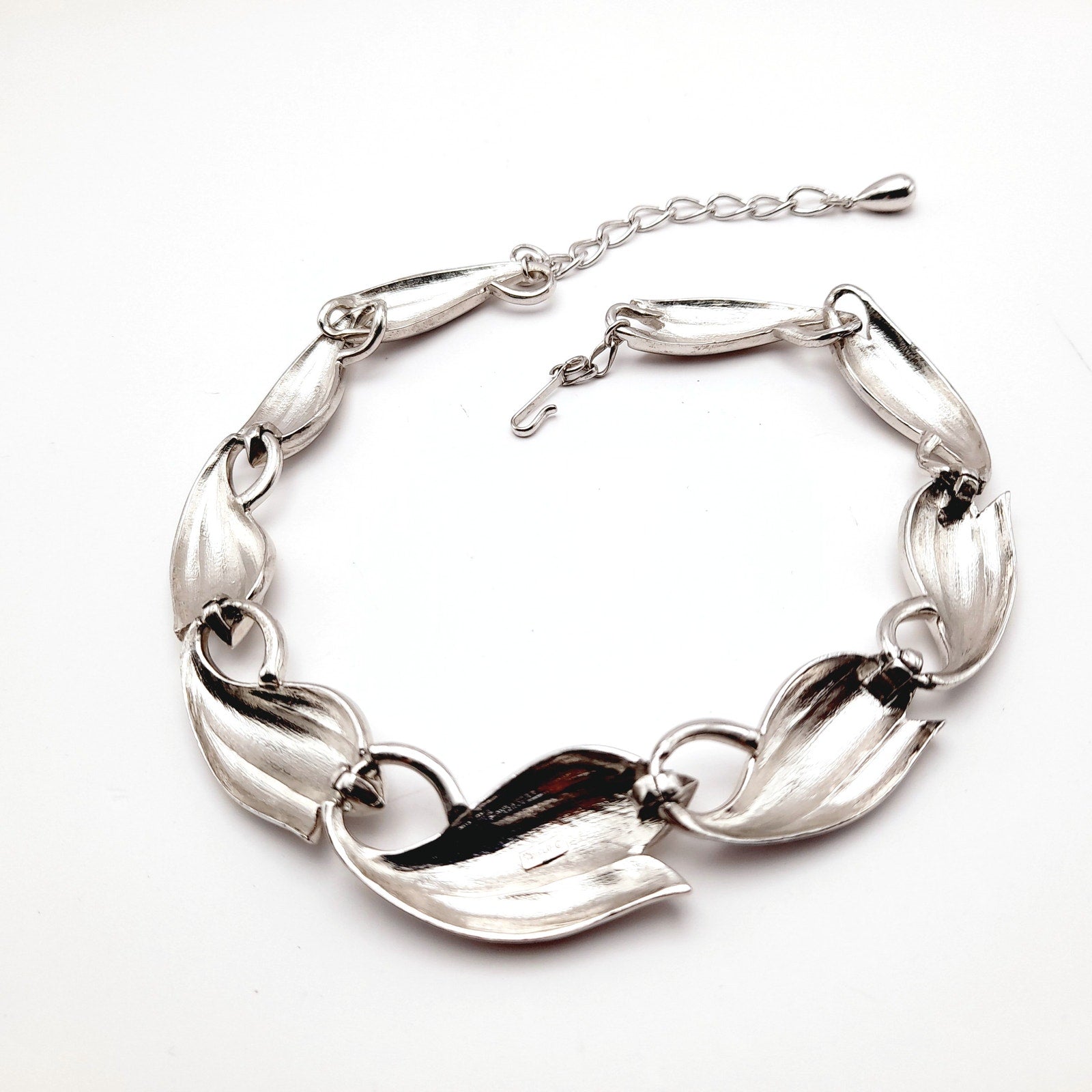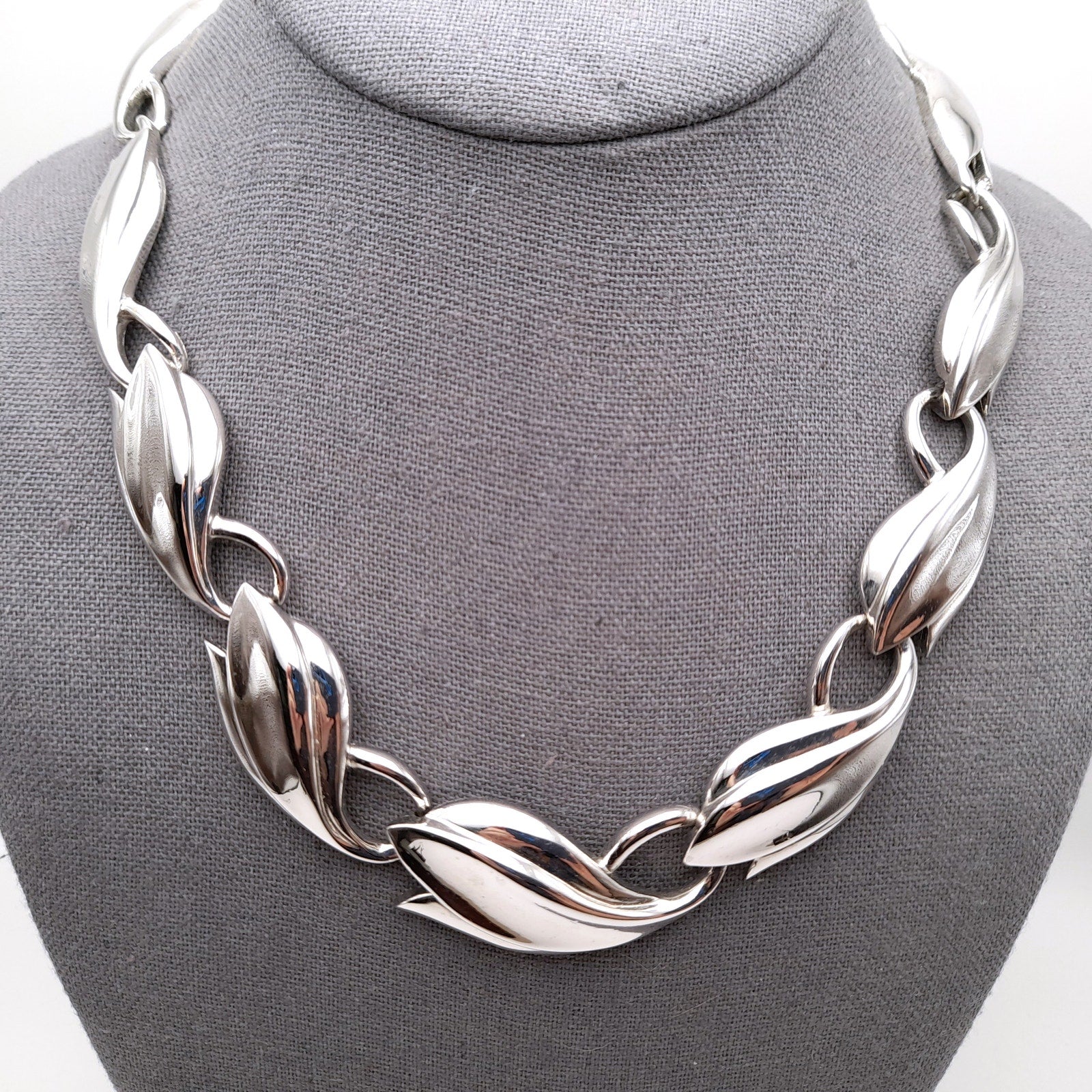 Crown Trifari Rhodium Plated Leaves Vintage Choker Necklace
