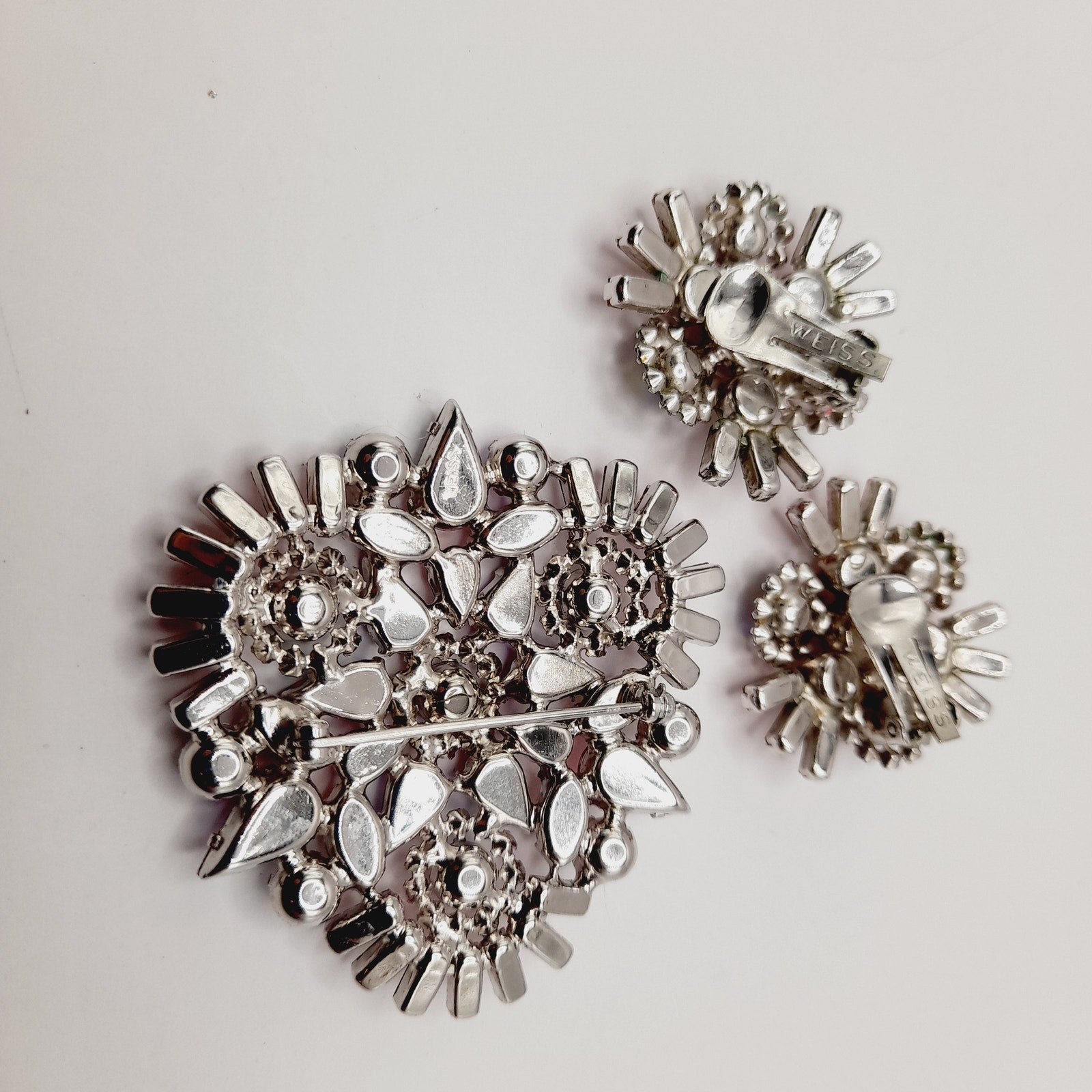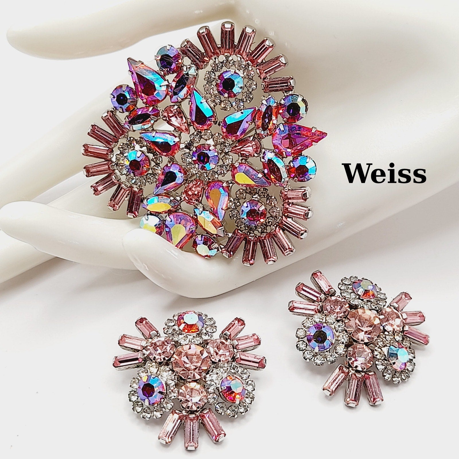 Signed WEISS on both brooch and earrings
