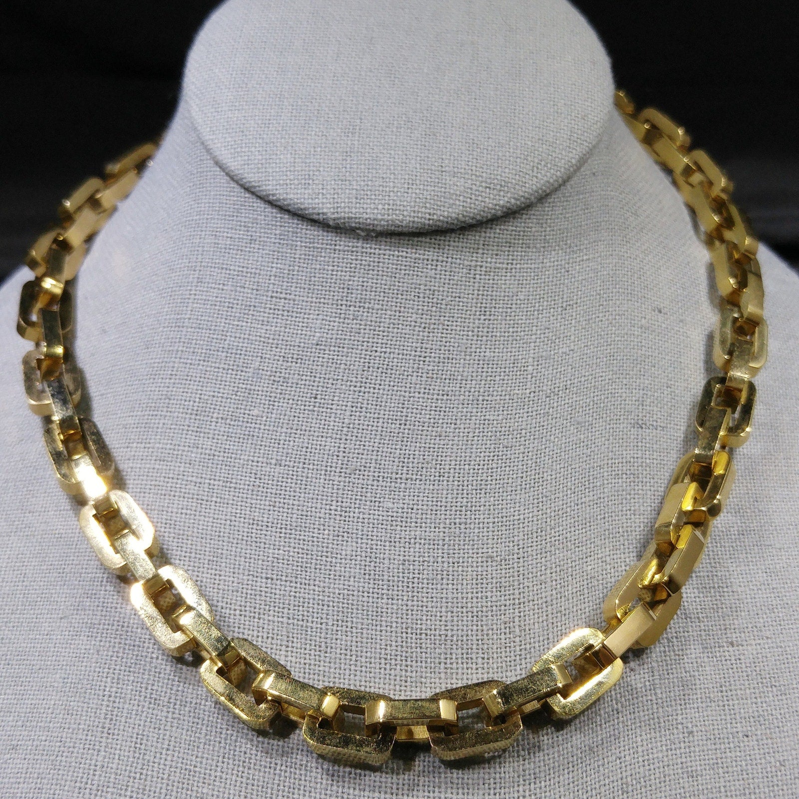 *Description: This is a great designer necklace by Eddie Borgo which features a handmade, geometric gold plated chain and hidden clasp with a safety clasp on the side. This would be a great addition to your vintage jewelry collection or make a great vintage gift!