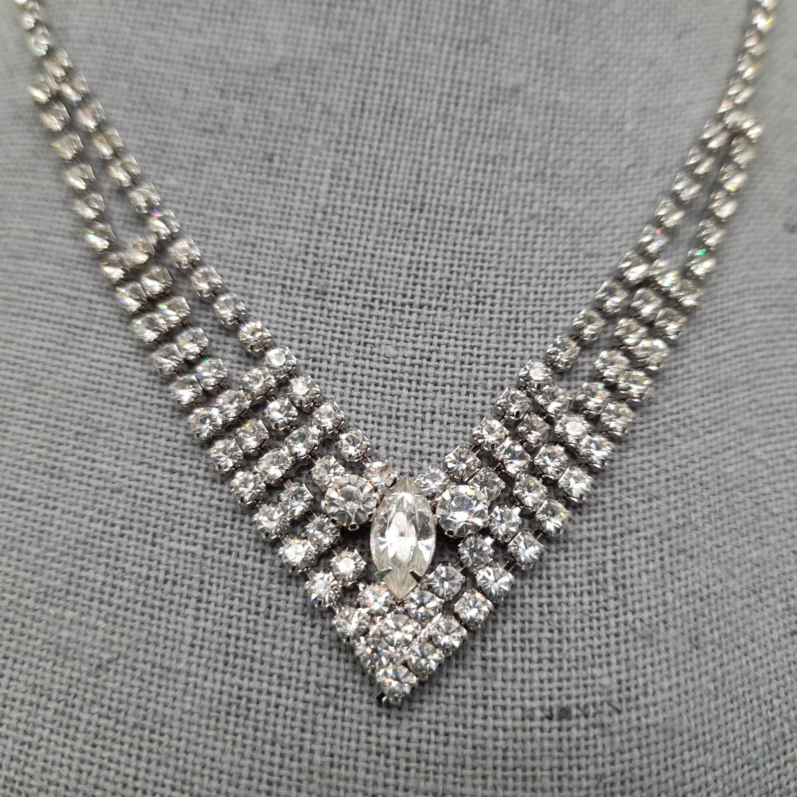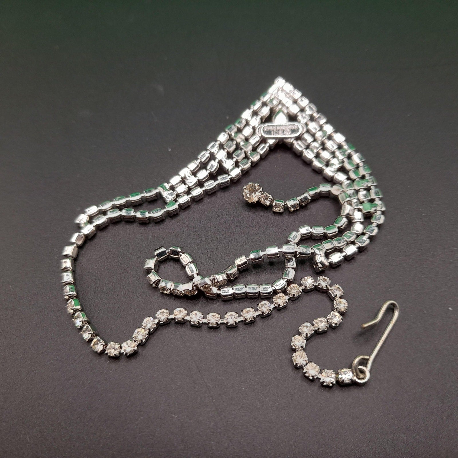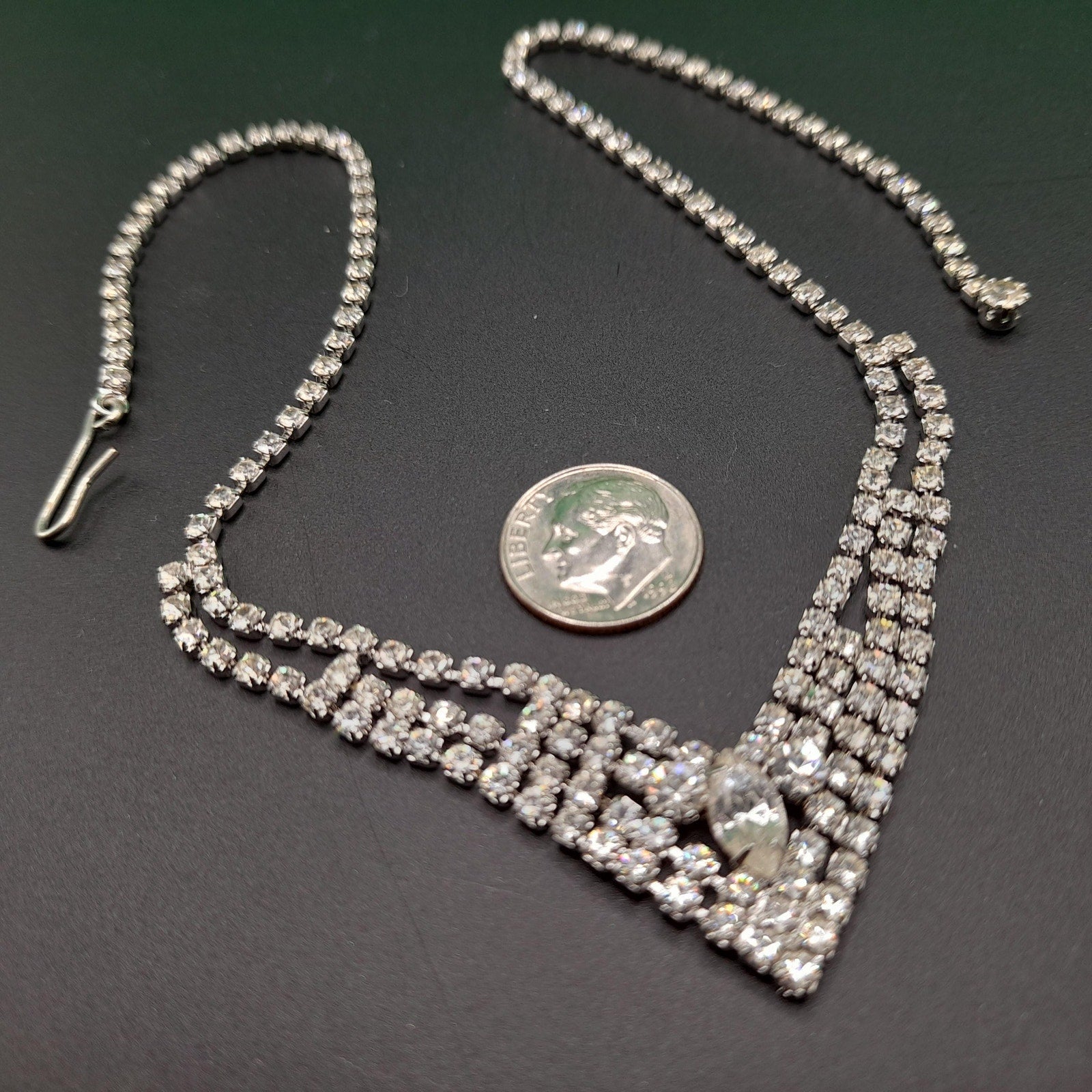 Eisenberg Ice Clear Rhinestone Necklace, Mid-Century Rhodium Plated, 1960s Vintage Jewelry