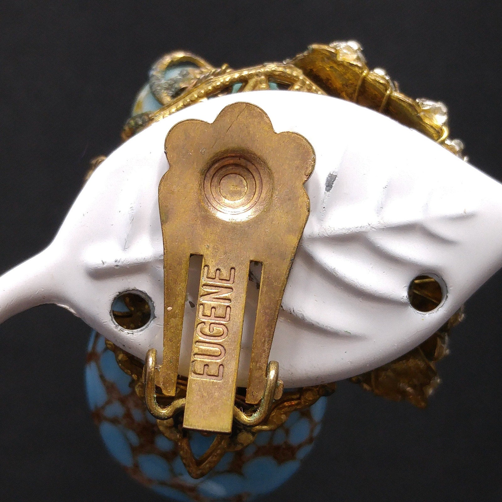 Eugene was in business from approximately 1952 to 1962. The founder of the company was Eugene Schultz who was born in 1911 and passed away in 1964. Eugene Schultz worked in different areas of design which include costume, greeting cards, and fashion. It was reported by his nephew that he had previously worked for Miriam Haskell. All of his pieces were his designs and hand-made by his company. His designs were featured in an accessories show ad from 1952. Eugene went out of business in 1962.
