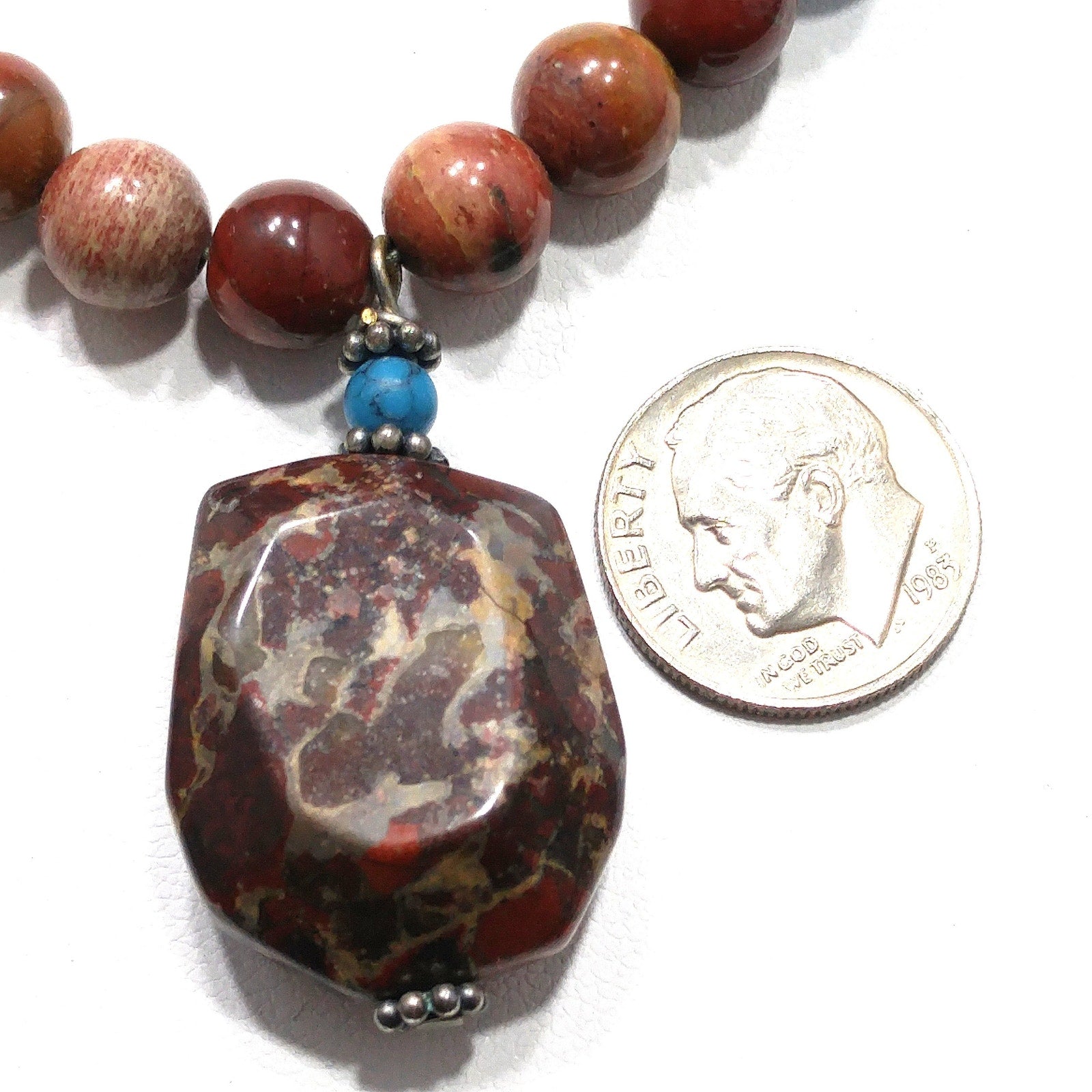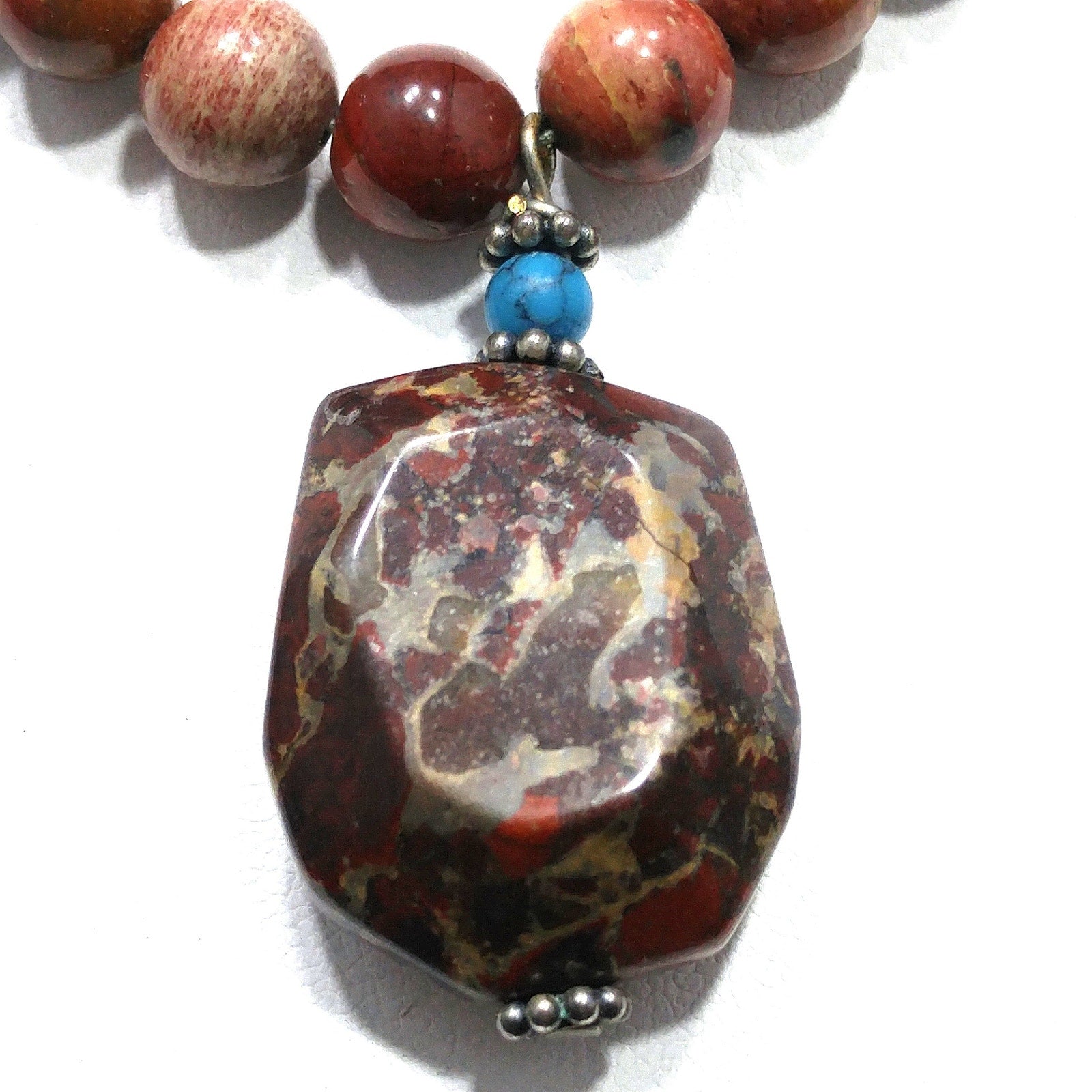 Gemstone Pendant Beaded Necklace, Red Jasper, 1980s Vintage Jewelry