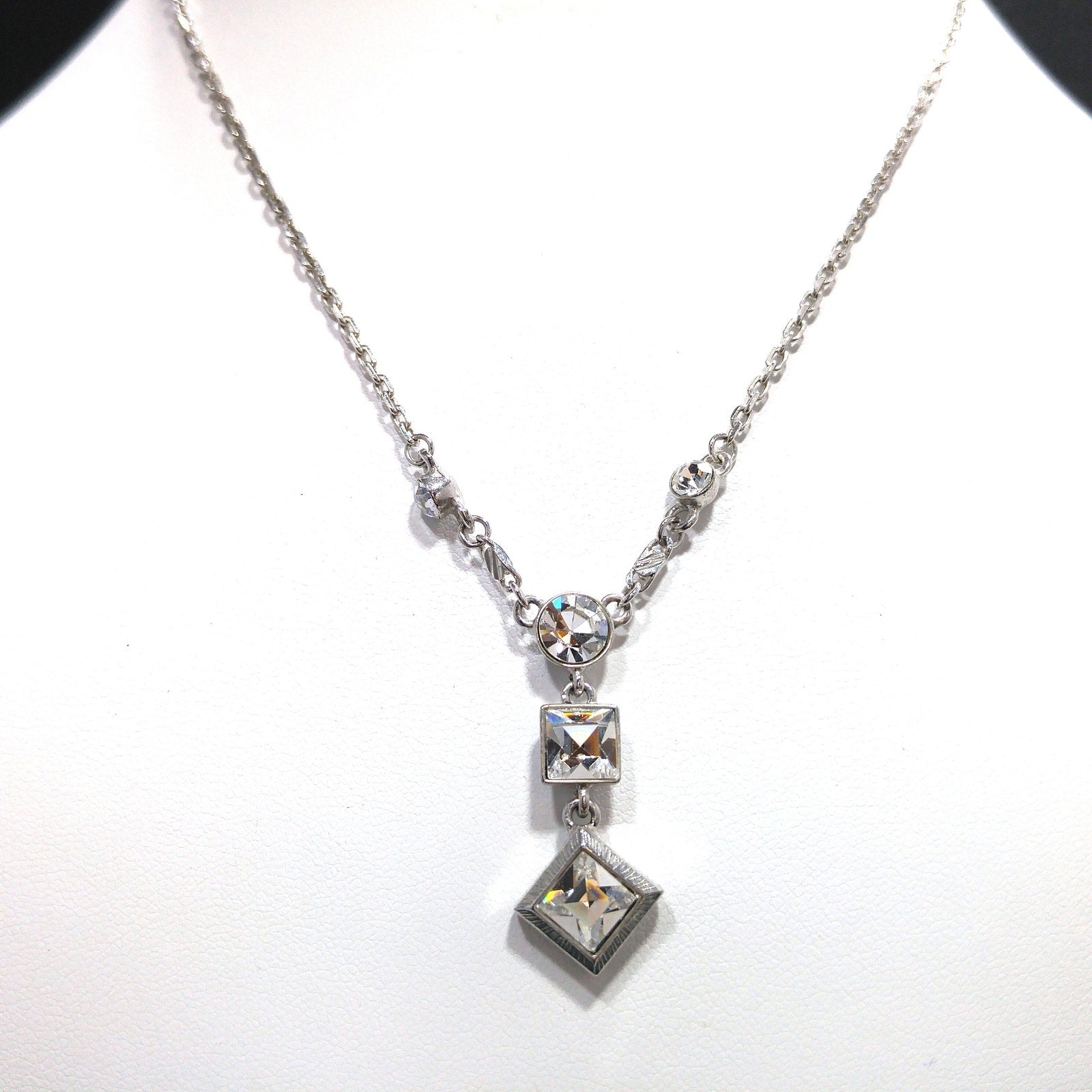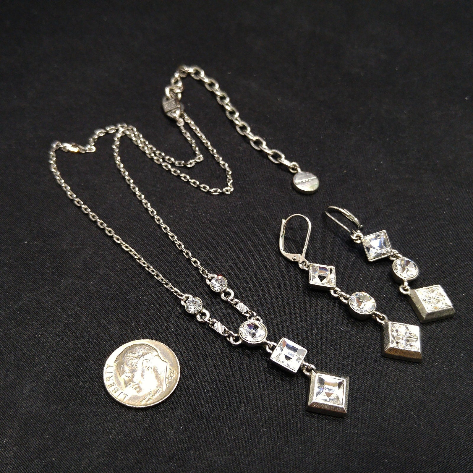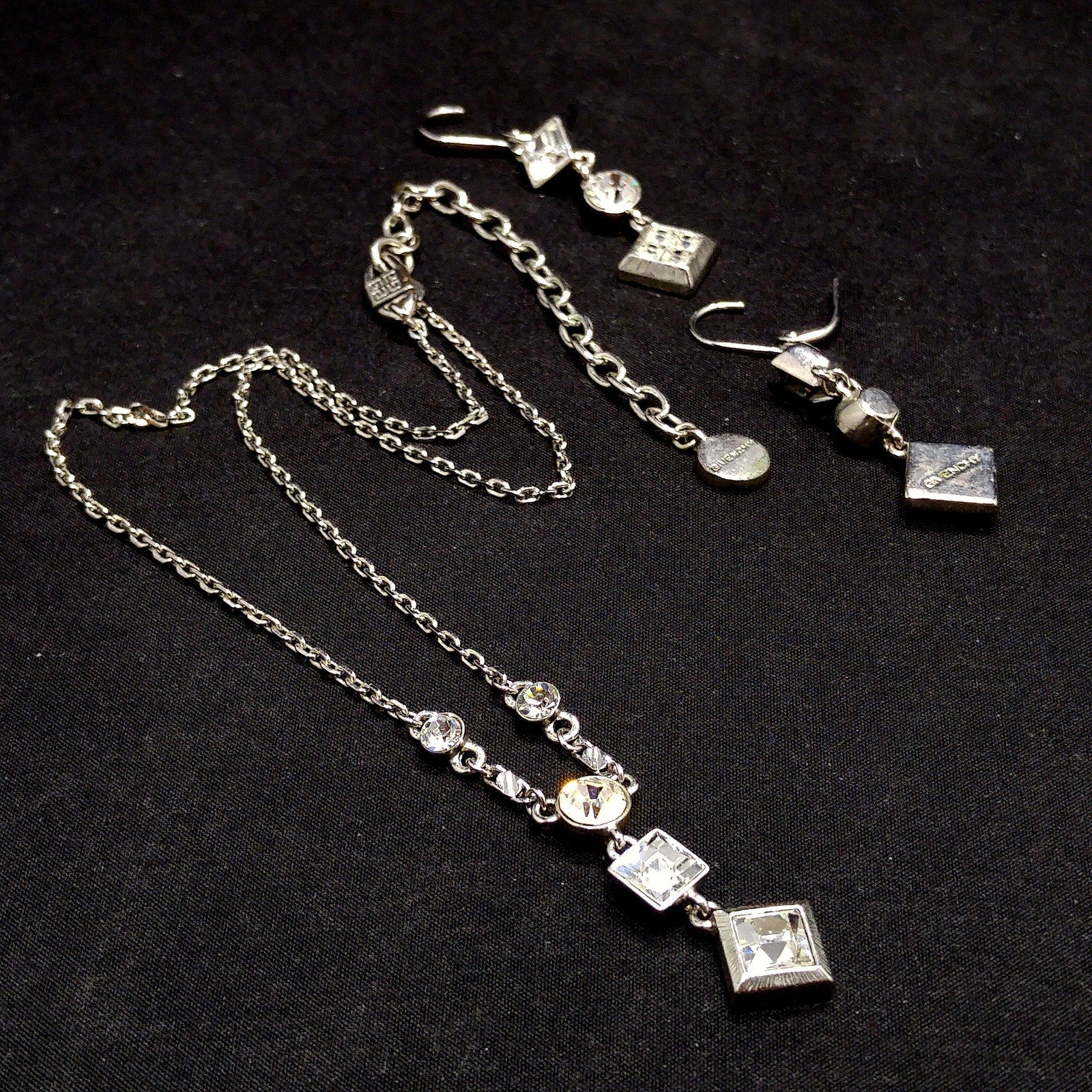 Givenchy 1990s Jewelry Set, Necklace & Earrings, Clear Rhinestones, Rhodium Plated