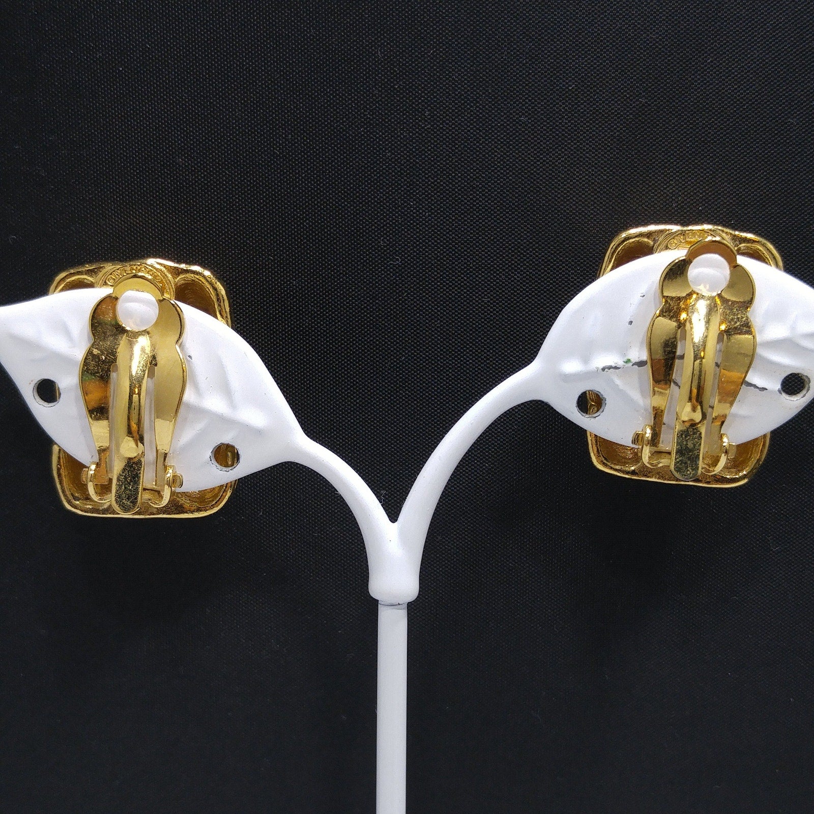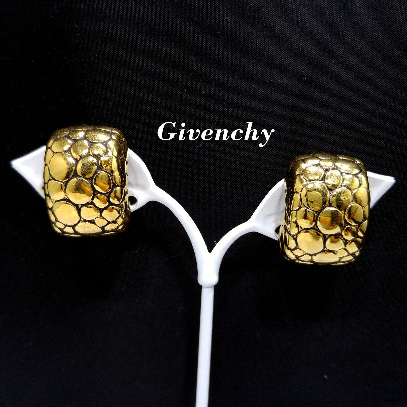 *Description: This is a gorgeous pair of Givenchy gold plated clip on earrings with snake skin design and black enamel in the creases from the 1980s. This would be a great addition to your vintage jewelry collection or make a great vintage gift!