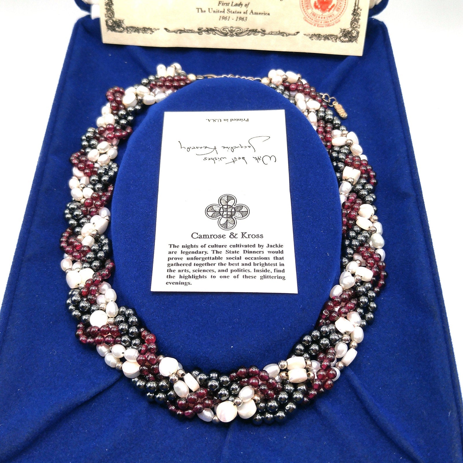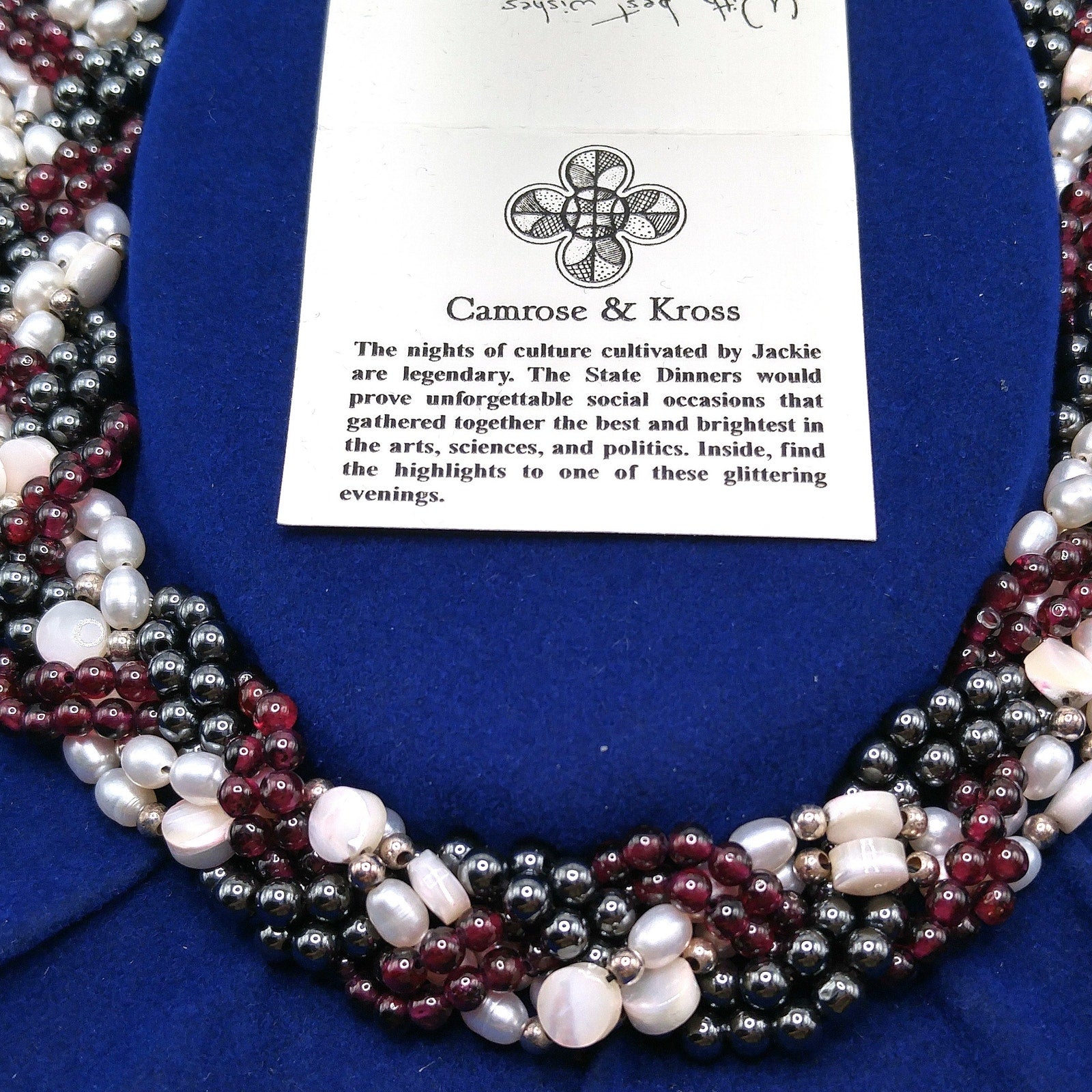 Jackie Kennedy Replica Necklace – Camrose & Kross JBK Garnet Pearl Hematite, 1990s