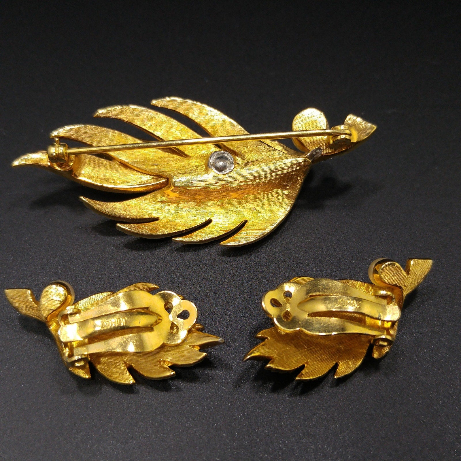 • Style: Leaf motif demi-parure (brooch + earrings)