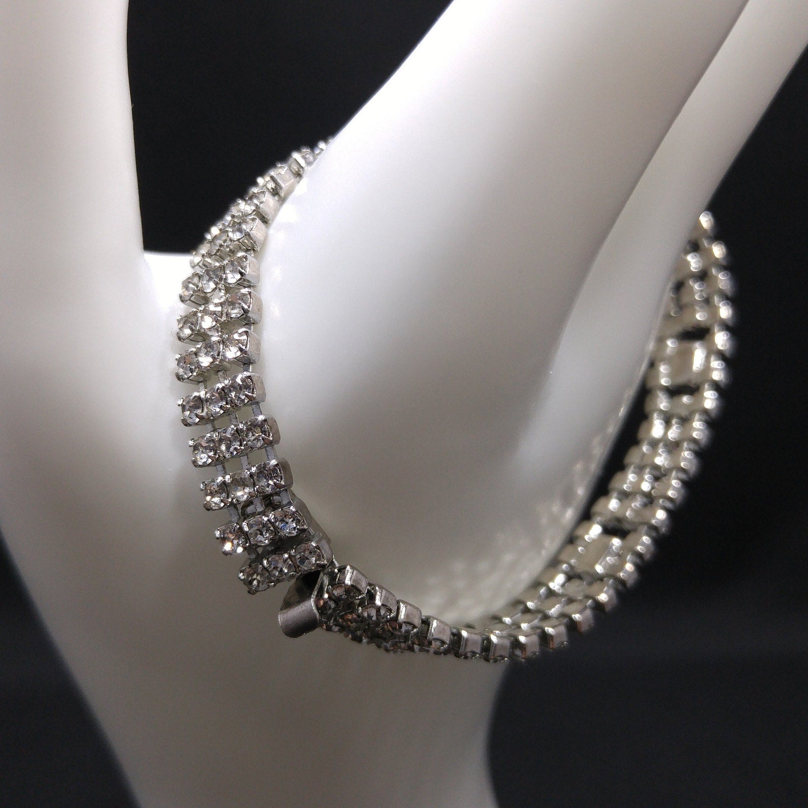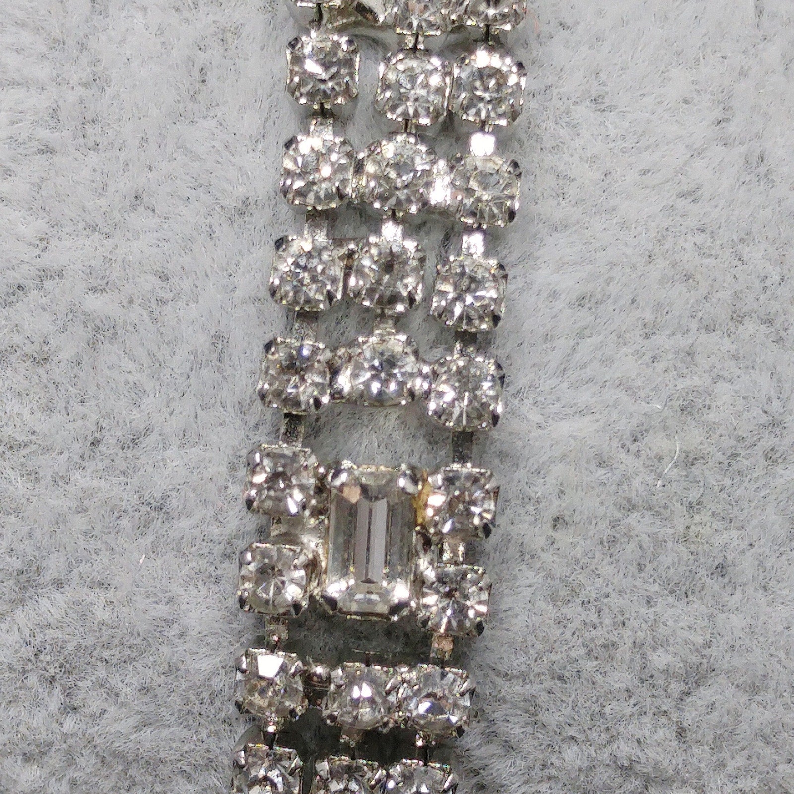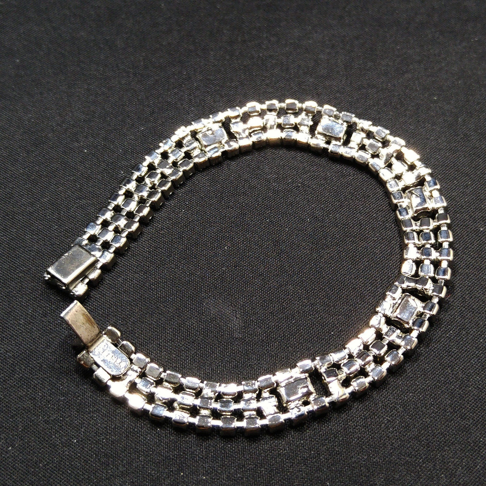 Kramer Clear Rhinestone Bracelet, Rhodium Plated, 1950s Vintage Jewelry
