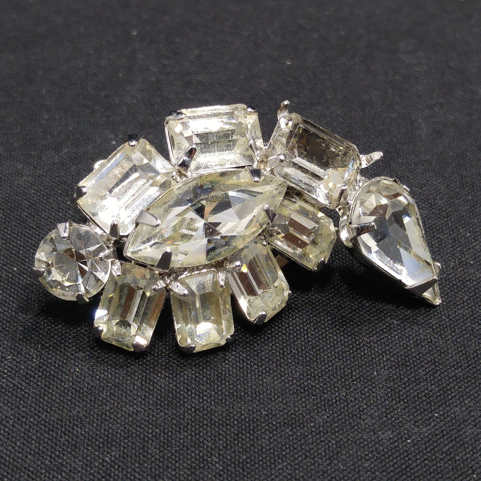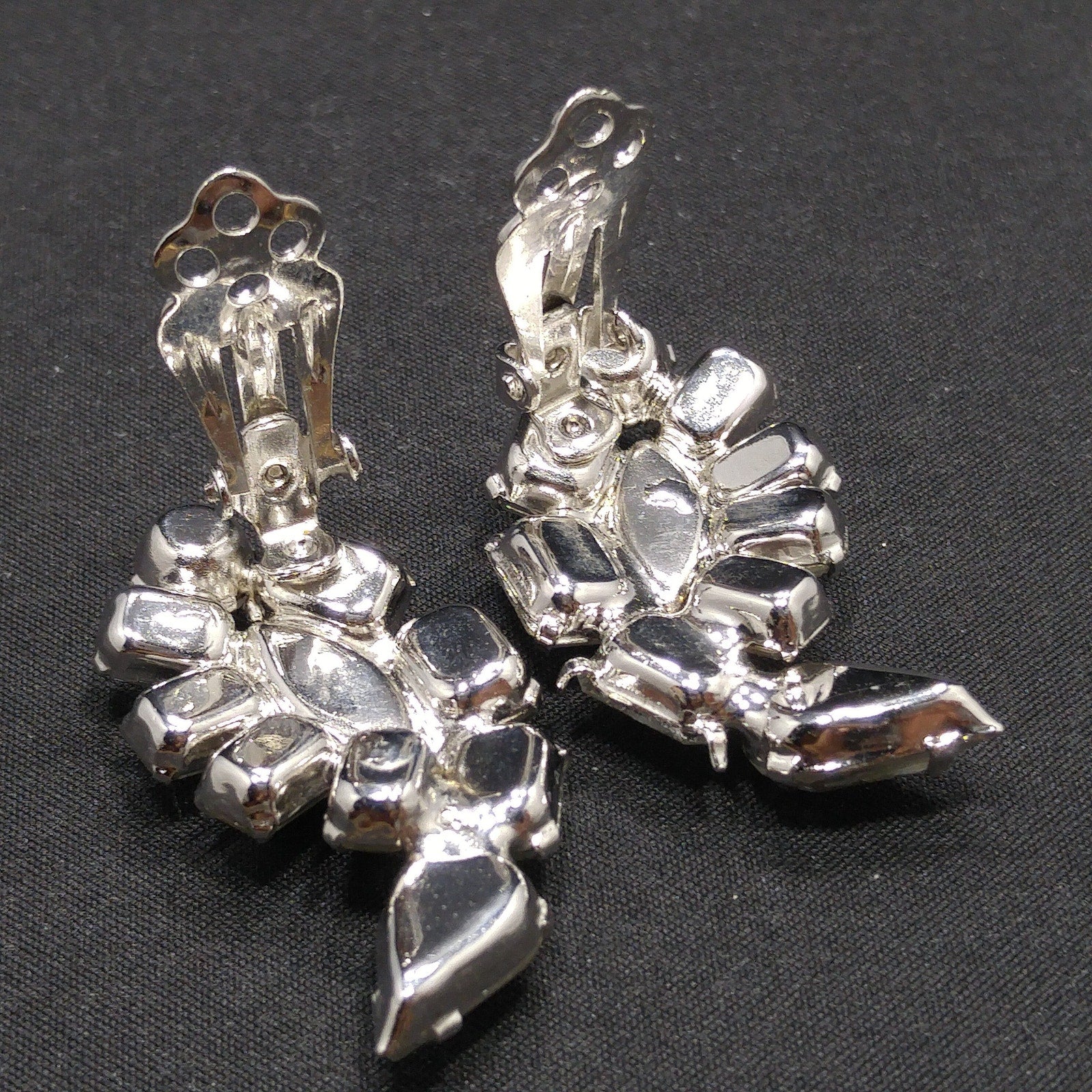 Kramer Clear Rhinestone Clip Earrings, Rhodium Plated, Wedding Earrings, 1950s Vintage Jewelry