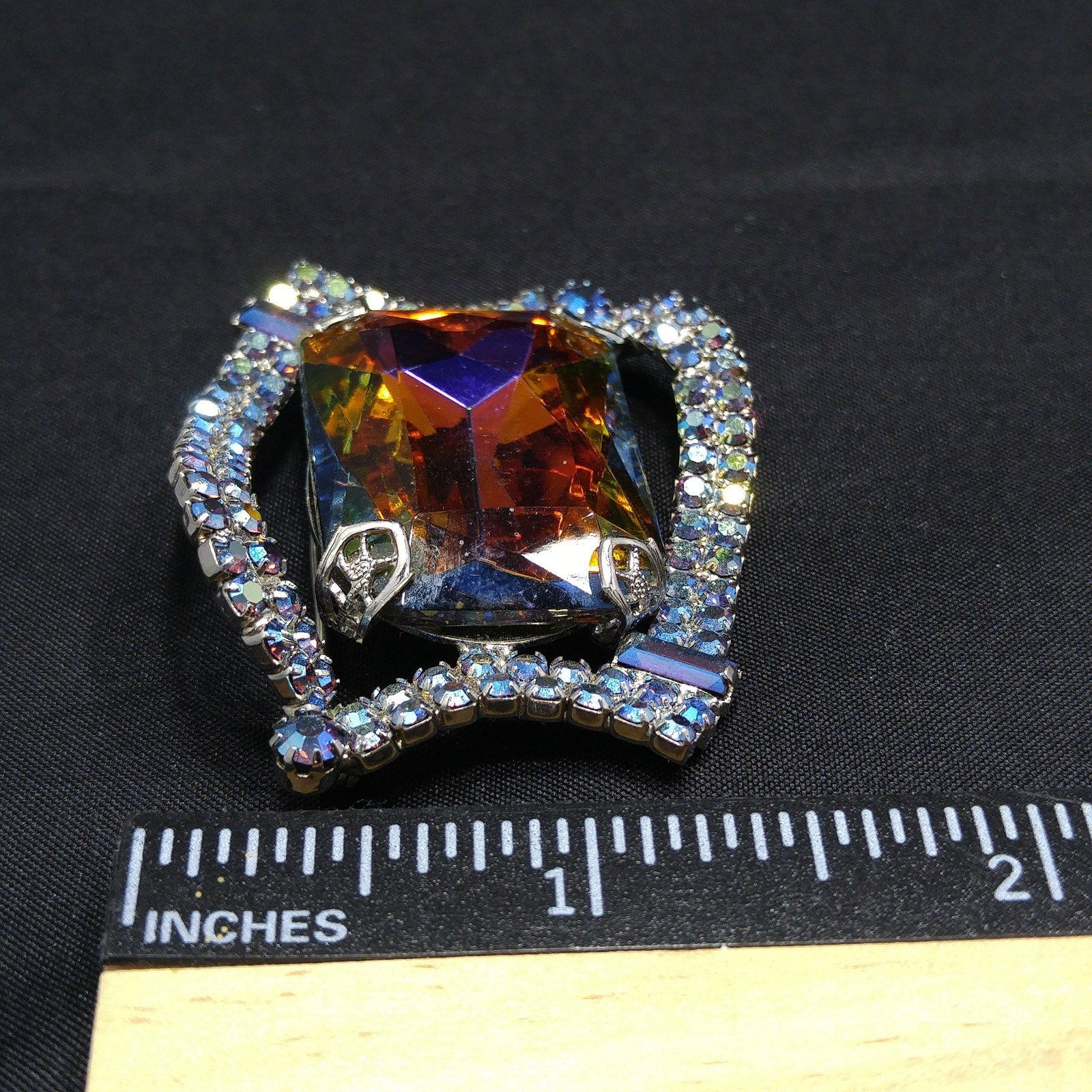 *Approximate Measurements: Length - 1 5/8 Inches, Width - 2 Inches, Weight - .7 Ounce, Center Glass Stone Size - 30mm by 22 mm