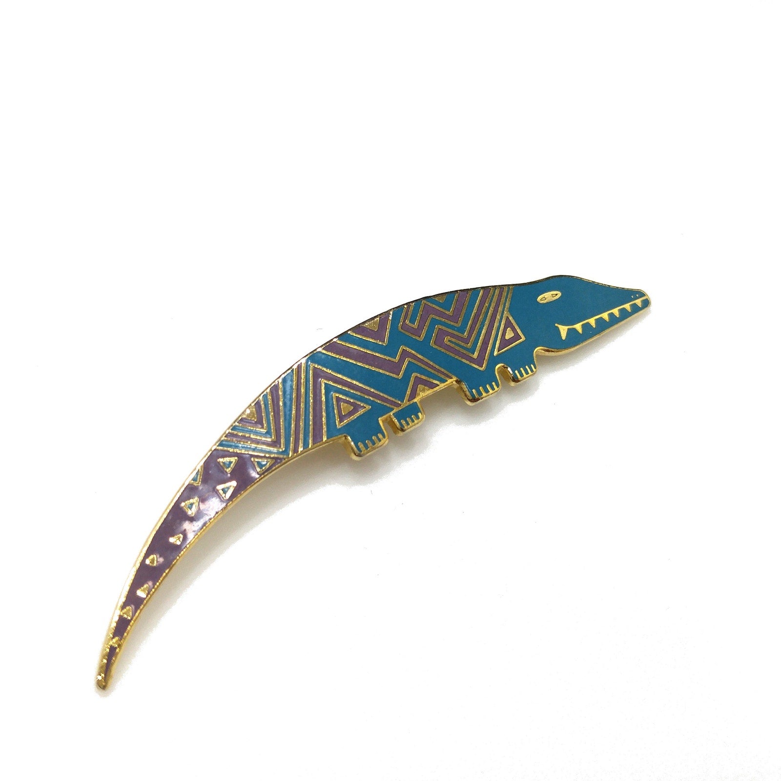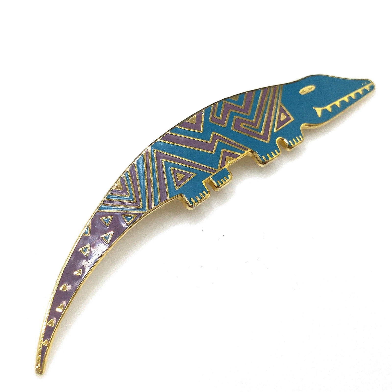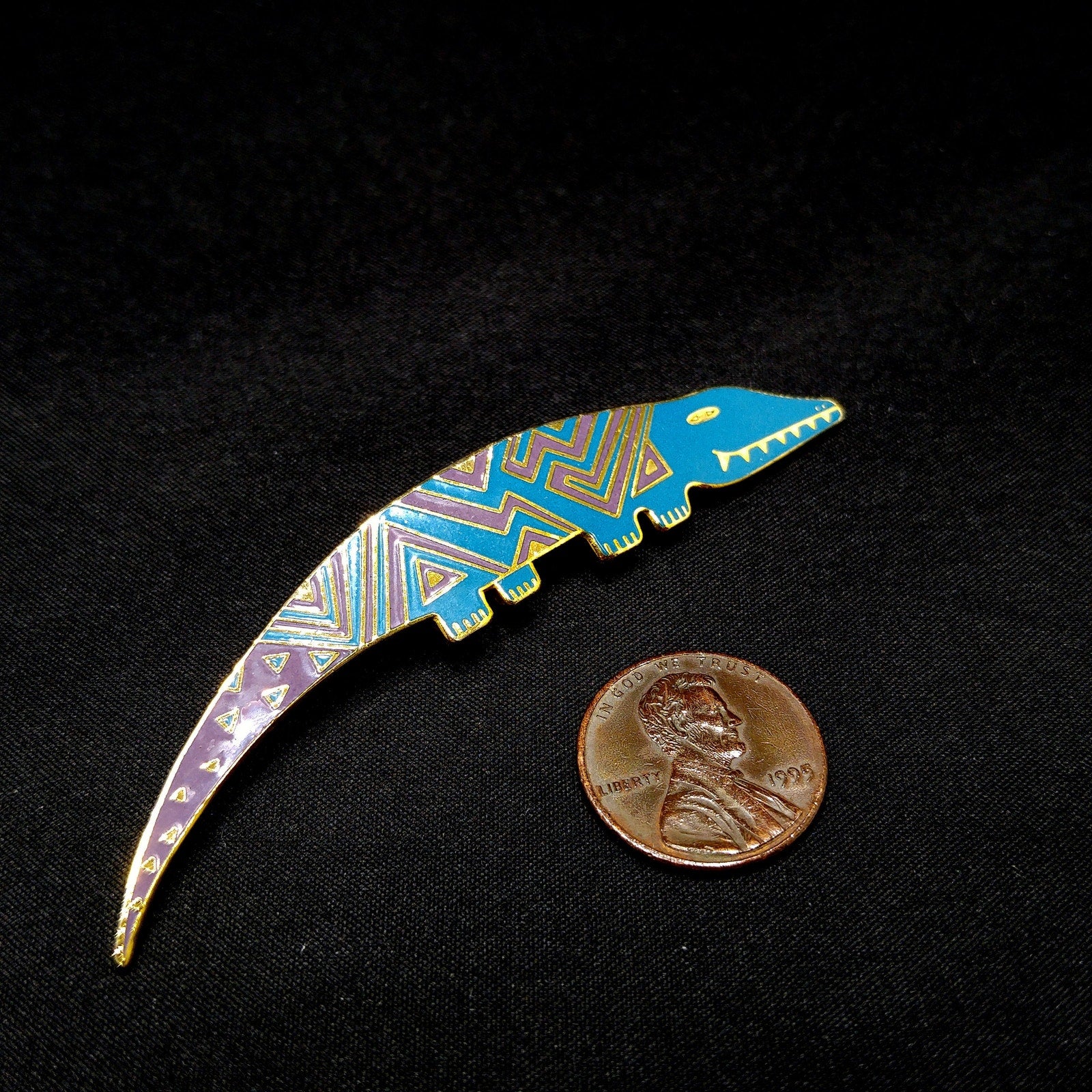 Laurel Burch "Aleucian Alligator" Brooch, Gold Plated Cloisonné Enamel, 1980s Vintage Jewelry