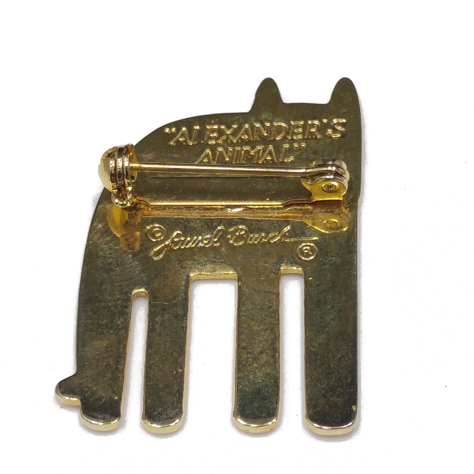 Laurel Burch "Alexander's Animal" Cat Brooch, Pastel Enamel, Gold Plated, 1980s Vintage Jewelry