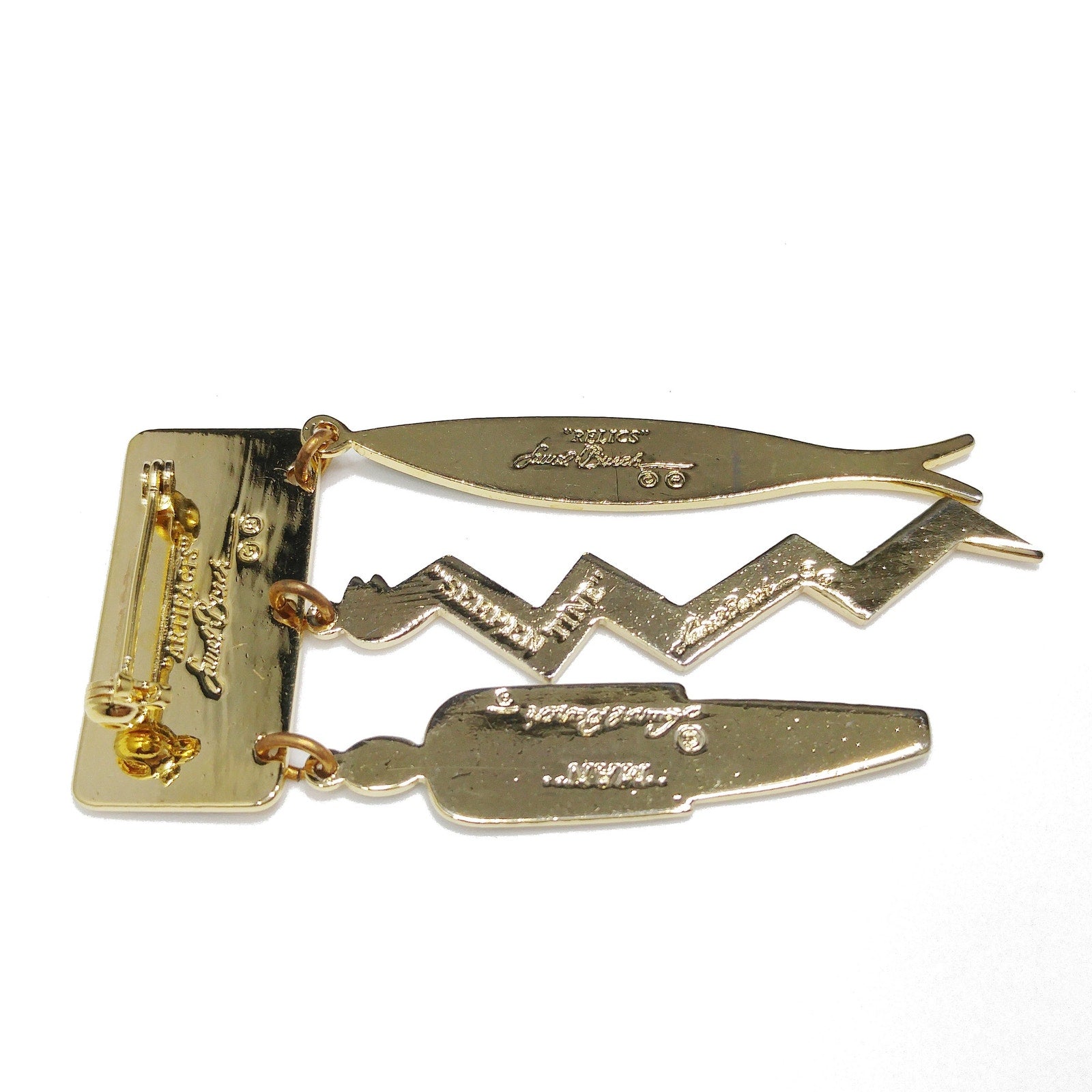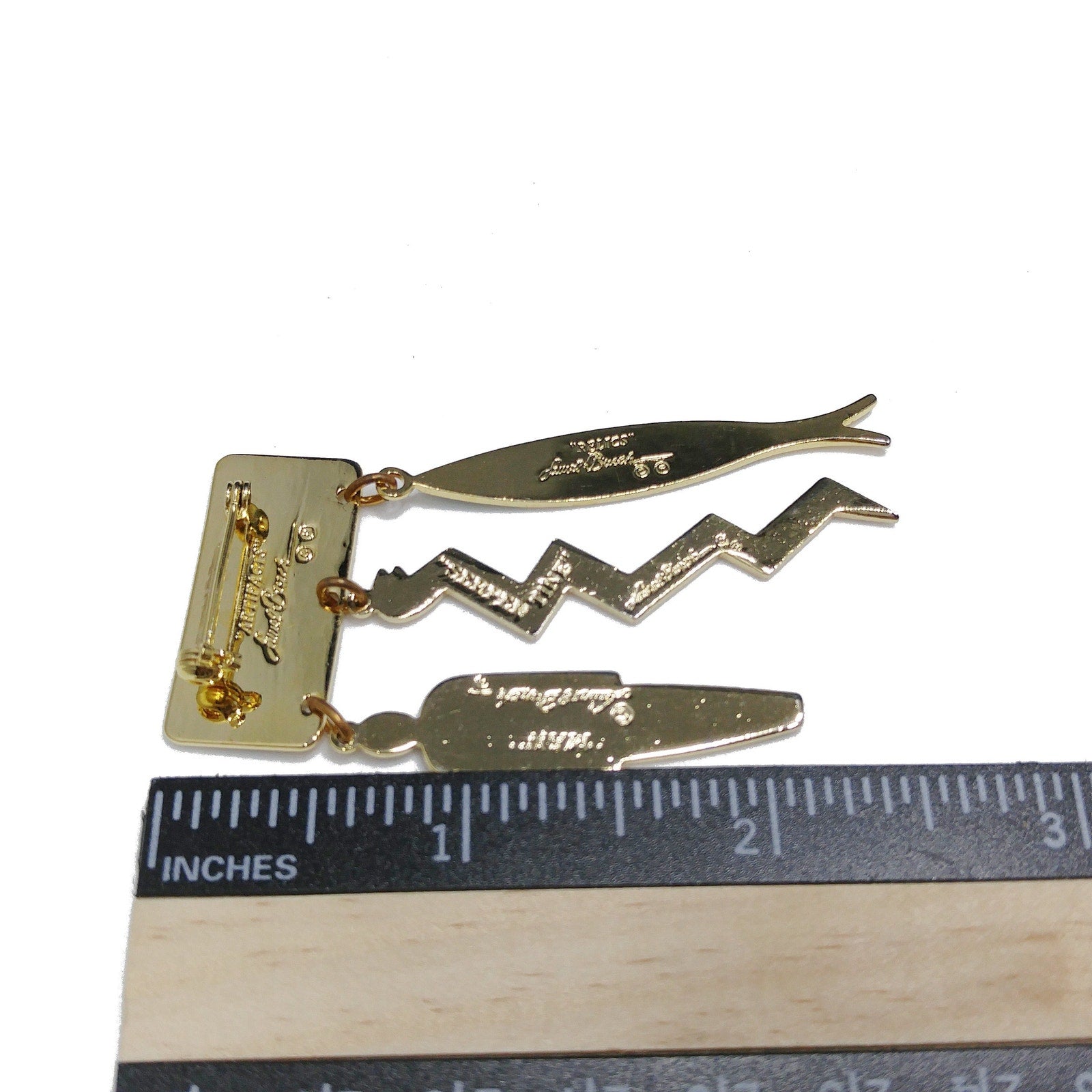 Laurel Burch "Artifacts" Brooch, Fish Snake Man, Gold Plated, 1980s Vintage Jewelry