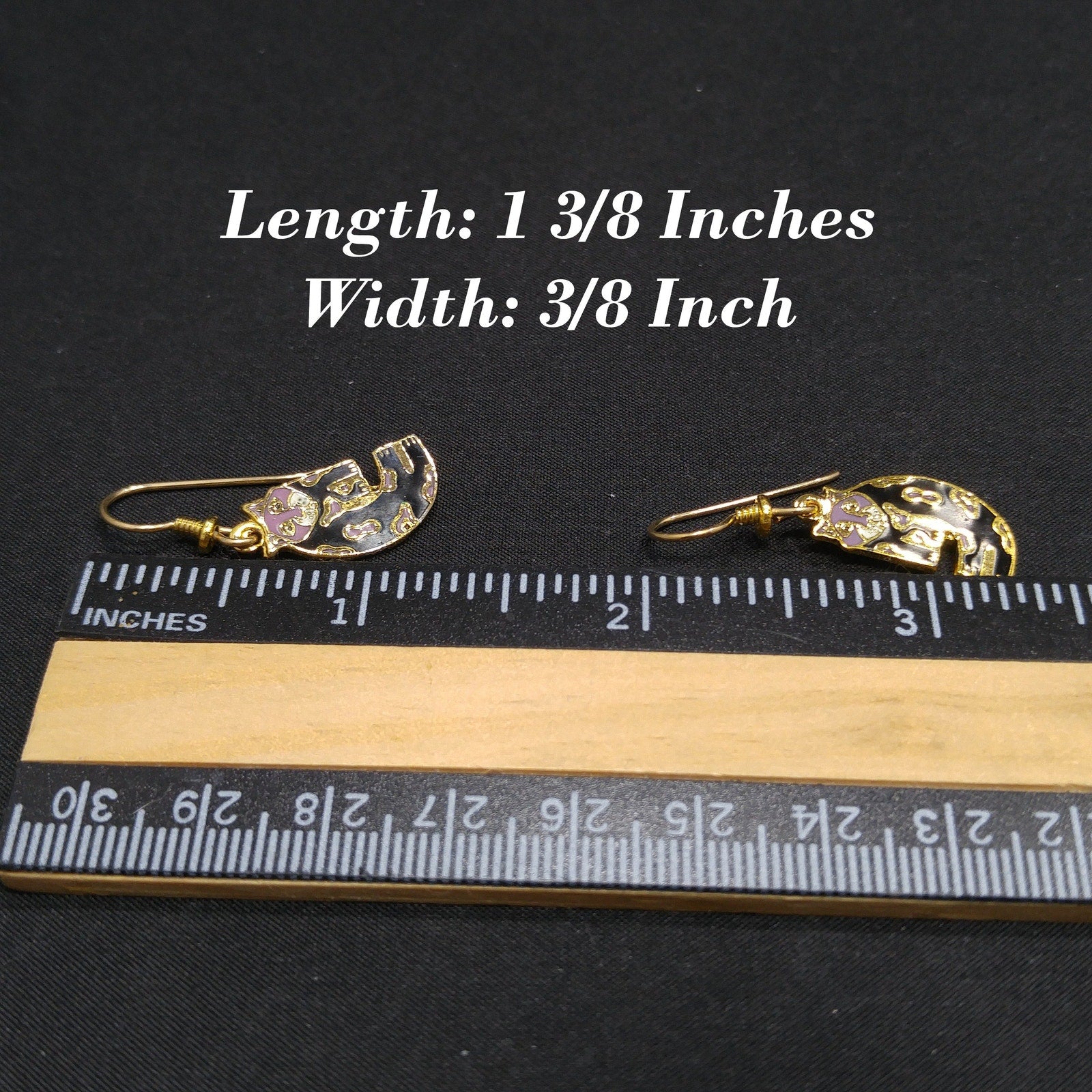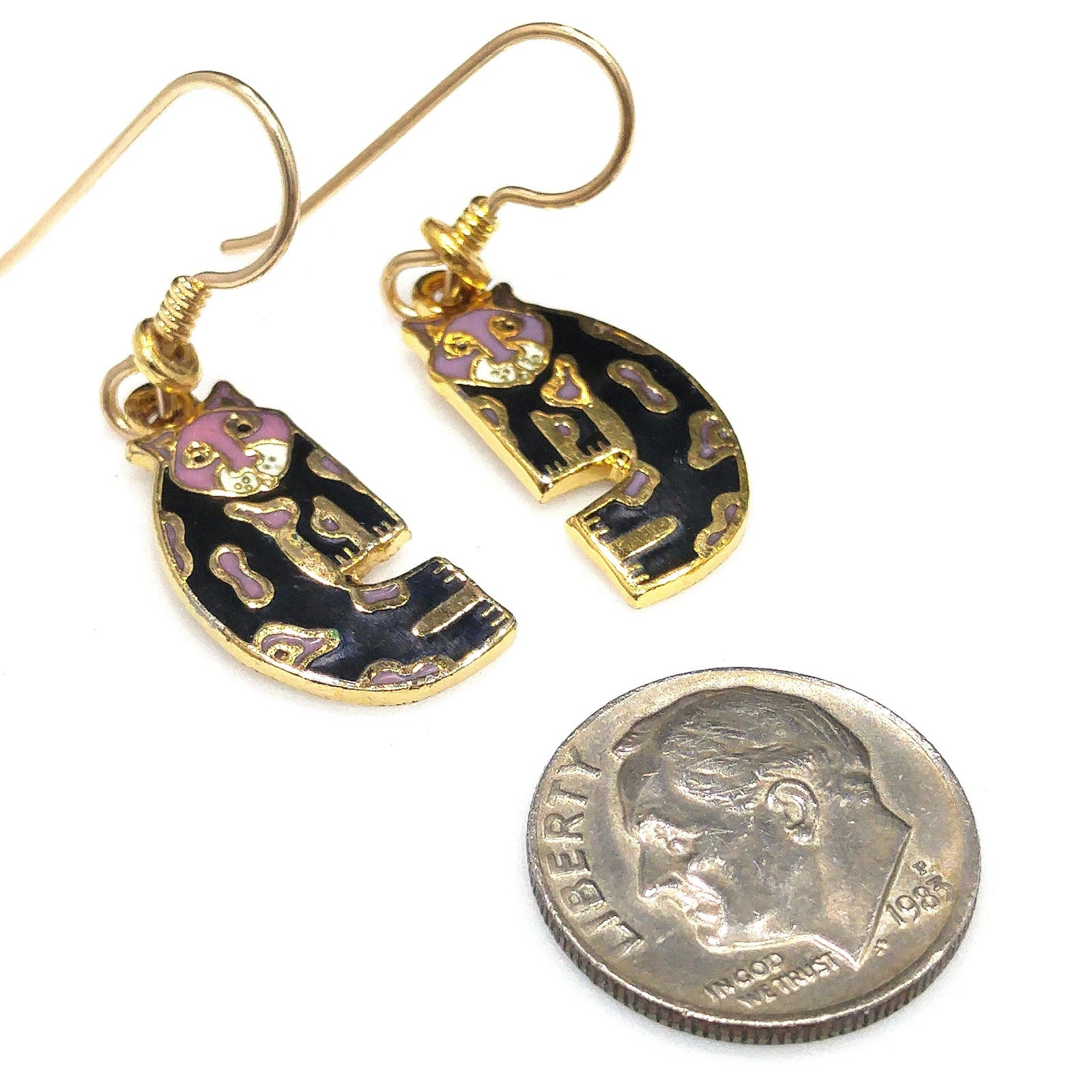 Laurel Burch Baby Snow Leopard Earrings, Cloisonne Black Enamel, Gold Plated, 1980s Vintage Jewelry
