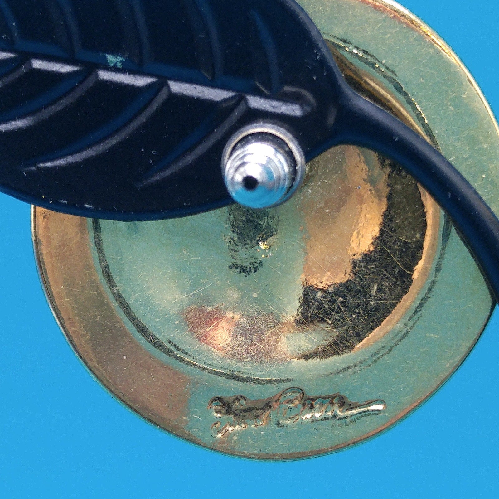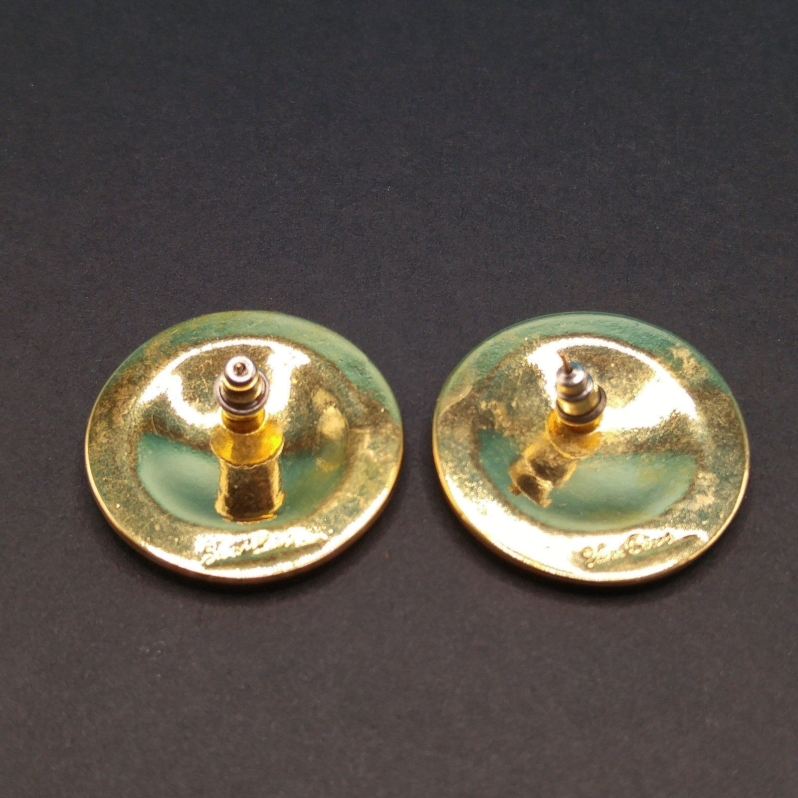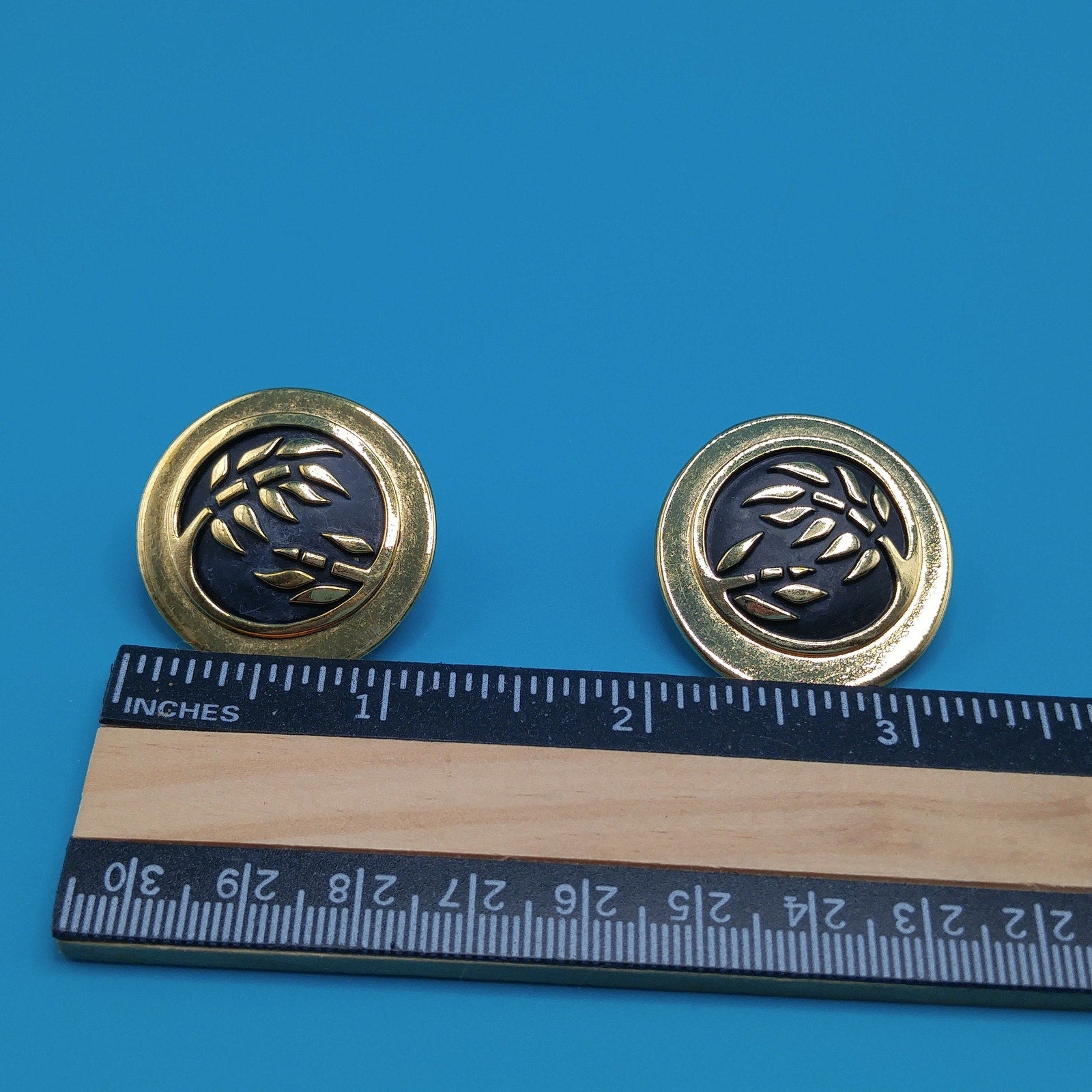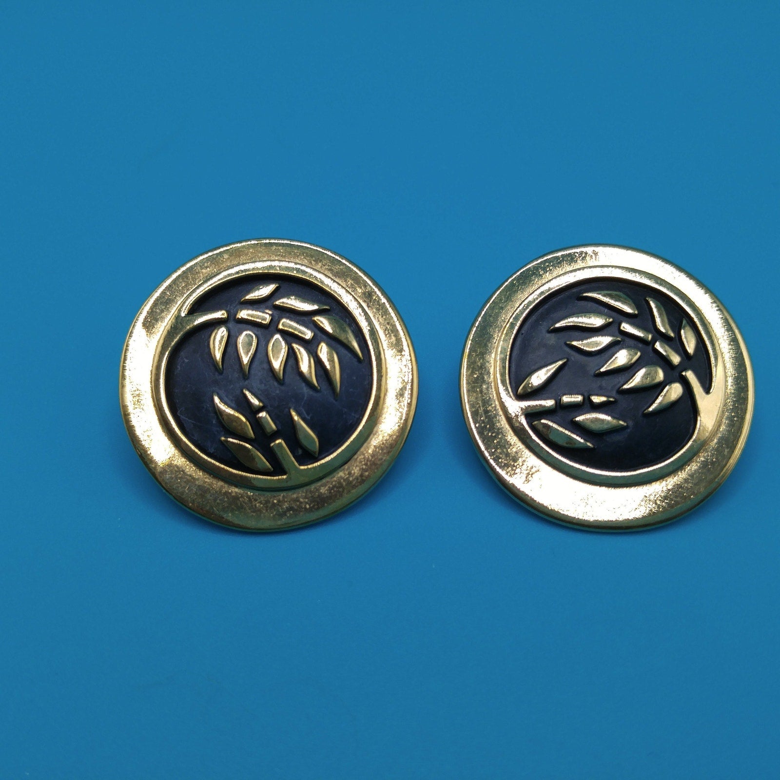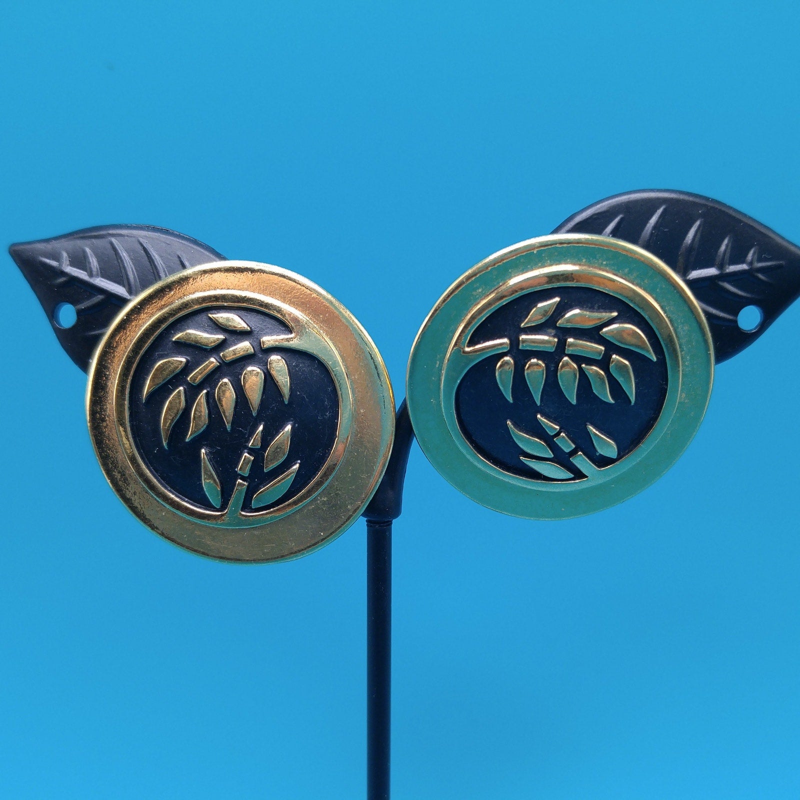*Description: This is a beautiful pair of Laurel Burch large post bamboo earrings, slightly raised center, black enamel, gold plated cloisonne finish from the 1980s. Posts are gold filled. Both earrings are stamped Laurel Burch on the back. This would be a great addition to your vintage jewelry collection or make a great vintage gift!