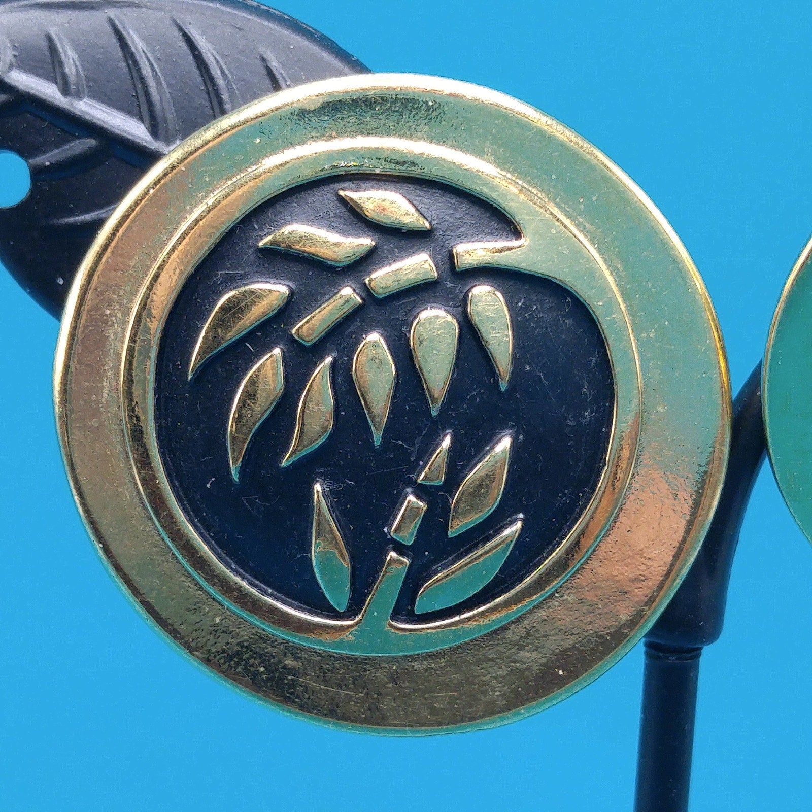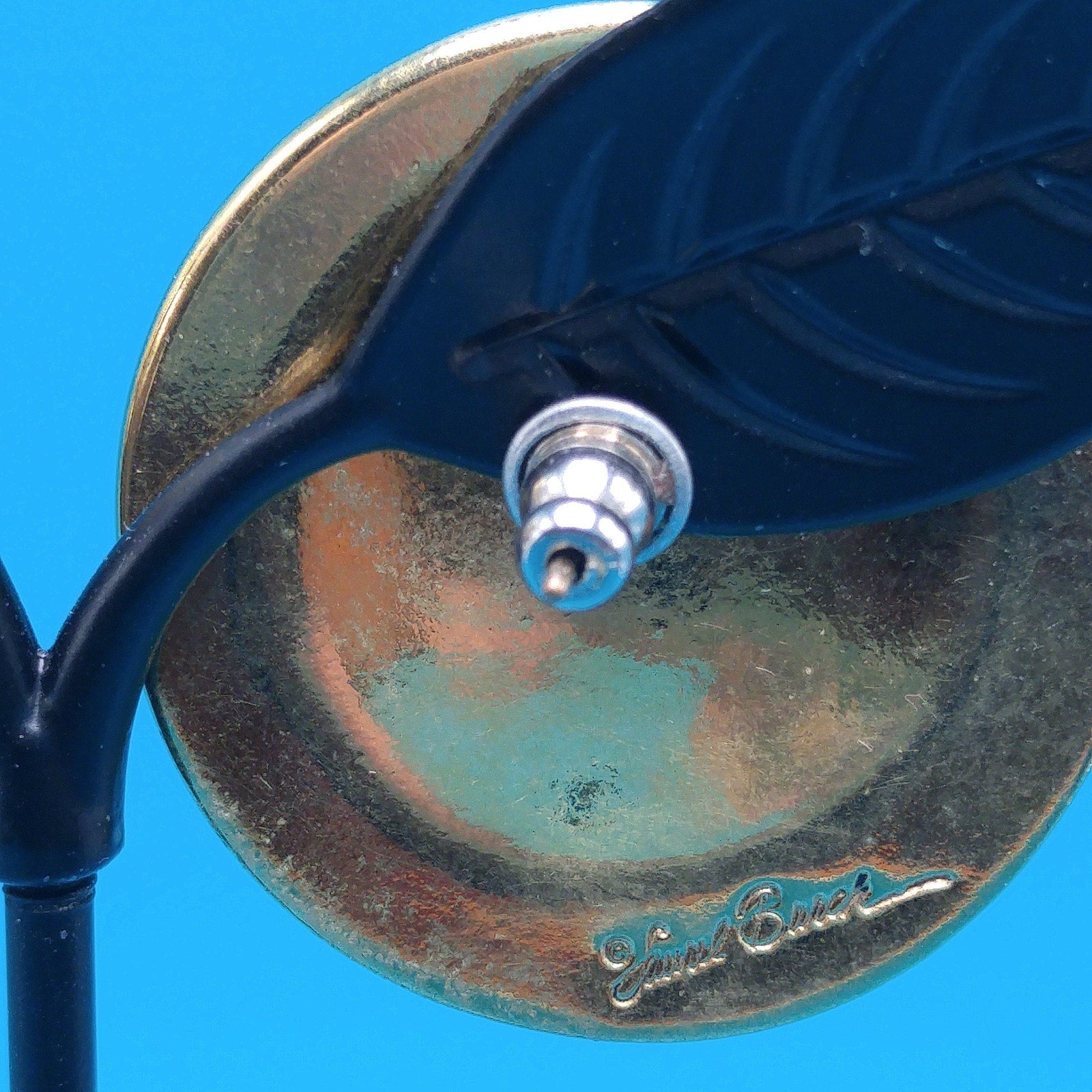 Laurel Burch Bamboo Large Post Earrings, Black Enamel, Gold Plated, 1980s Vintage Jewelry
