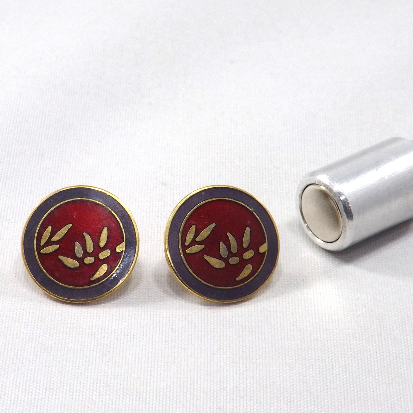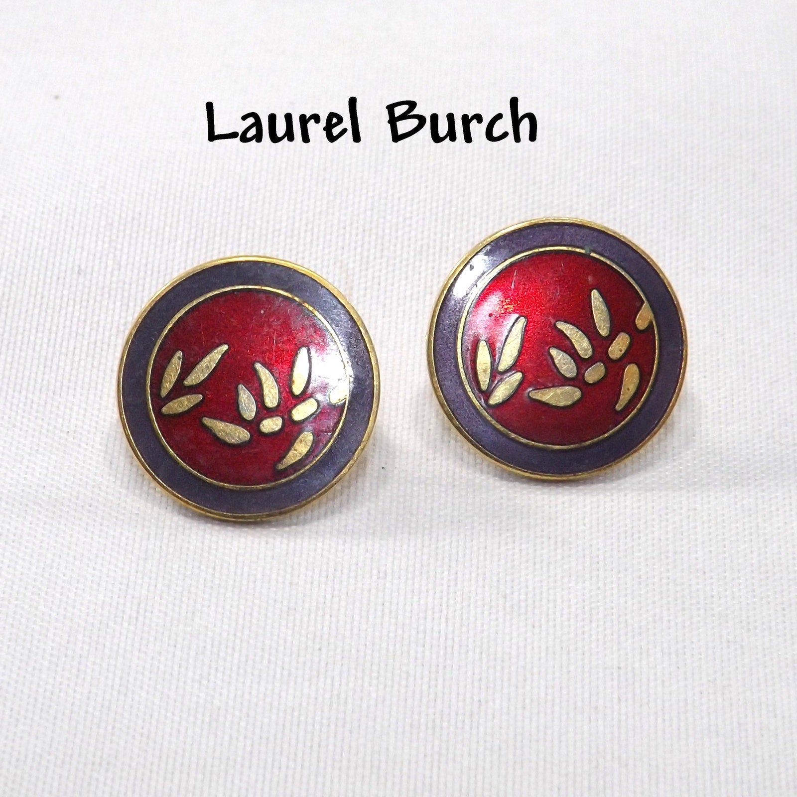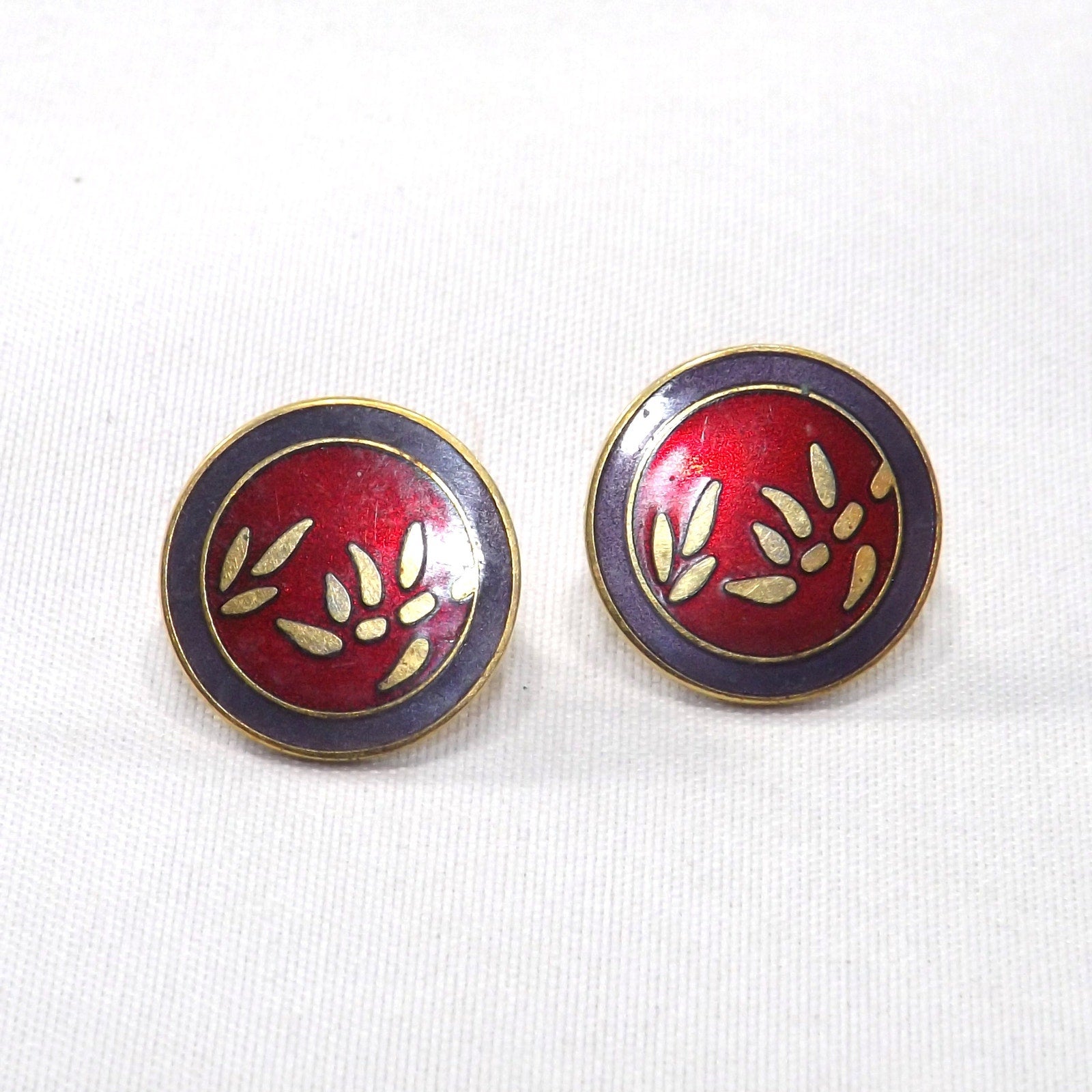*Description: This is a great pair of Laurel Burch earrings using her bamboo design on a pair of post earrings. The cloisonné technique is used with gold plating and filled in with enamel in red and purple. The bamboo is also in gold. Laurel Burch always used gold filled posts and ear wires. This pair has been a very loved pair and the backs show signs of wear however the front looks to be in great vintage condition. They are a great pair of Laurel Burch post earrings.