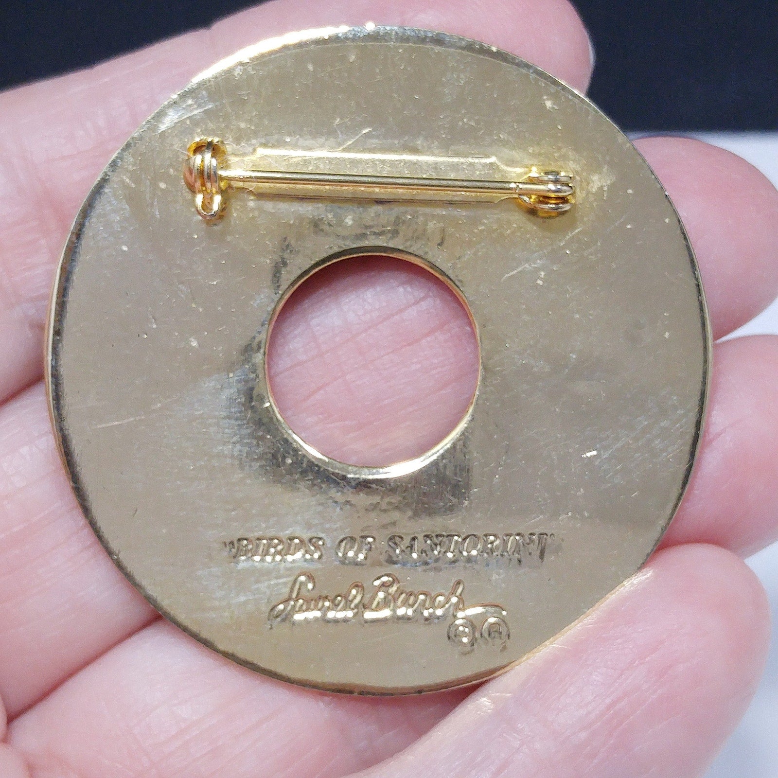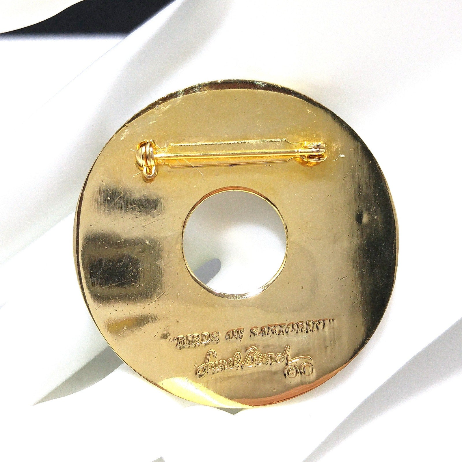 Laurel Burch "Birds of Santorini" Brooch, Cloisonné & Enamel, 1980s Vintage Jewelry