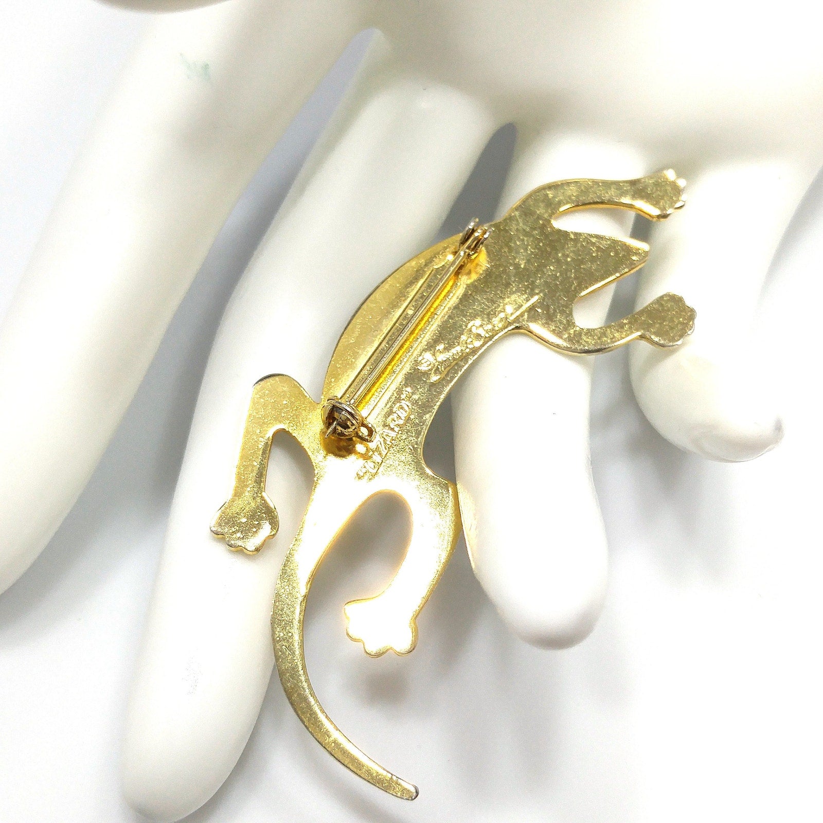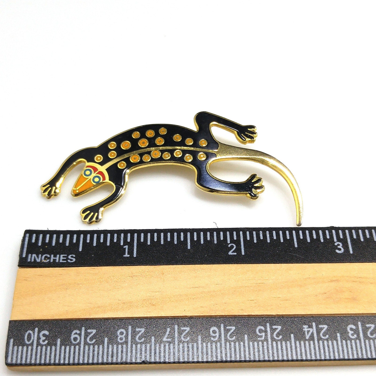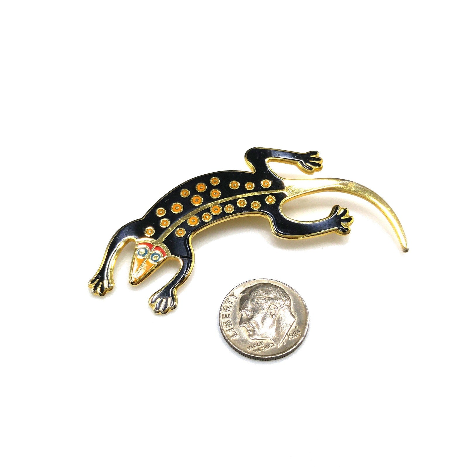 Laurel Burch Black "Lizard" Brooch, Gold Plated Cloisonne, 1980s Vintage Jewelry