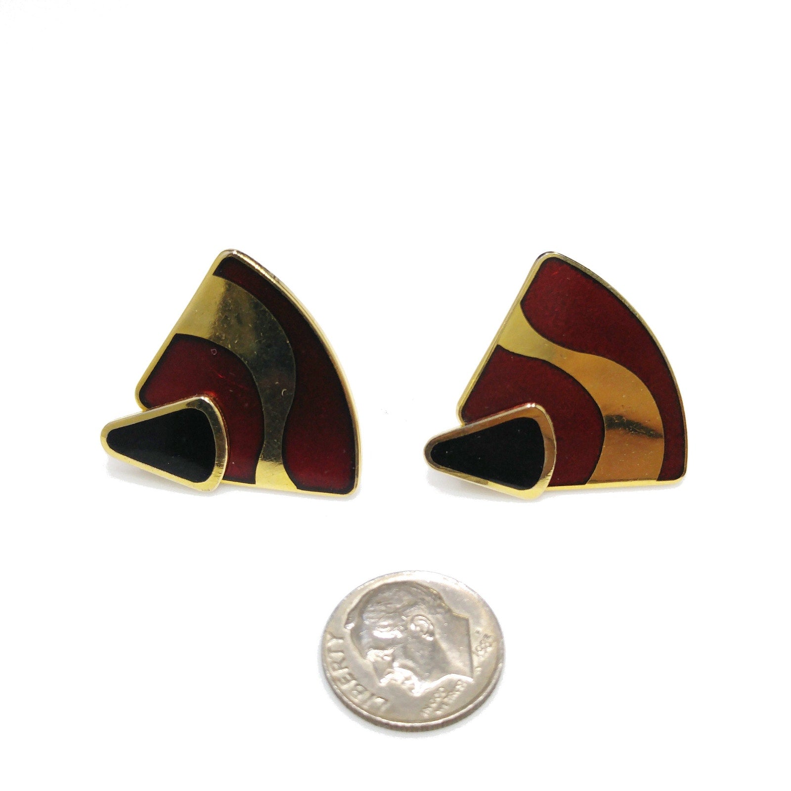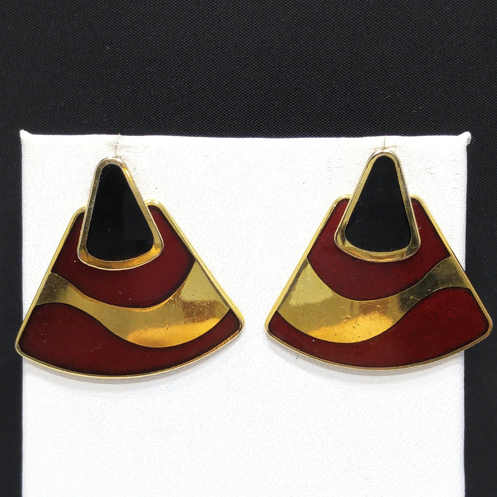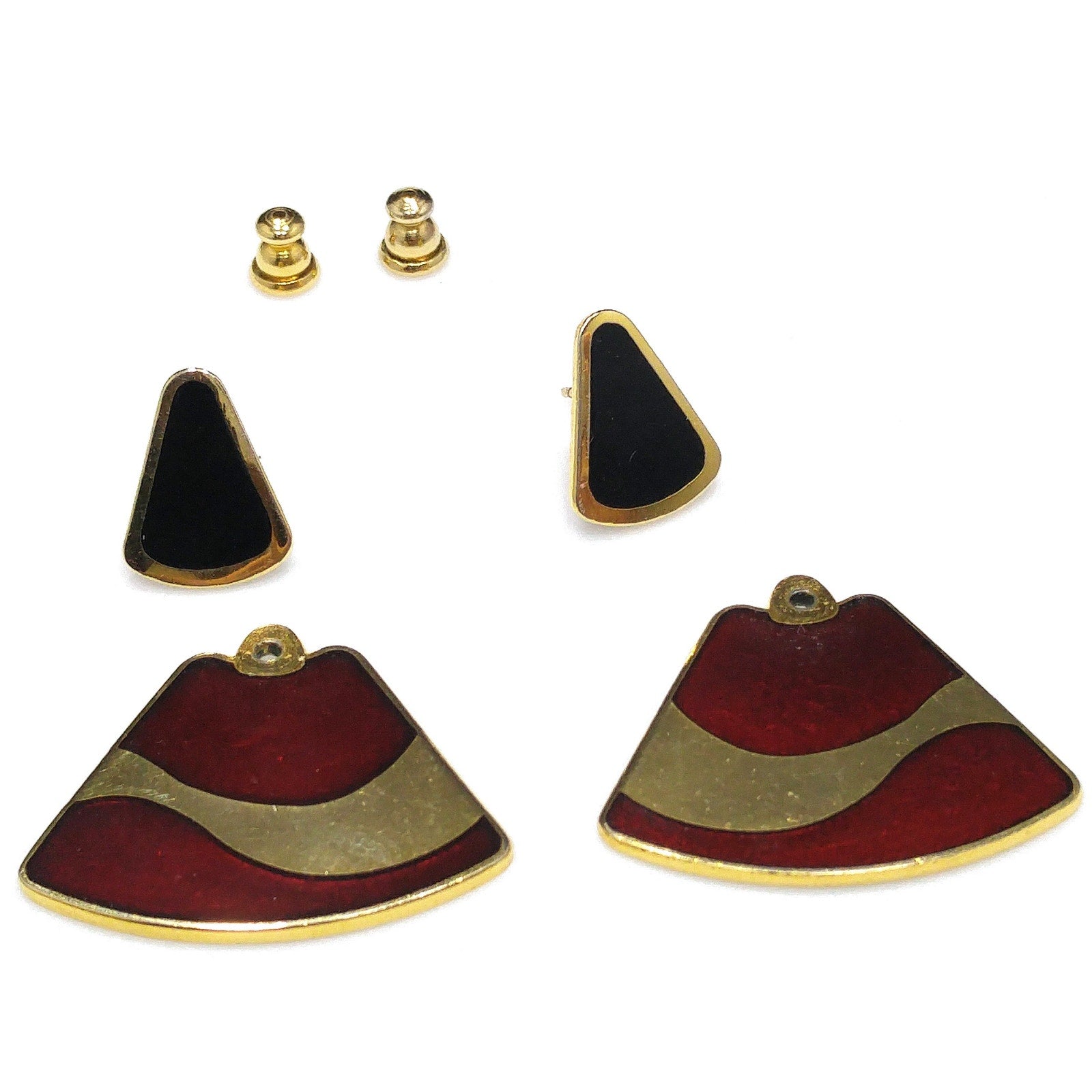Laurel Burch Black Red 2 in 1 Earrings, Gold Plated, 1980s Vintage Jewelry