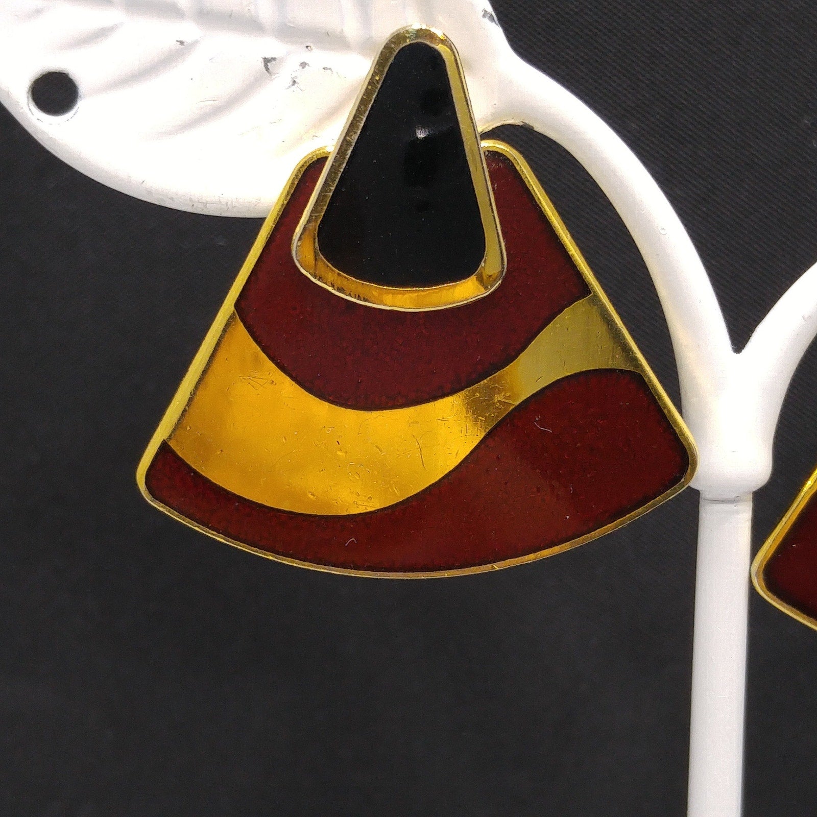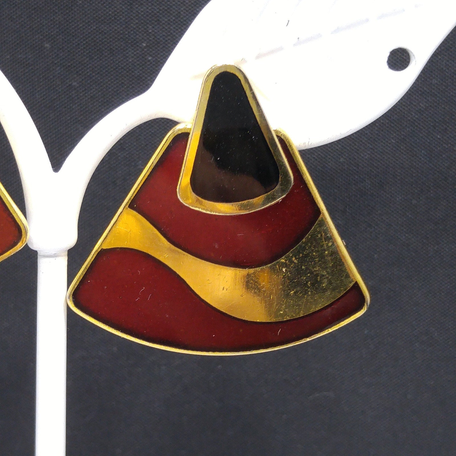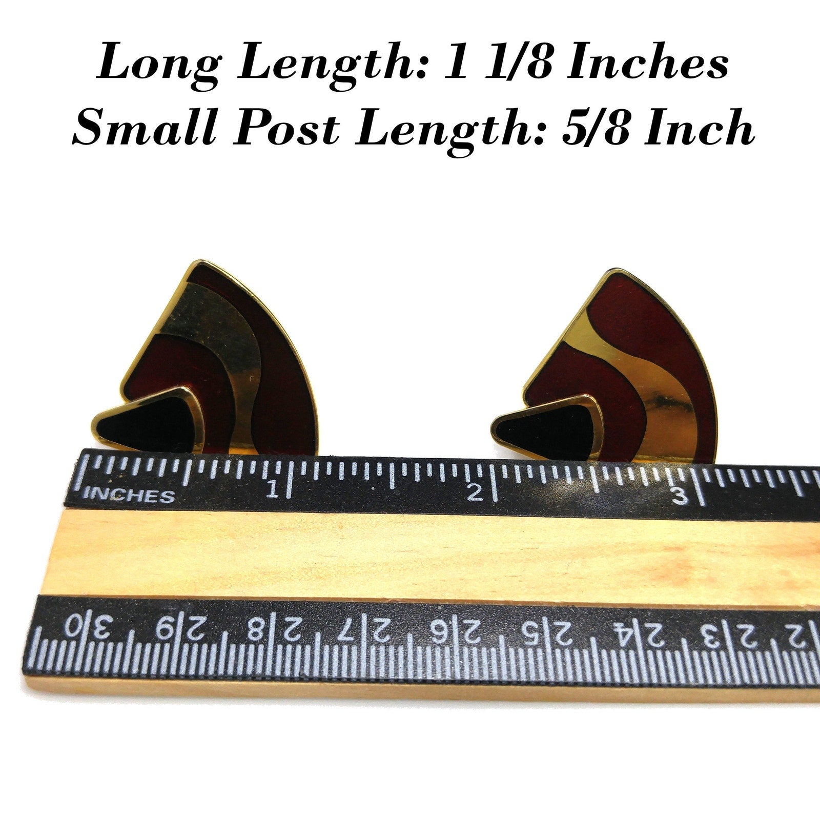 Laurel Burch Black Red 2 in 1 Earrings, Gold Plated, 1980s Vintage Jewelry