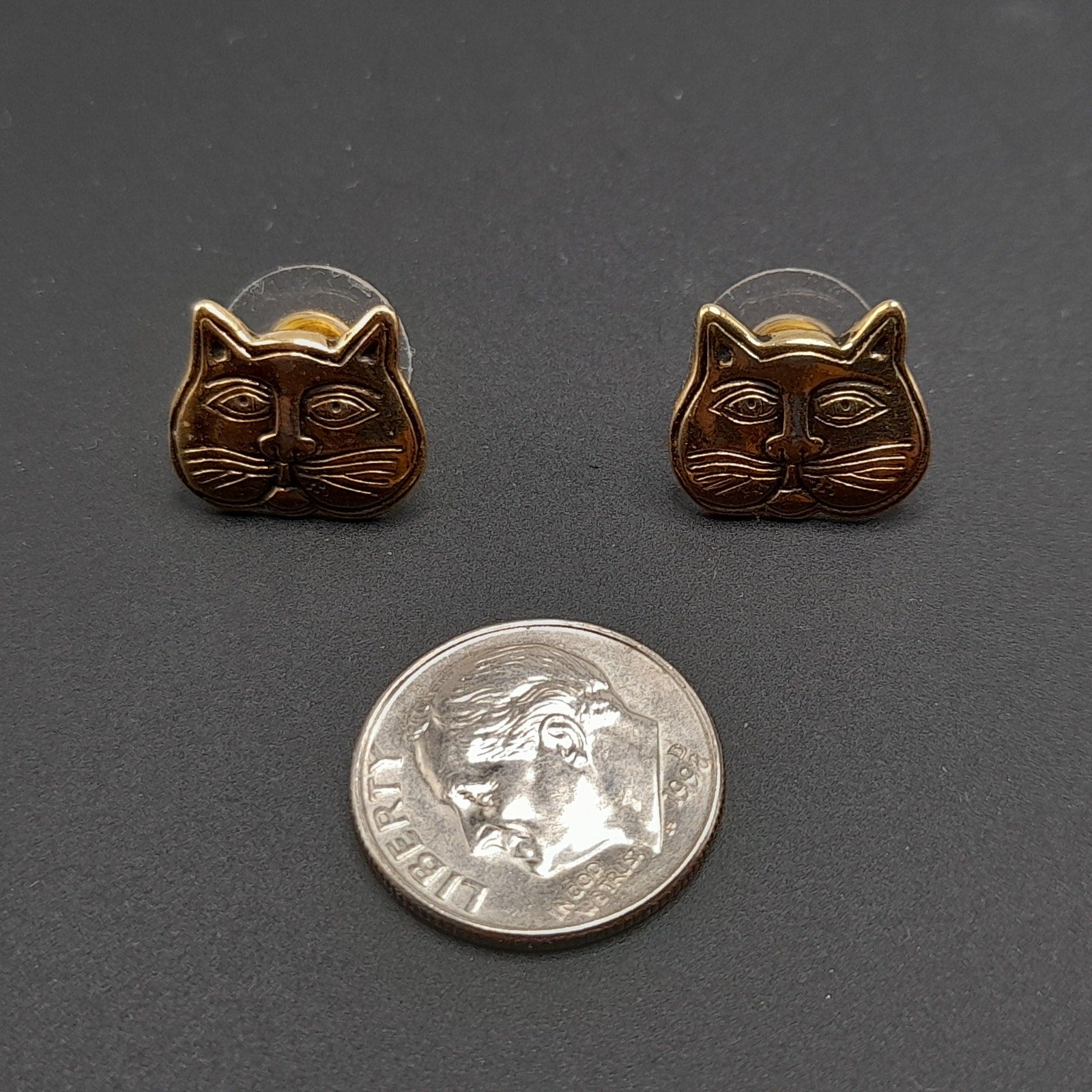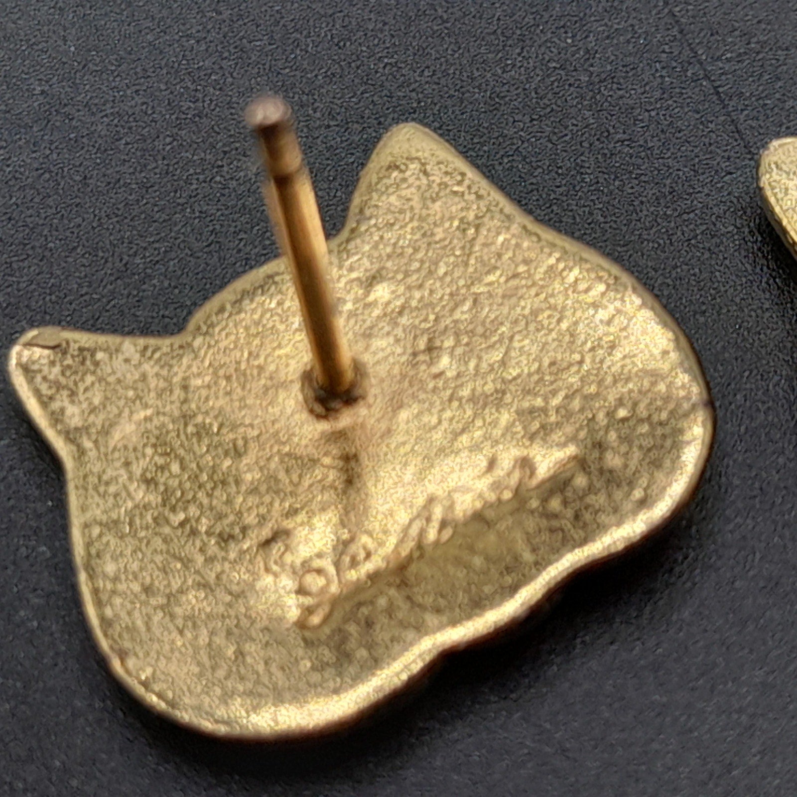Laurel Burch Cat Face Earrings, Gold Plated Cats, Gold Filled Posts, 1980s