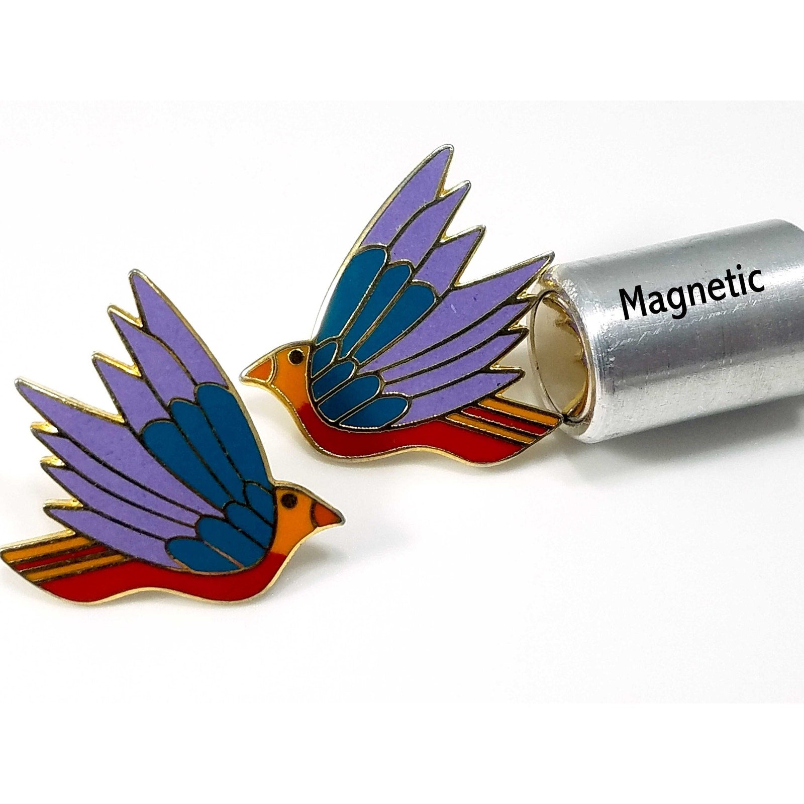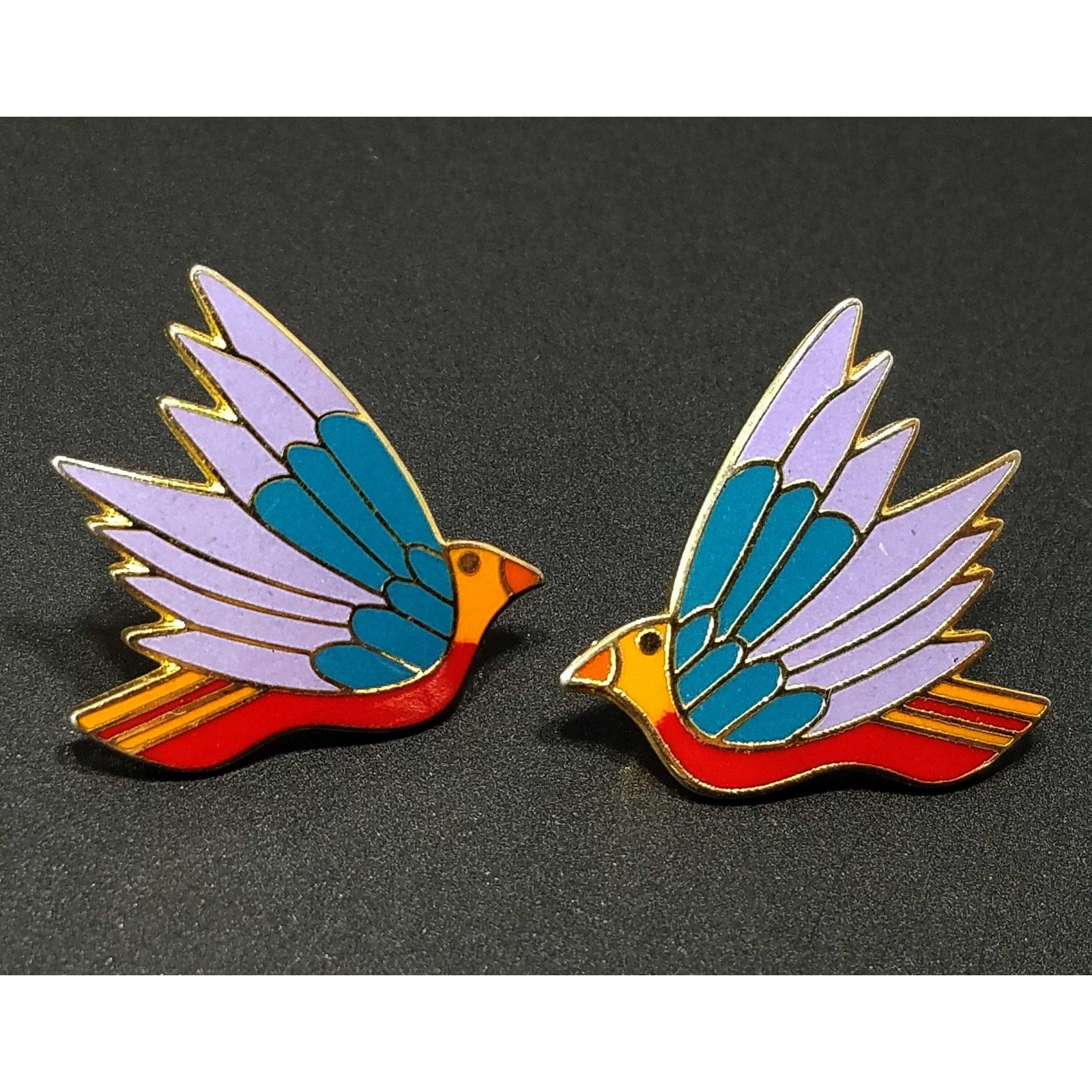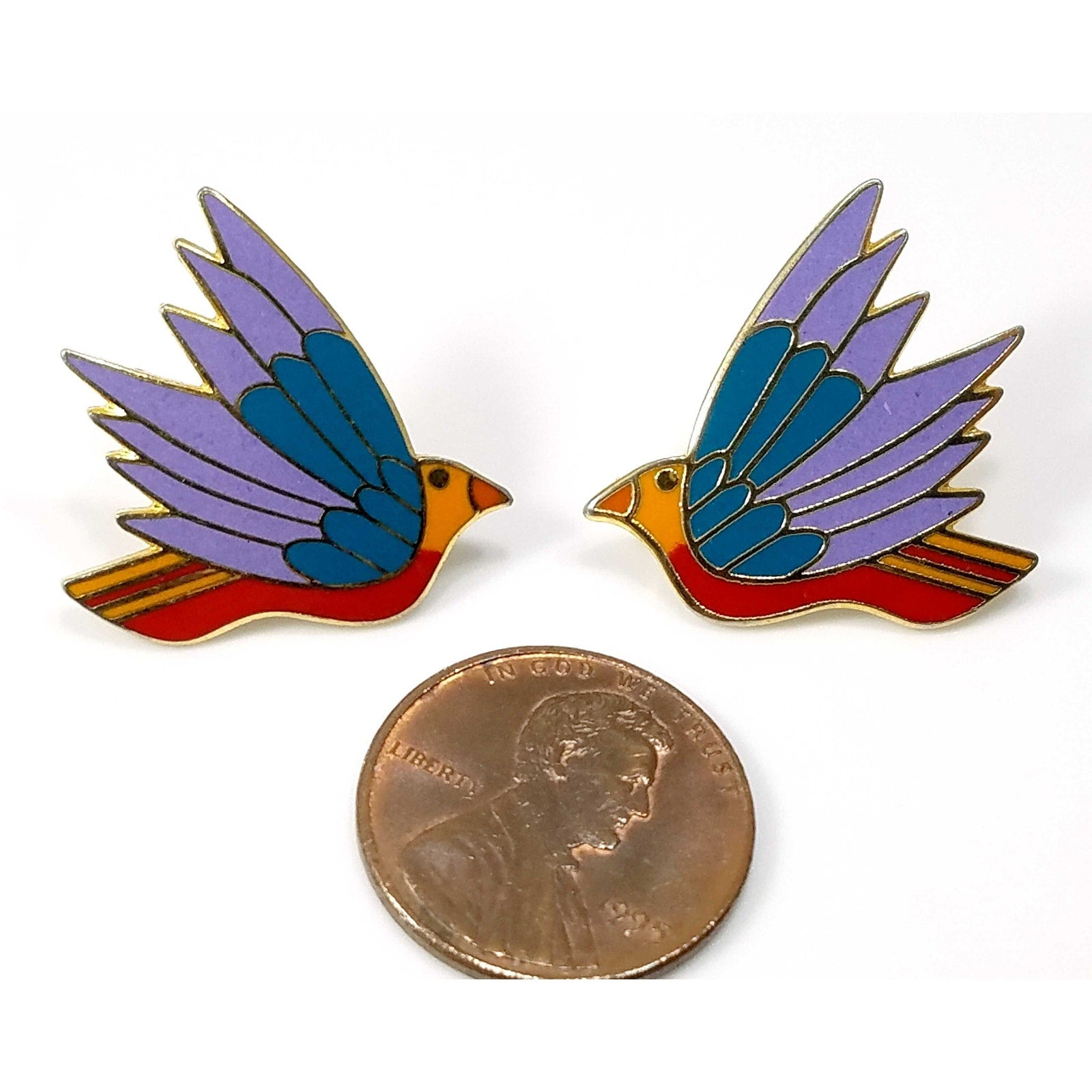 Laurel Burch "Celeste" Bird Earrings, Gold Plated Cloisonne Enamel, 1980s