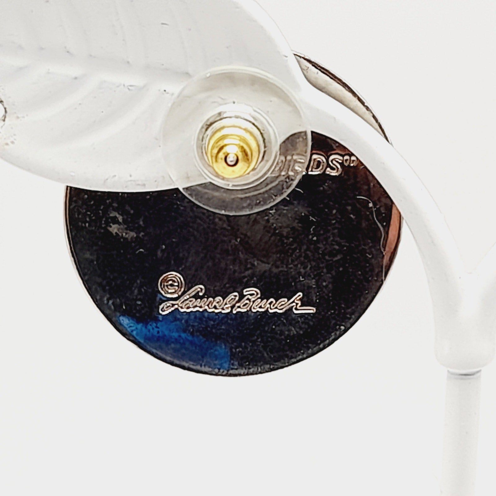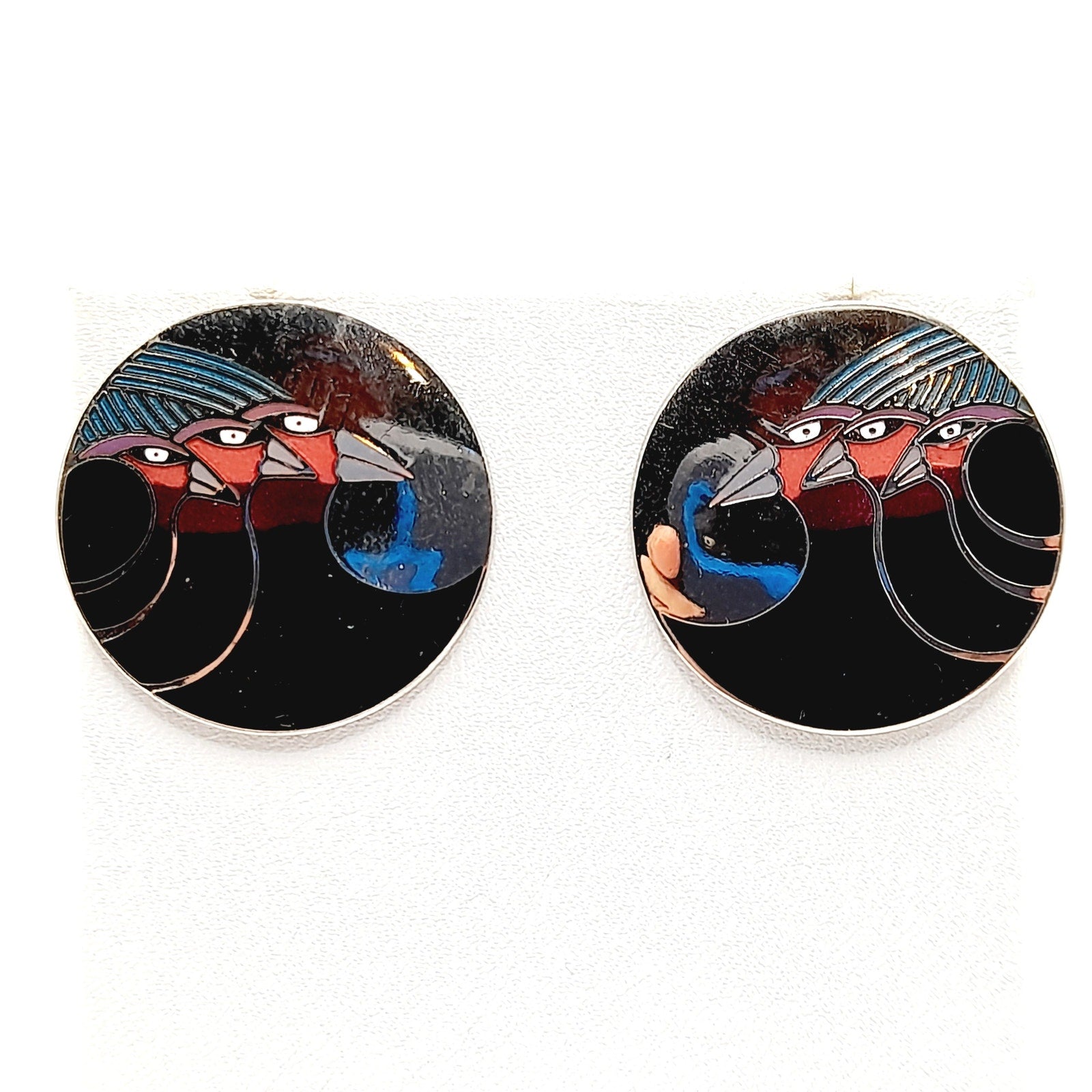 Laurel Burch "Celestial Birds" Post Earrings, Vintage 1980s Rhodium Enamel Jewelry, Designer Statement Earrings, Artistic Retro Style
