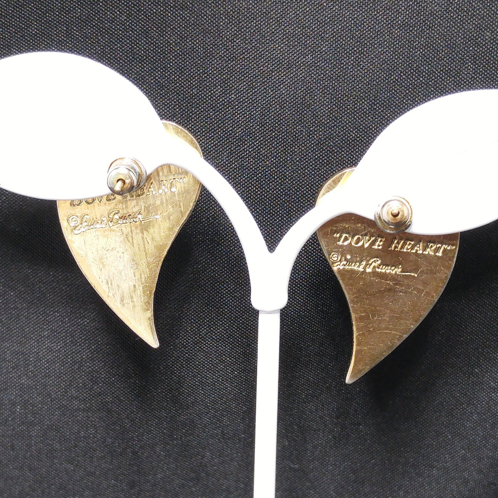 Laurel Burch "Dove Heart" Post Earrings, Gold Plated, 1980s Vintage Jewelry