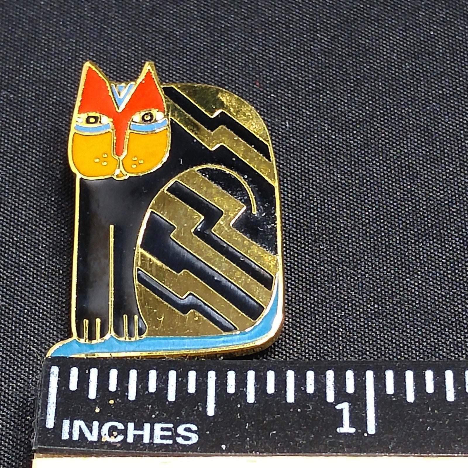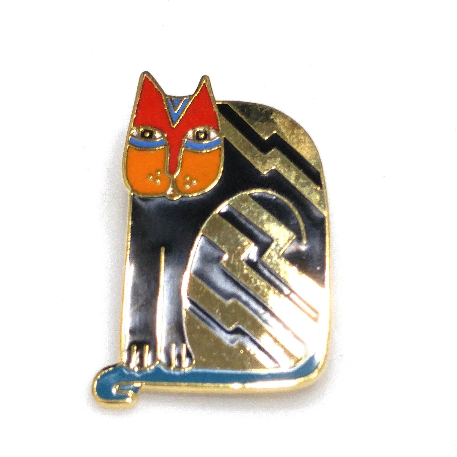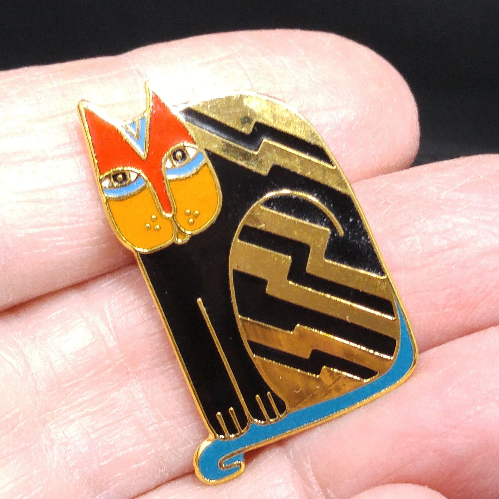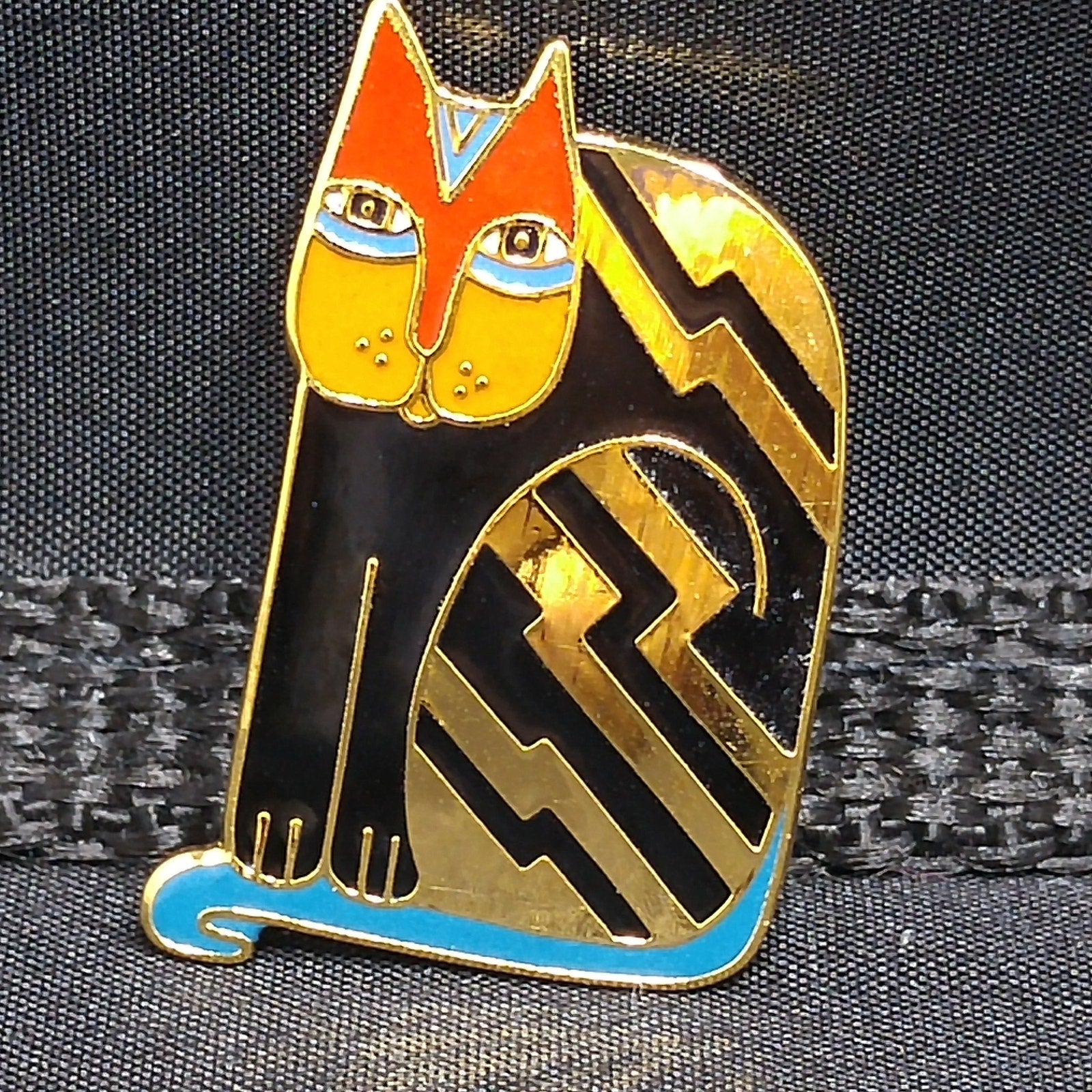 *Description: This is a great cat brooch by designer Laurel Burch entitled "FANTASTICAT" from the 1980s. The enamel cloisonne brooch is gold plated with enamel colors in black, teal, yellow, red, and blue. This is a perfect gift for someone who loves cats! This would be a great addition to your vintage jewelry collection or make a great vintage gift!