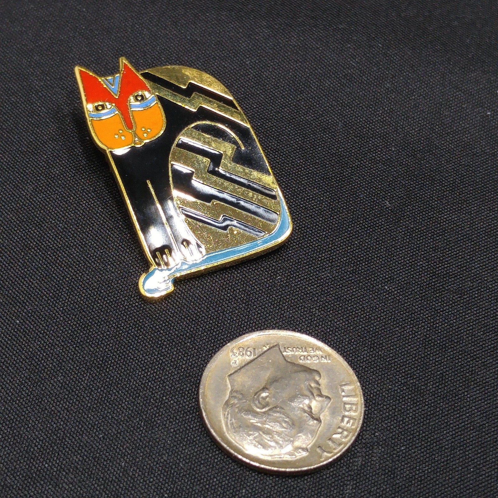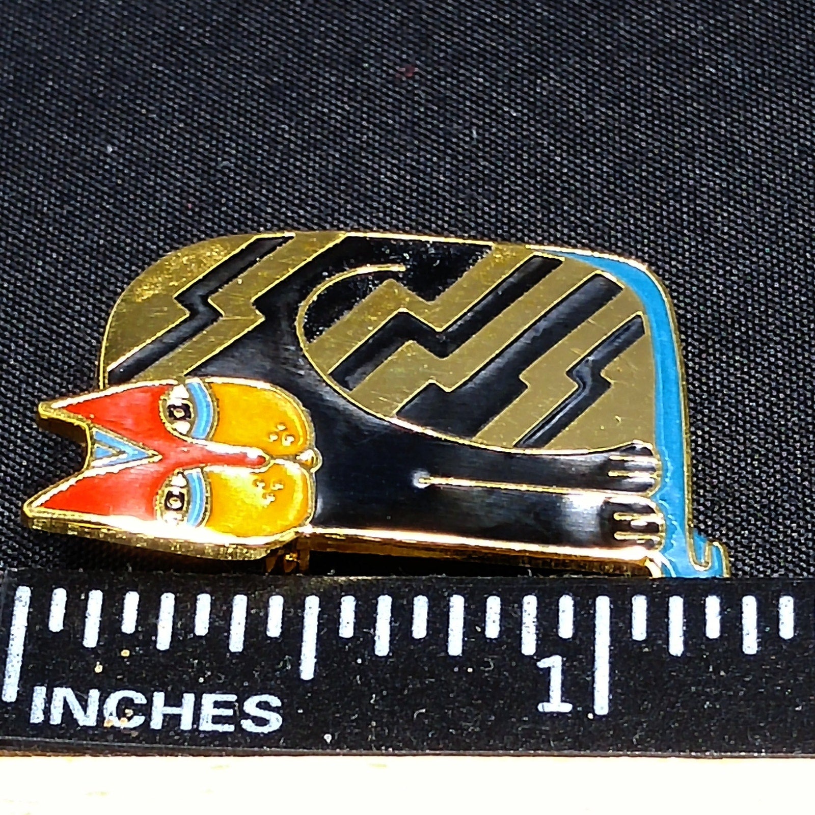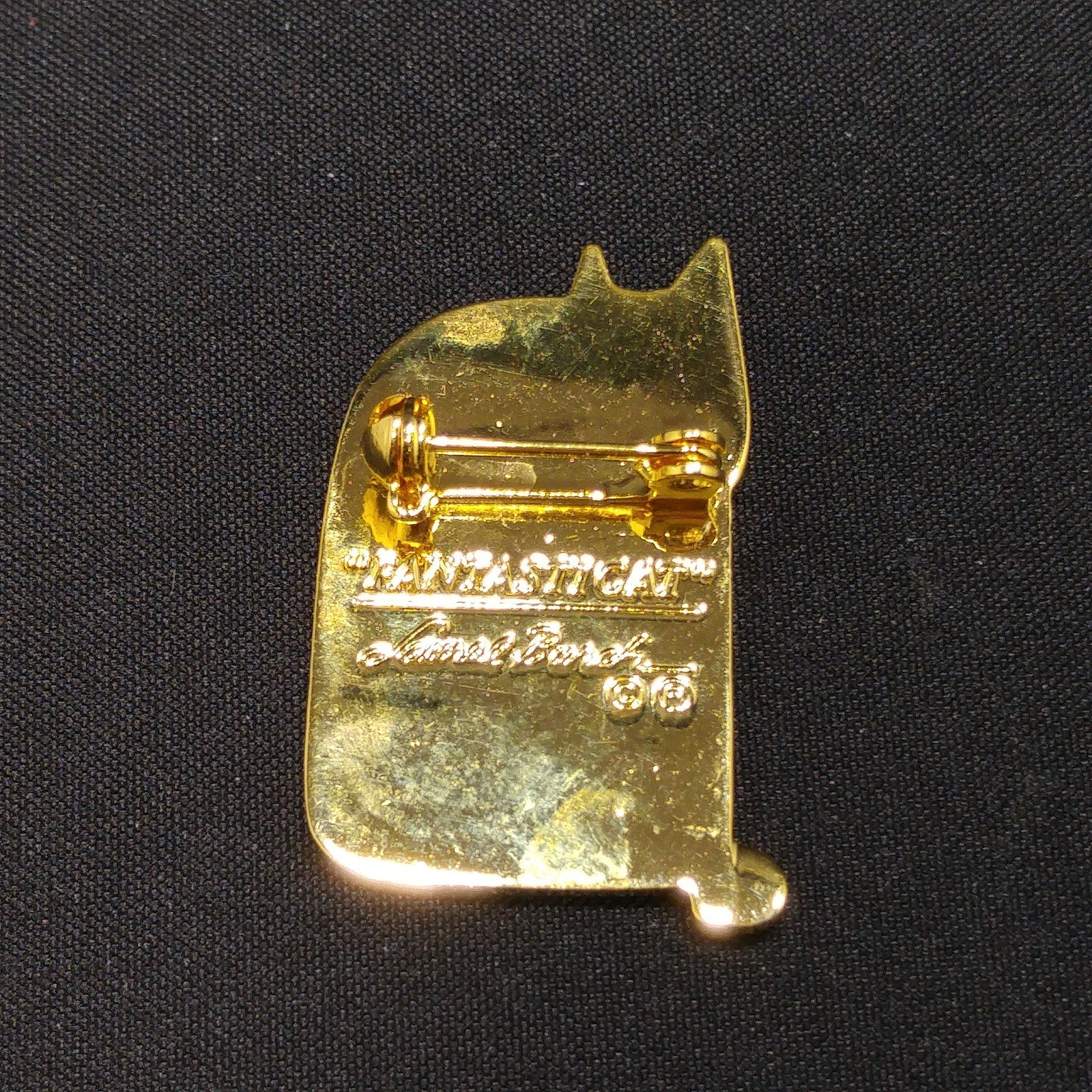 Laurel Burch "Fantasticat" Cat Brooch, Cloisonne Gold Plate, Enamel Pin, 1980s Vintage Jewelry